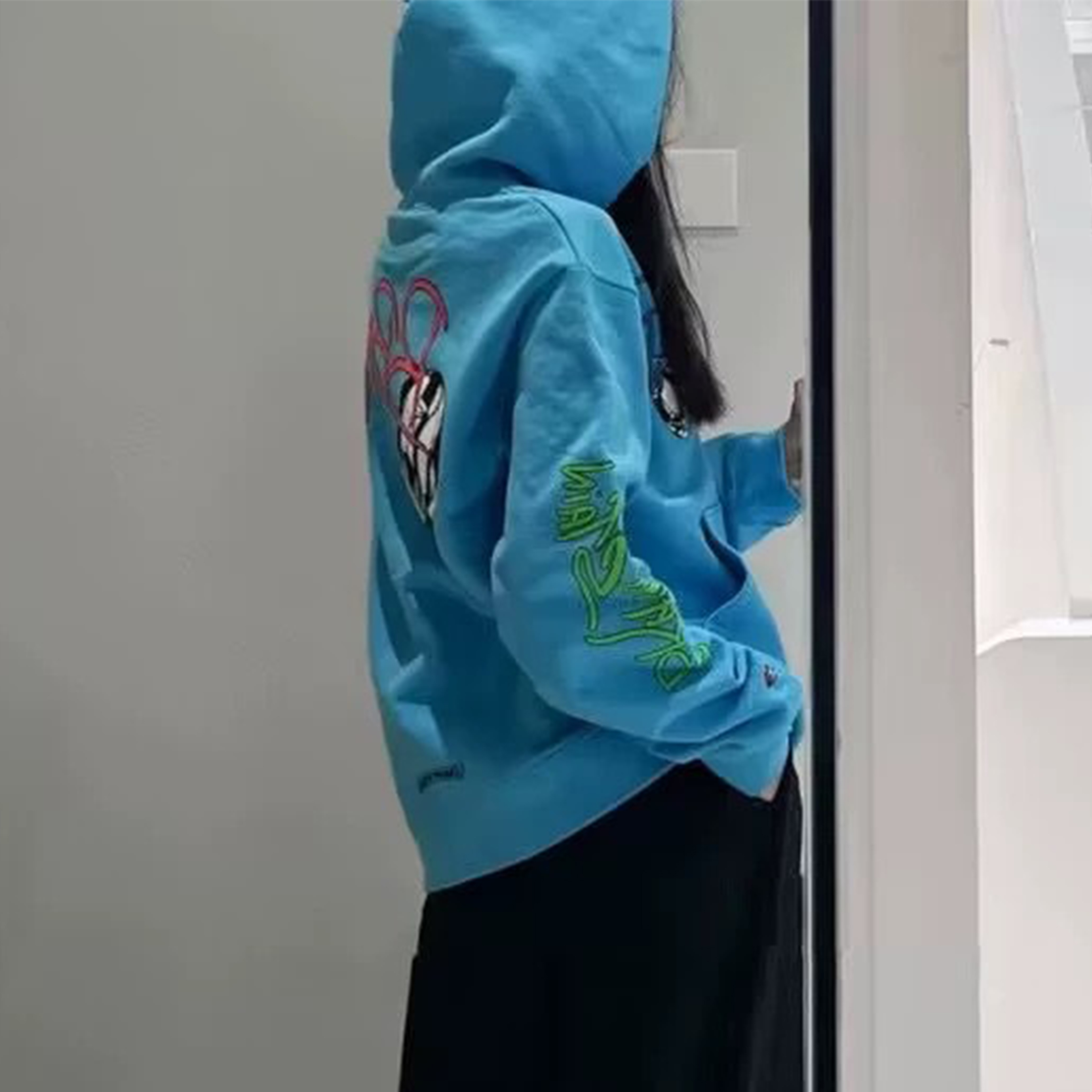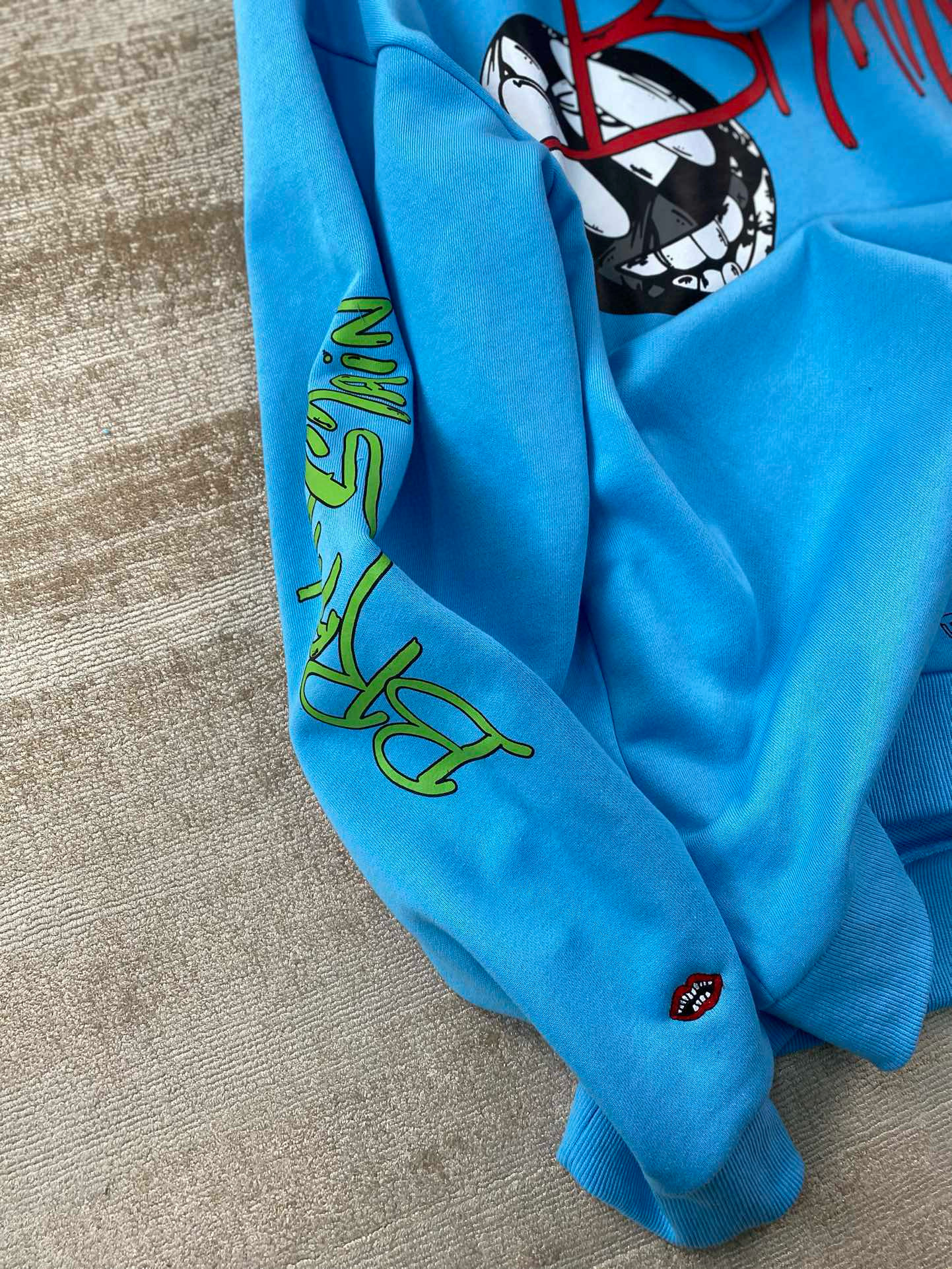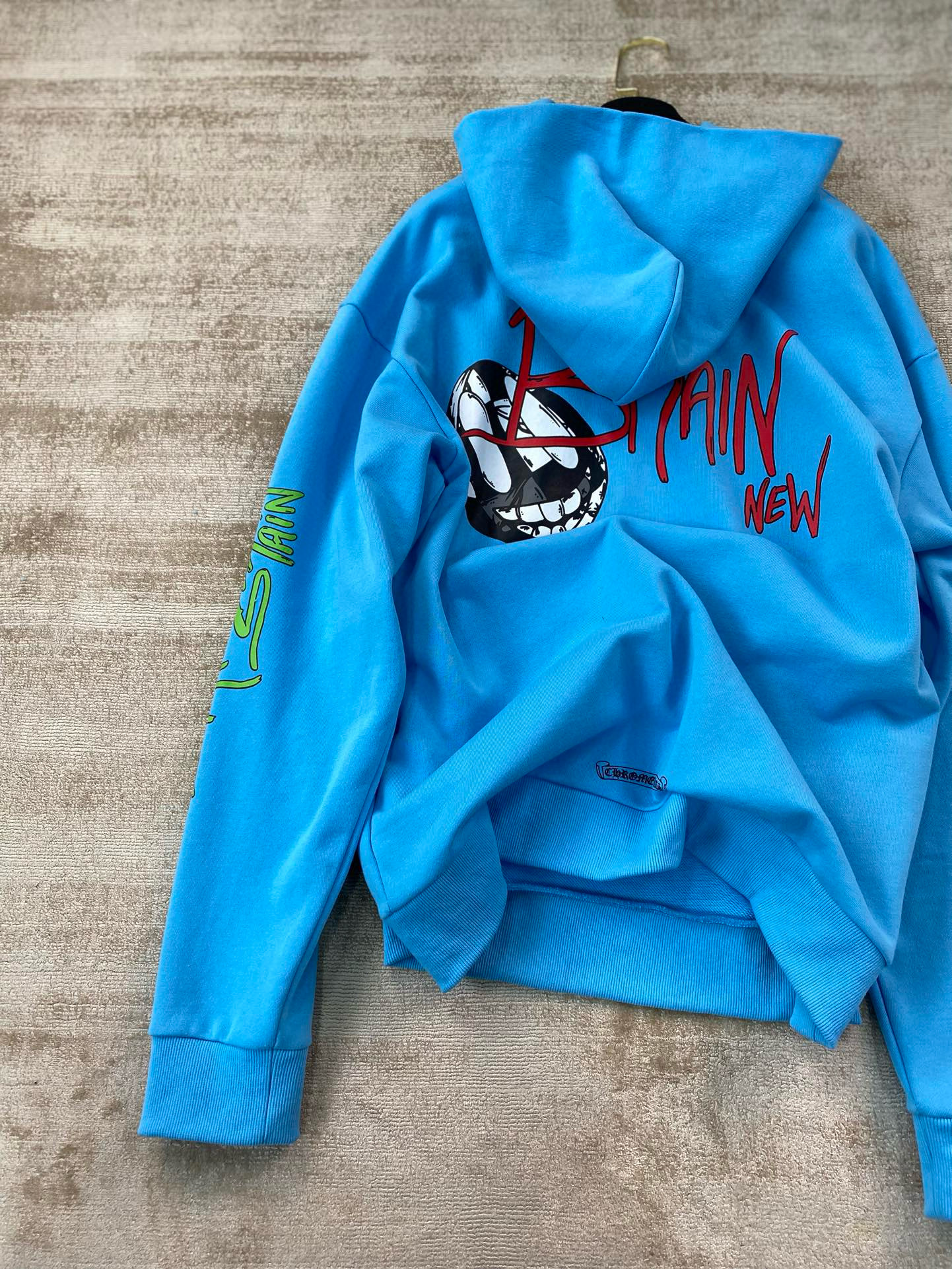 NIGO Chrome Hearts Men's Women's Spring And Summer Fashion Letter Graffiti Blue Casual Loose Hooded Sweatshirt #nigo98725