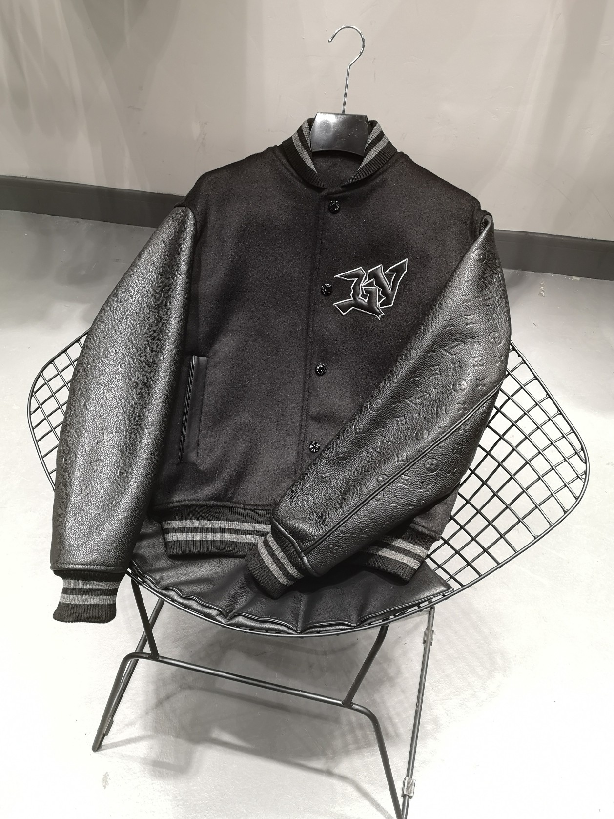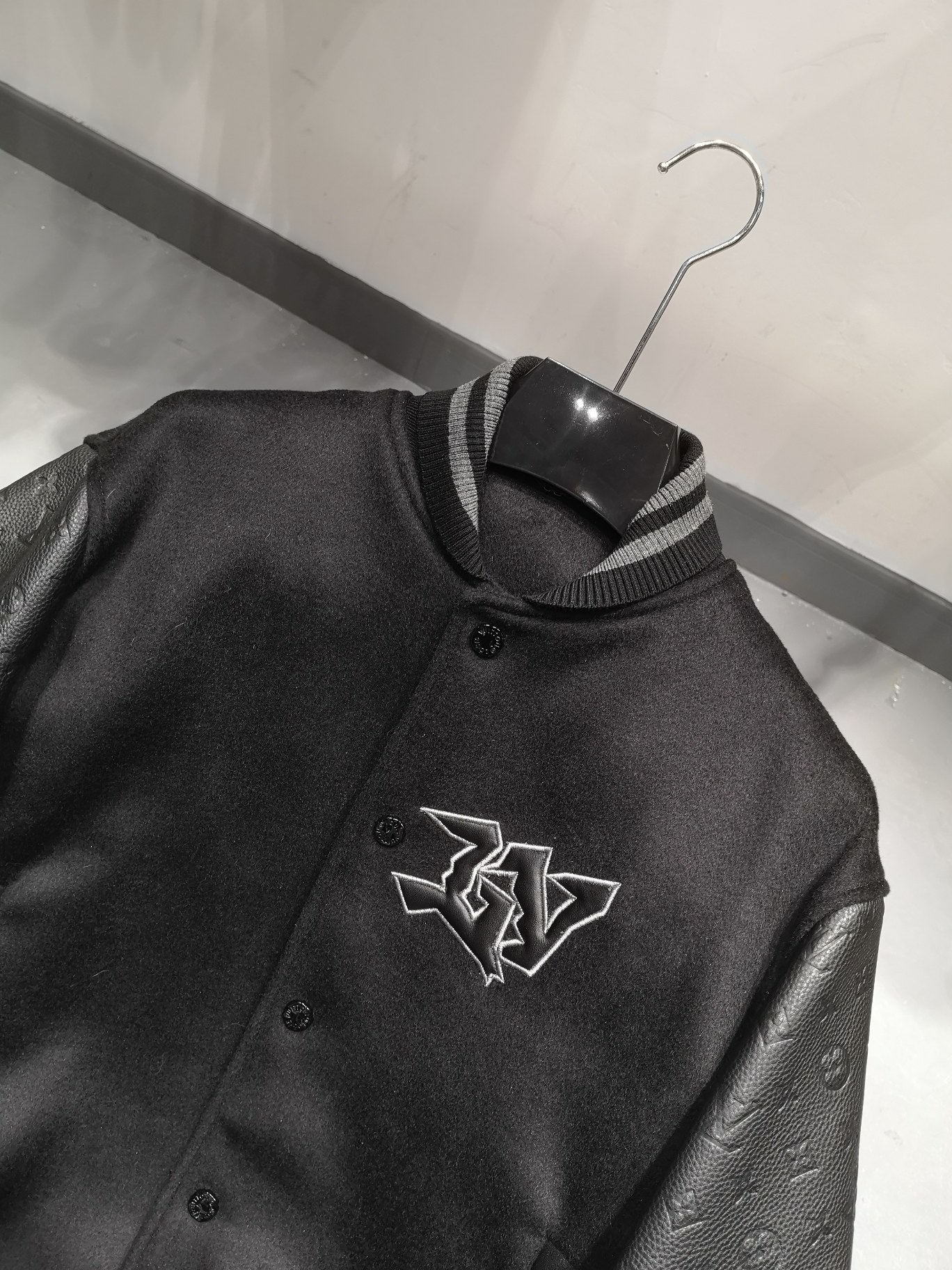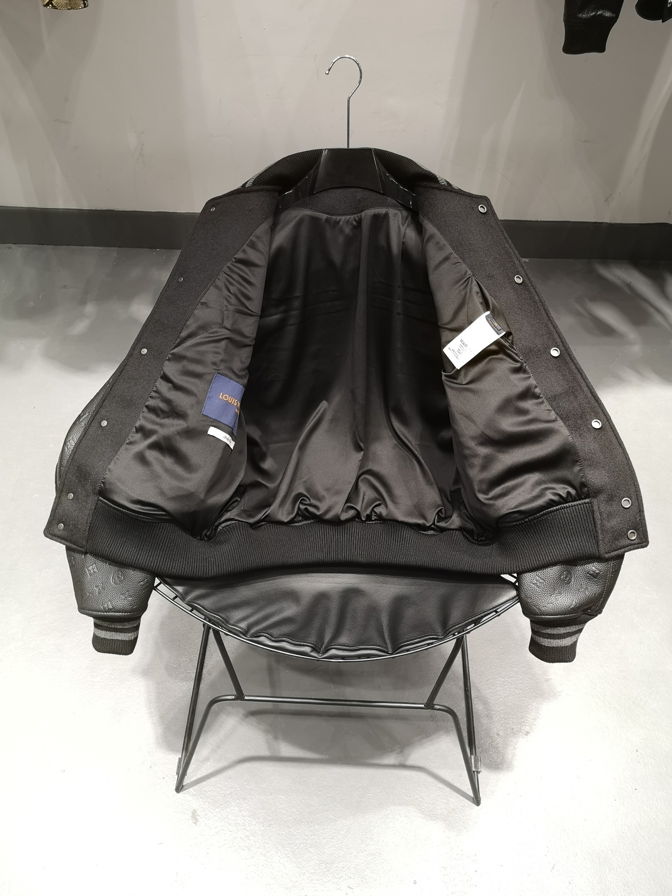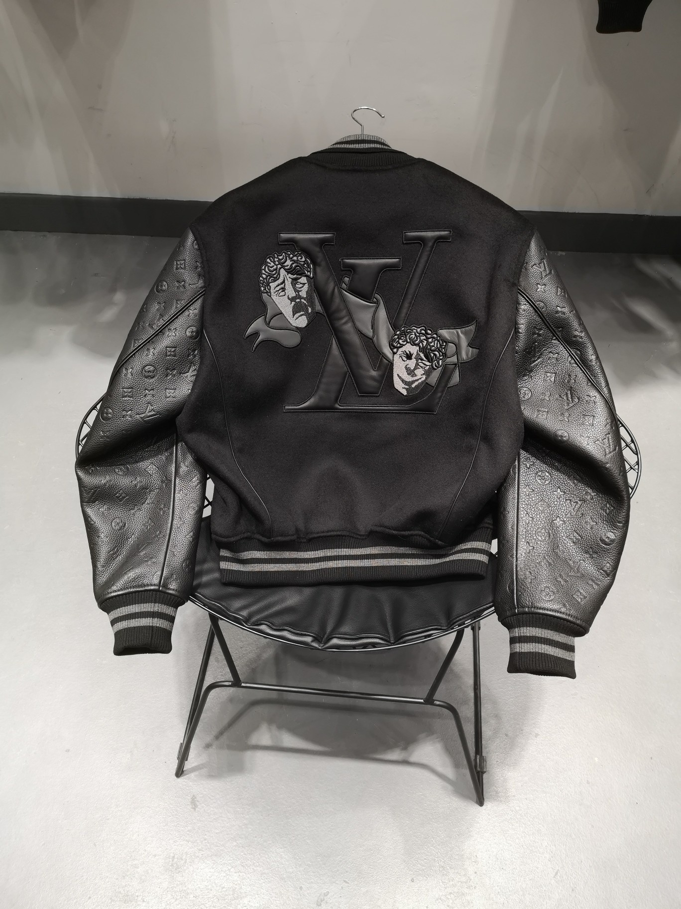 NIGO Louis Vuitton Men's Fall/winter Monogram Embossed Leather Drawstring Jacket Black Abstract Graffiti Logo Jacket Baseball Jersey #nigo71424