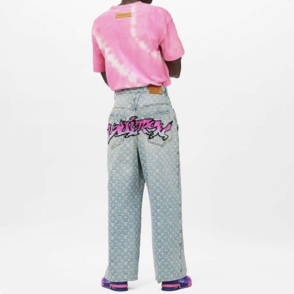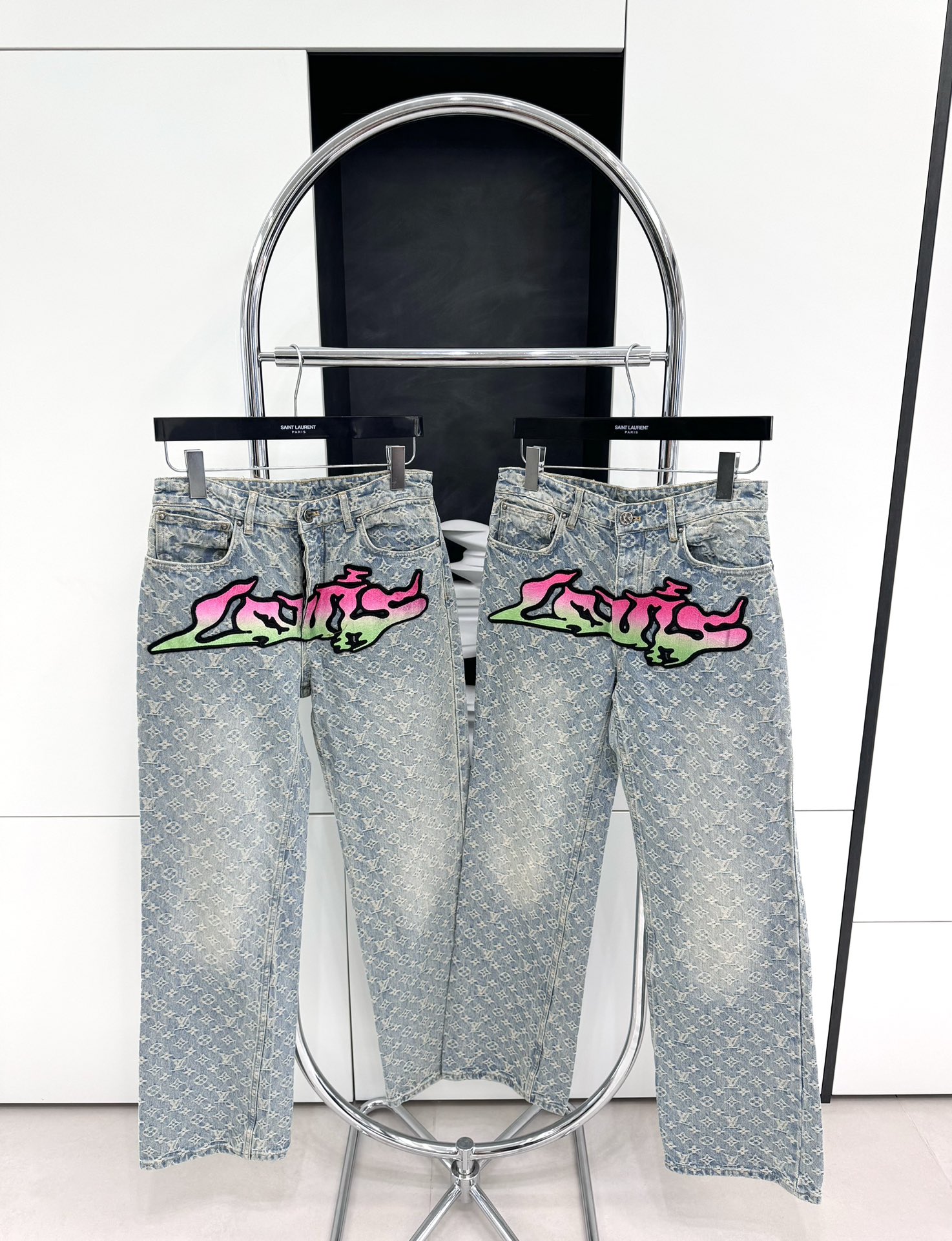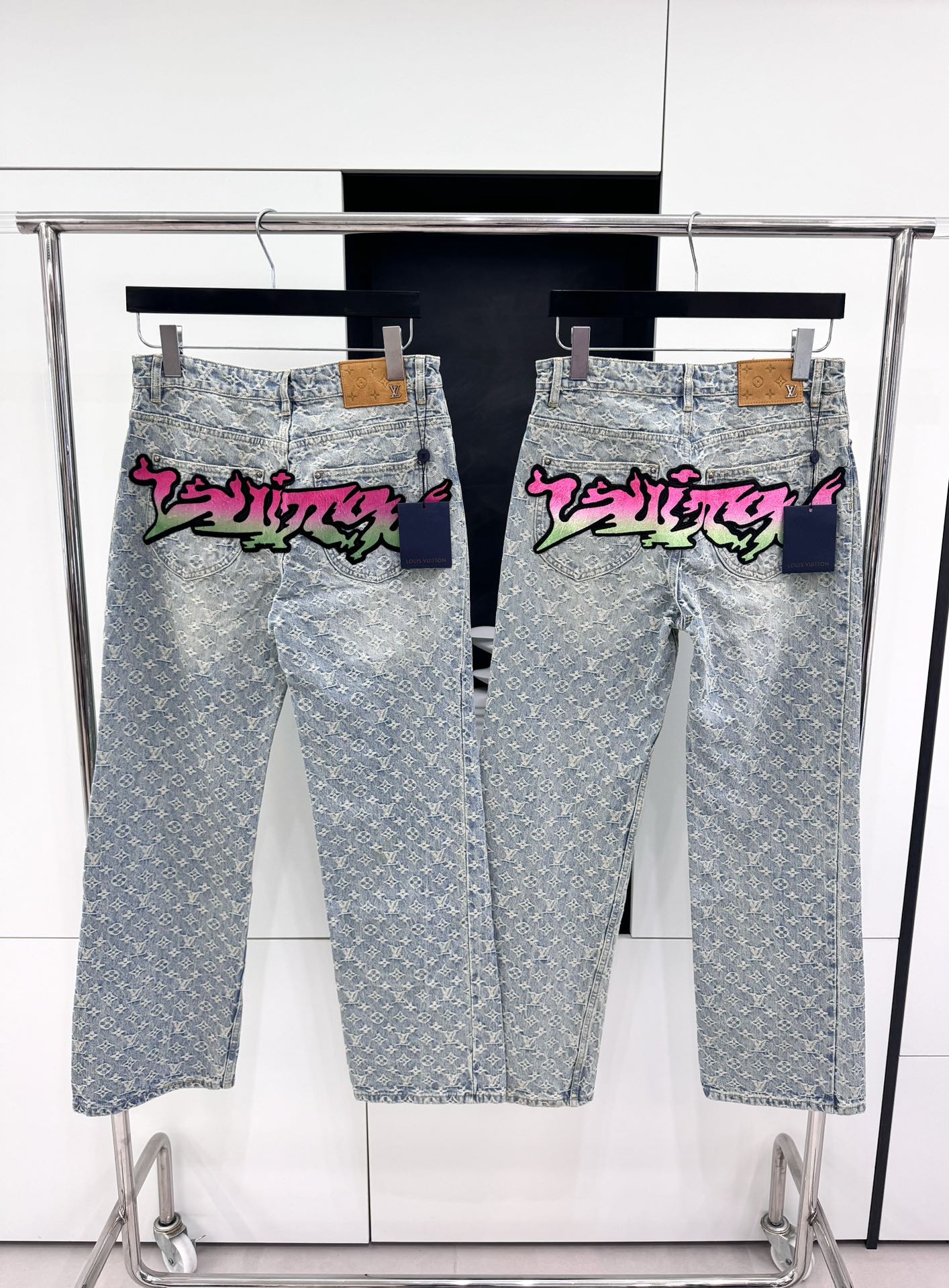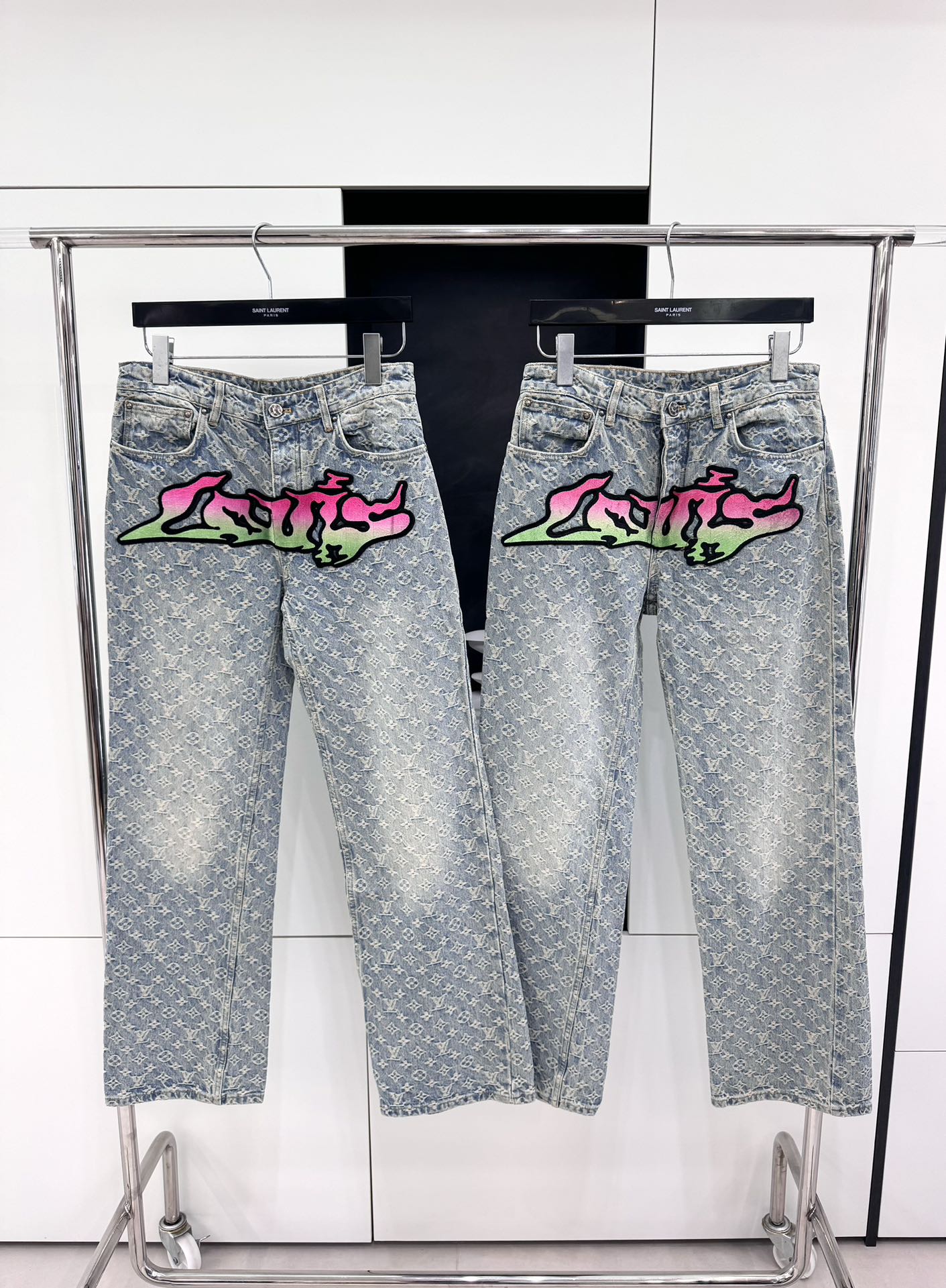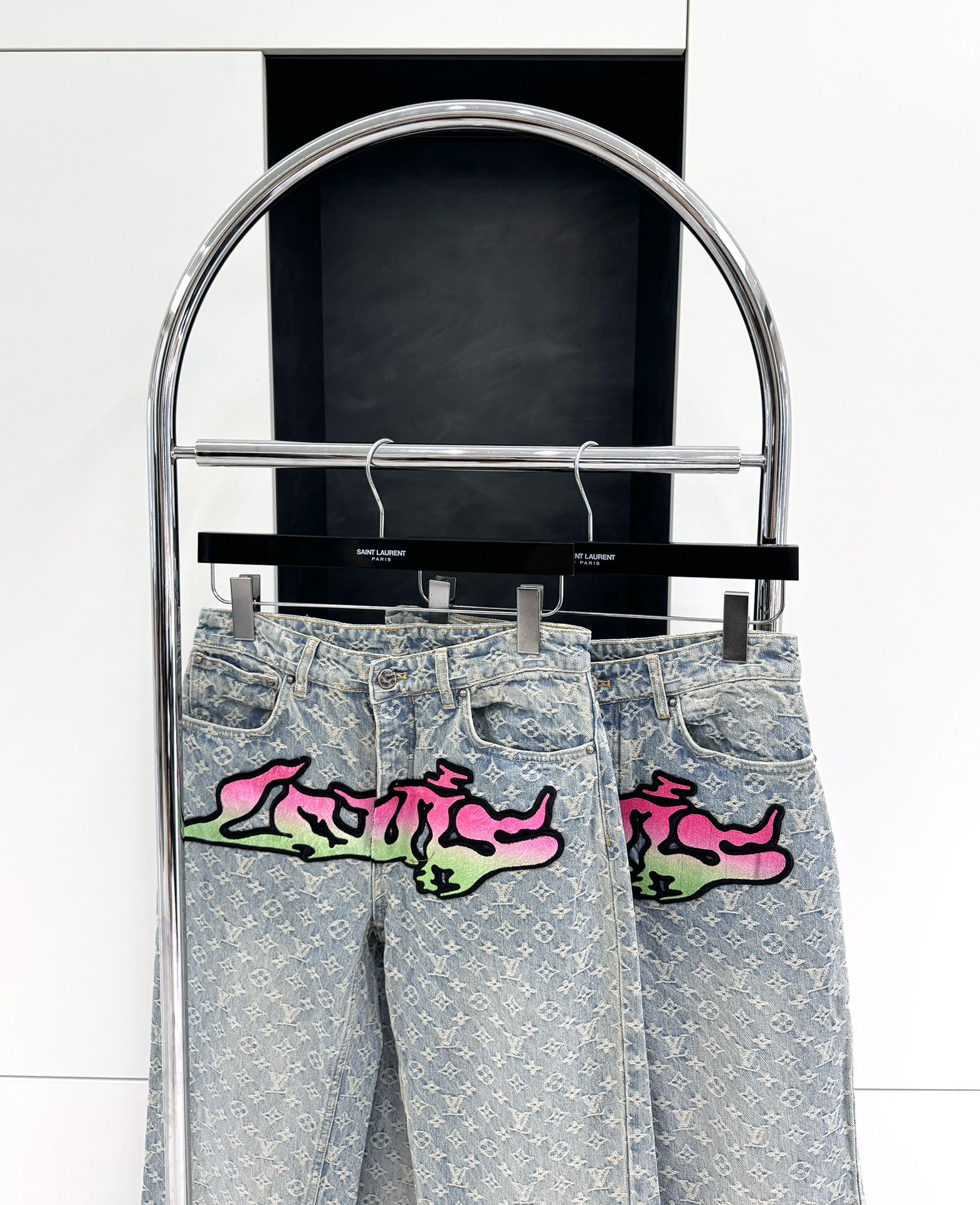 NIGO Louis Vuitton Men's Spring and Autumn Blue Logo Full Print Letter Graffiti Jeans Pants #nigo73256