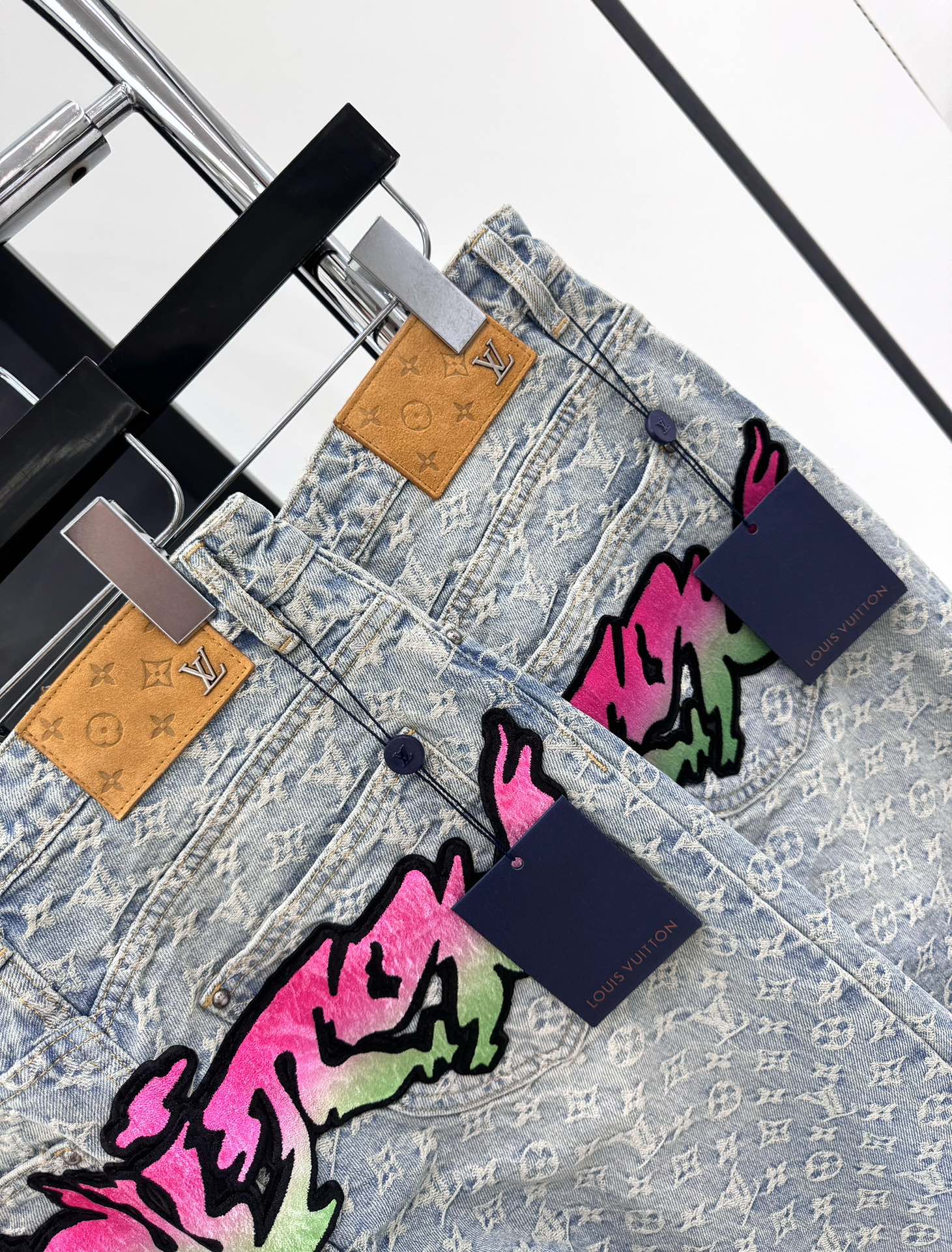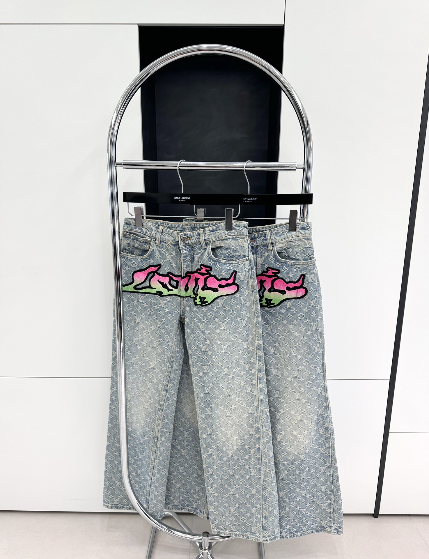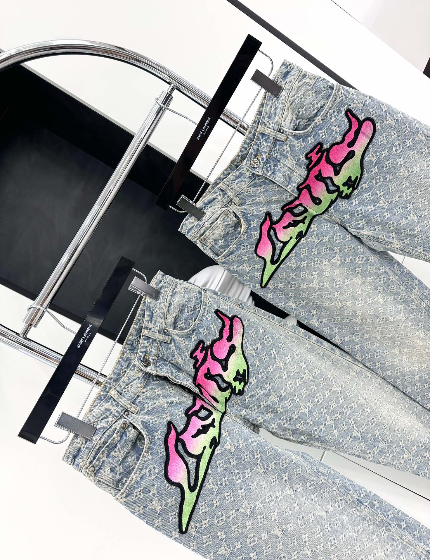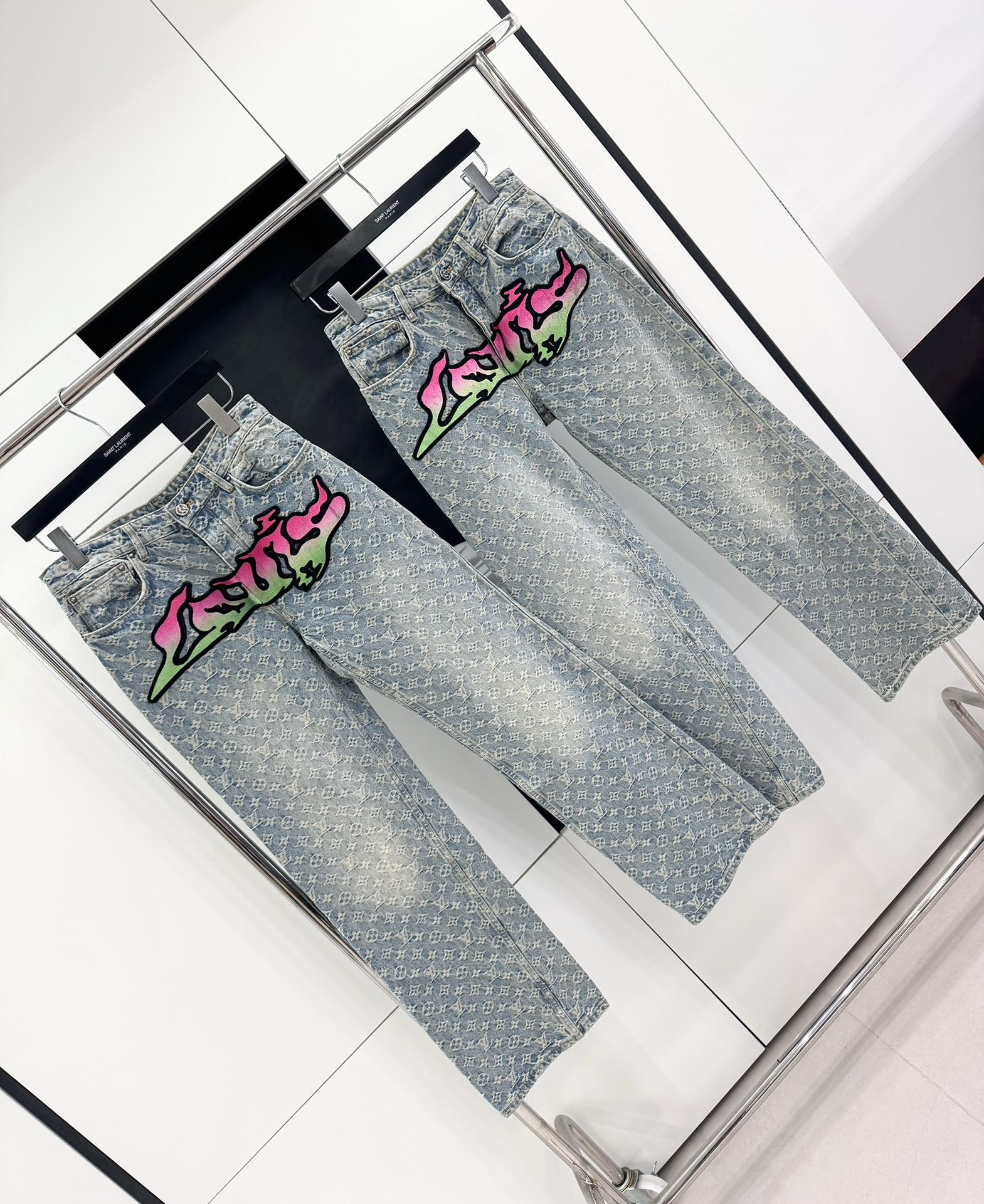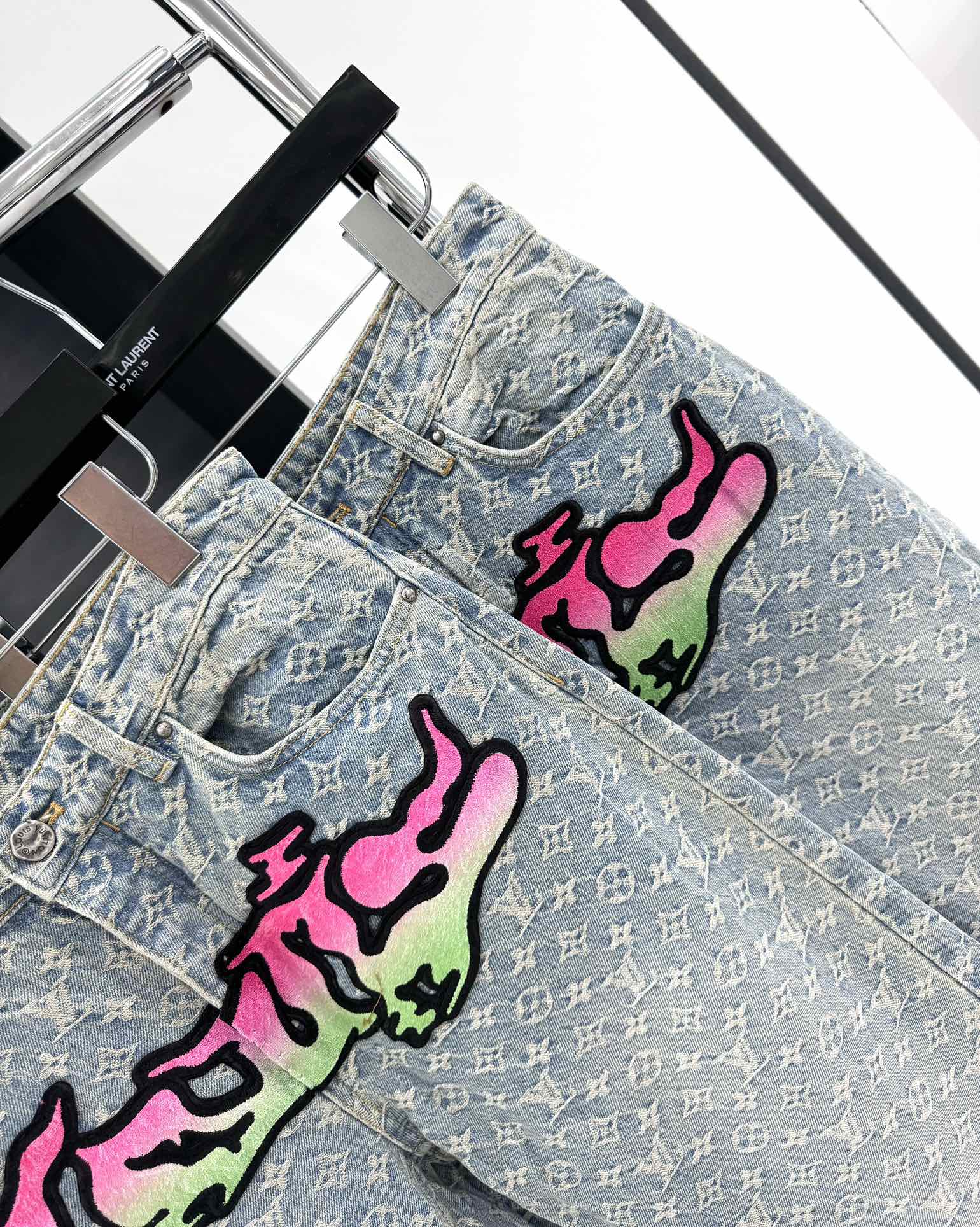 NIGO Louis Vuitton Men's Spring and Autumn Blue Logo Full Print Letter Graffiti Jeans Pants #nigo73256