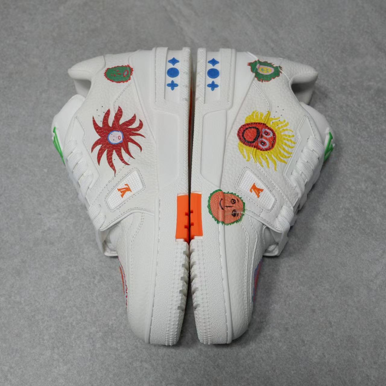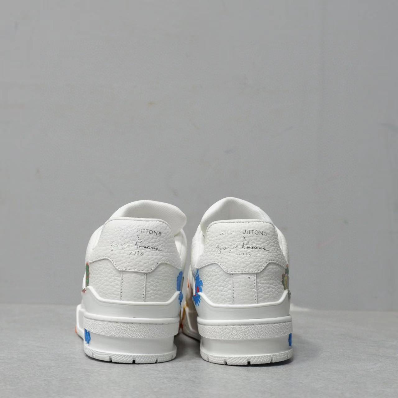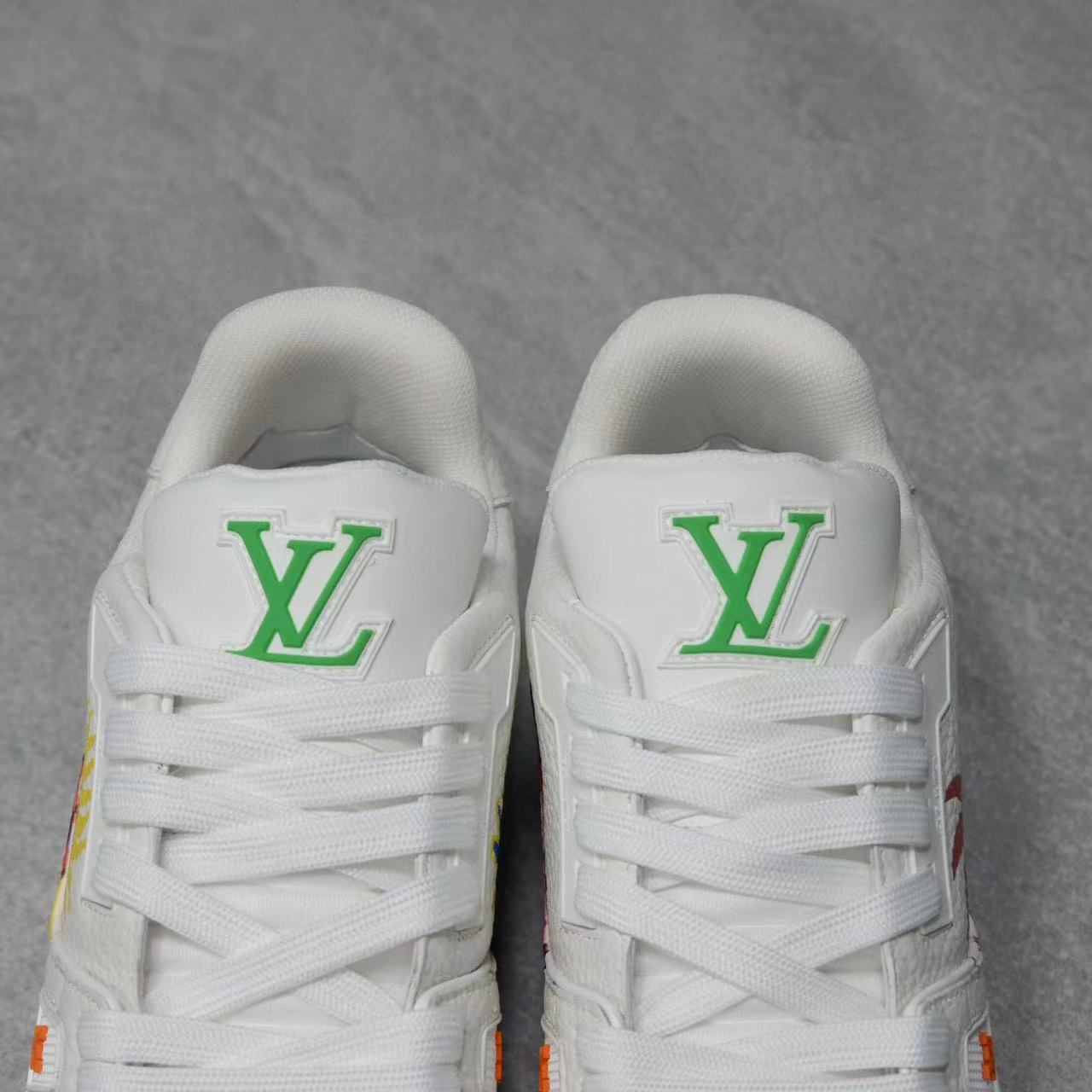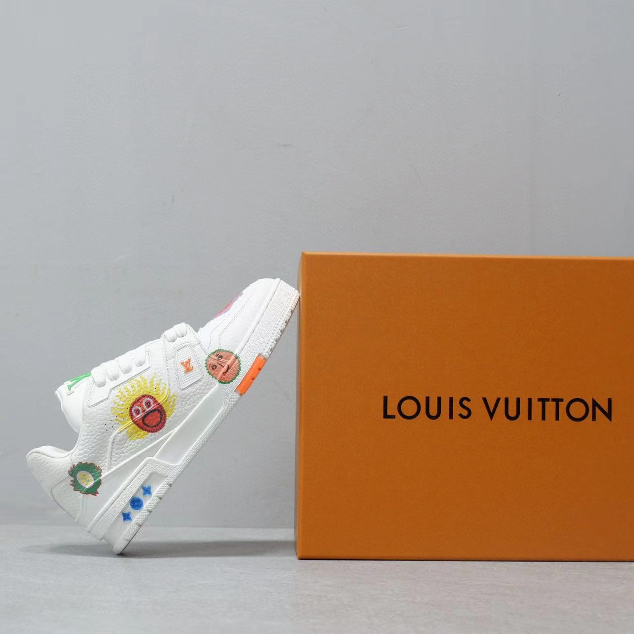 NIGO Louis Vuitton Trainer Men's Women's Graffiti Pattern White Leather Lace Up Low Top Board Shoes Sneakers #nigo98454