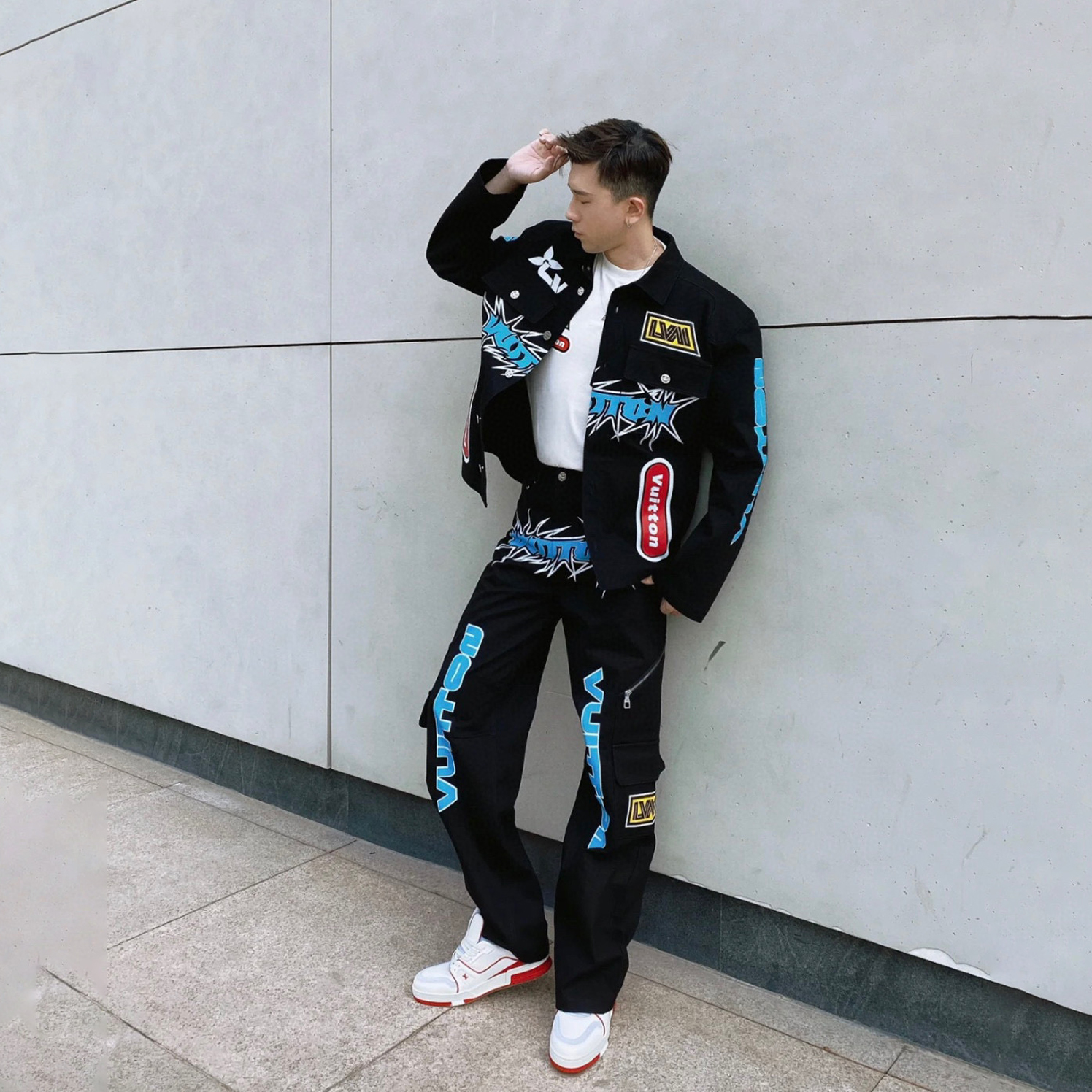 Louis Vuitton NIGO Man Graffiti Letter Button Jacket Trousers Pants Set Suit #nigo95134