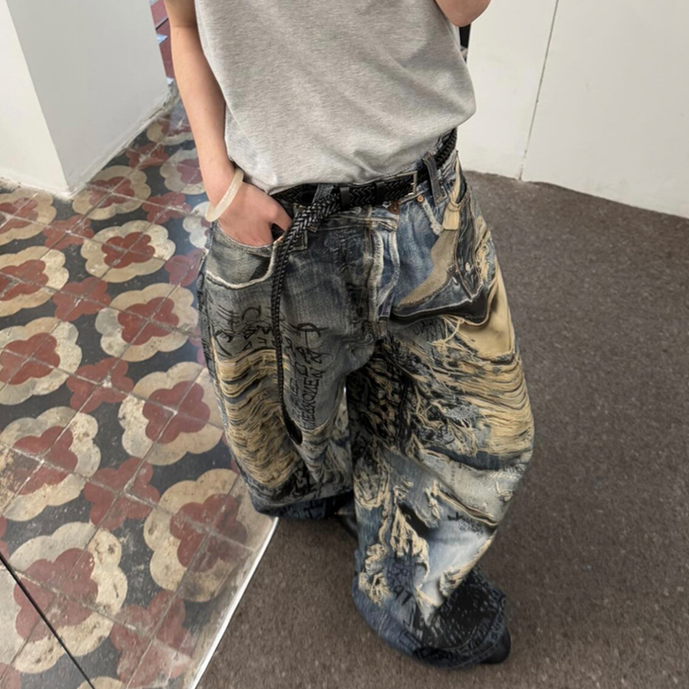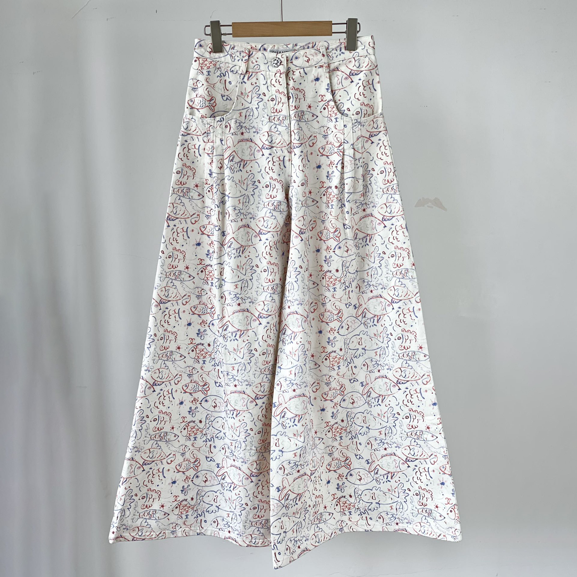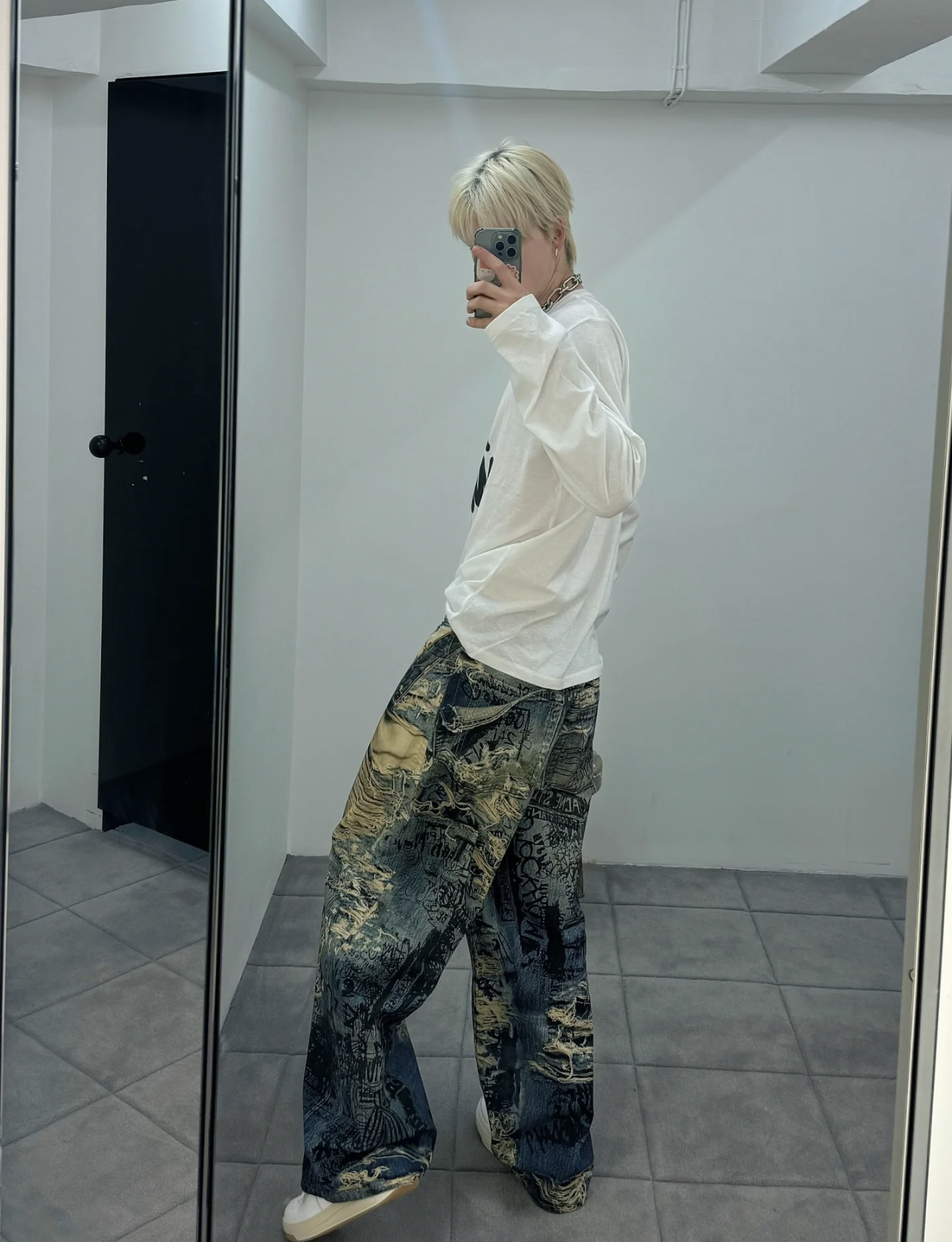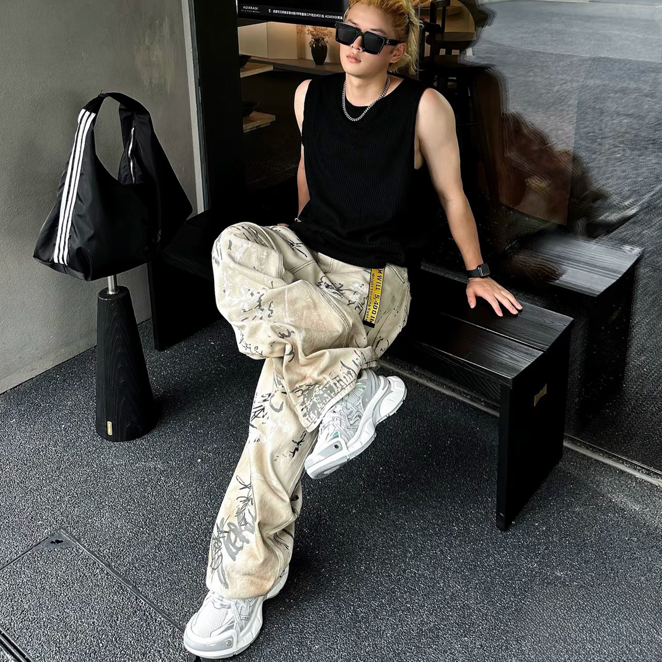 NIGO Chanel Women's Spring/Summer Graffiti Printed Camisole Top Wide Leg Jeans Pants Set Suit #nigo74985