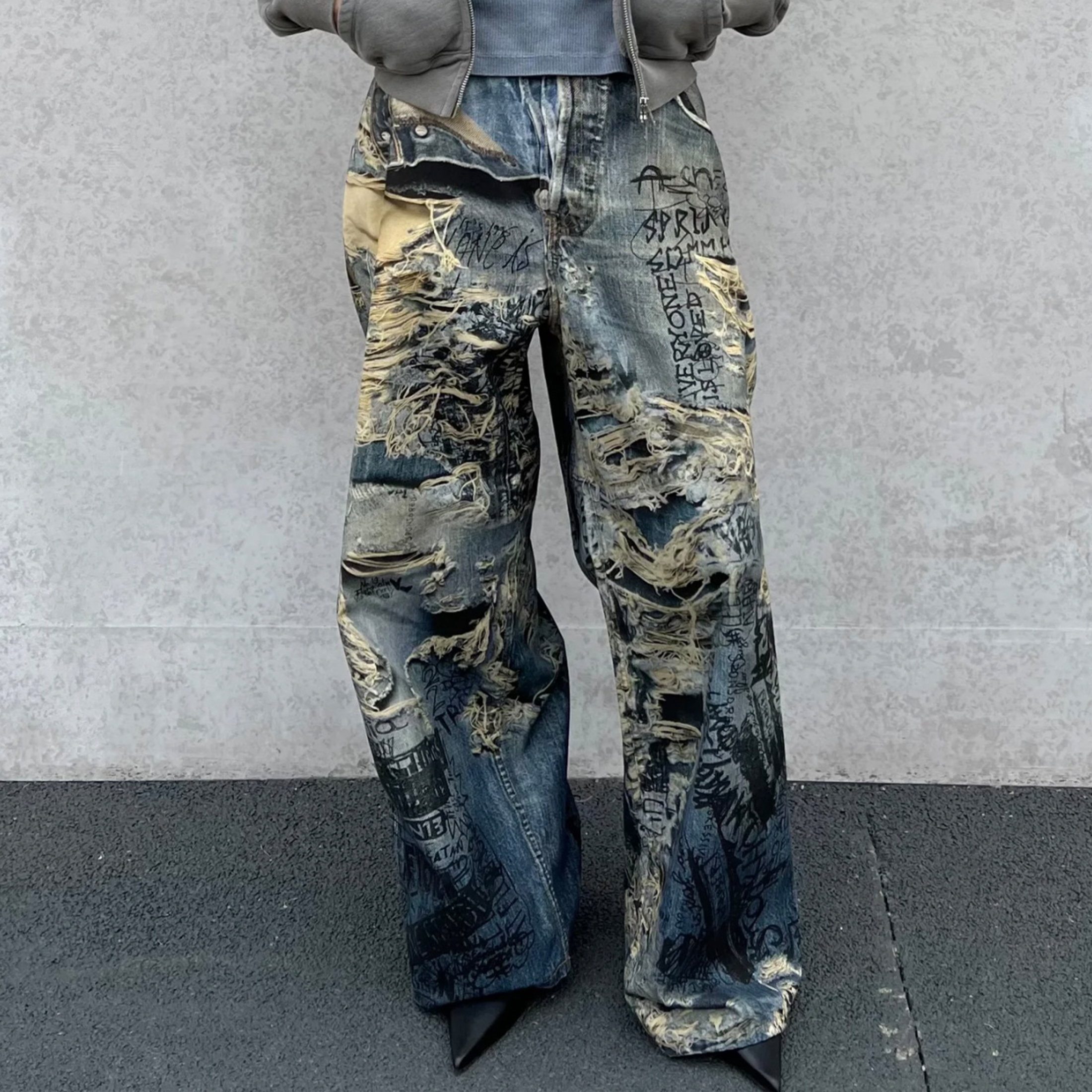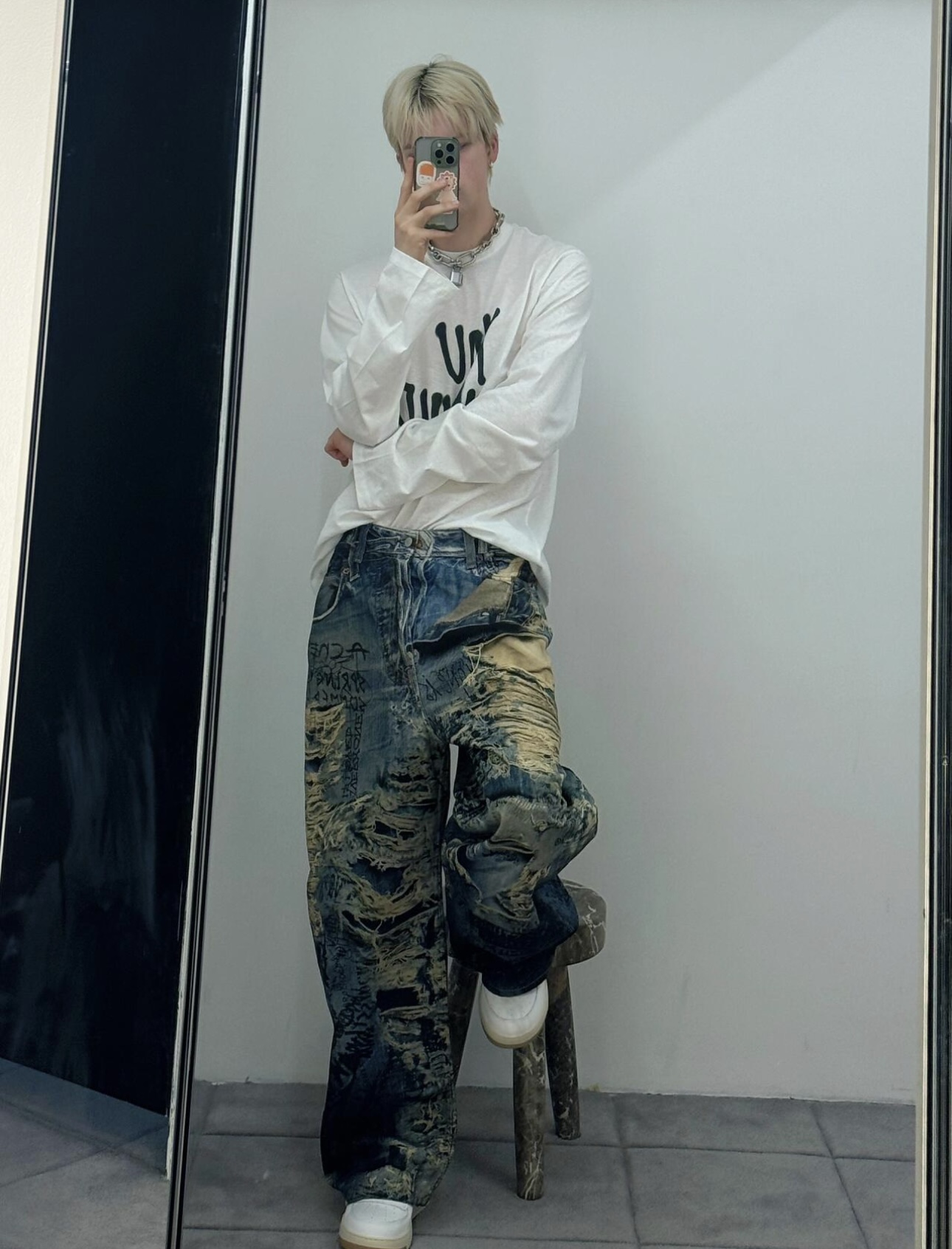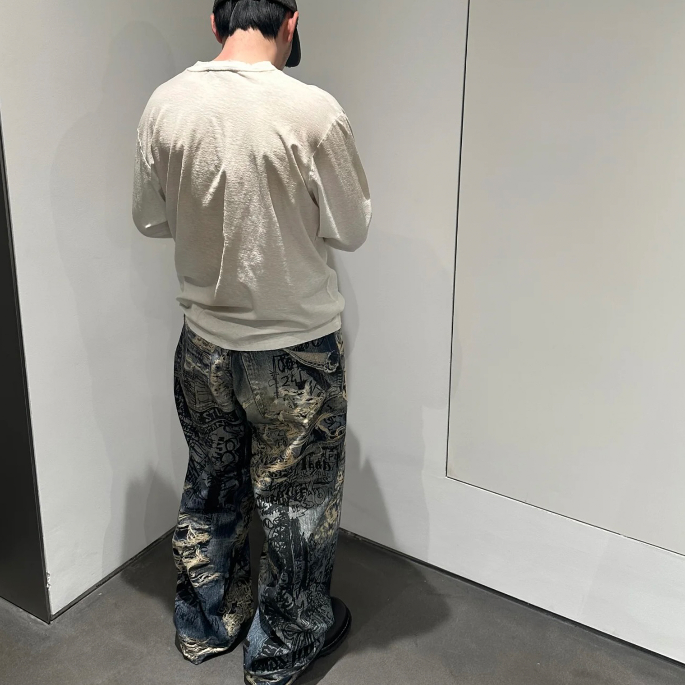 NIGO Chanel Women's Spring/Summer Graffiti Printed Camisole Top Wide Leg Jeans Pants Set Suit #nigo74985