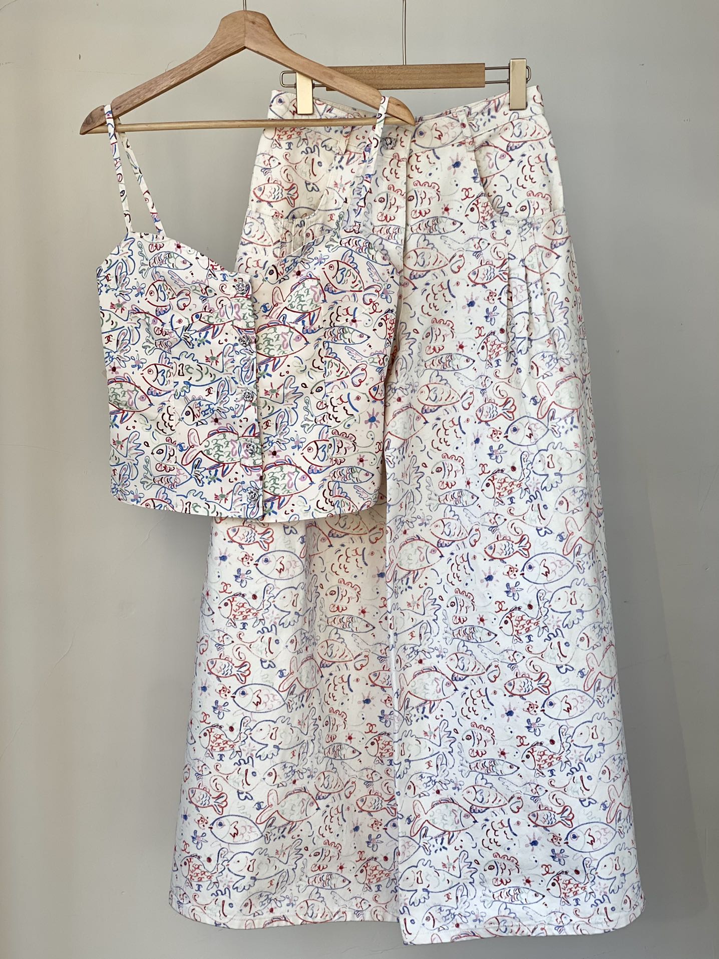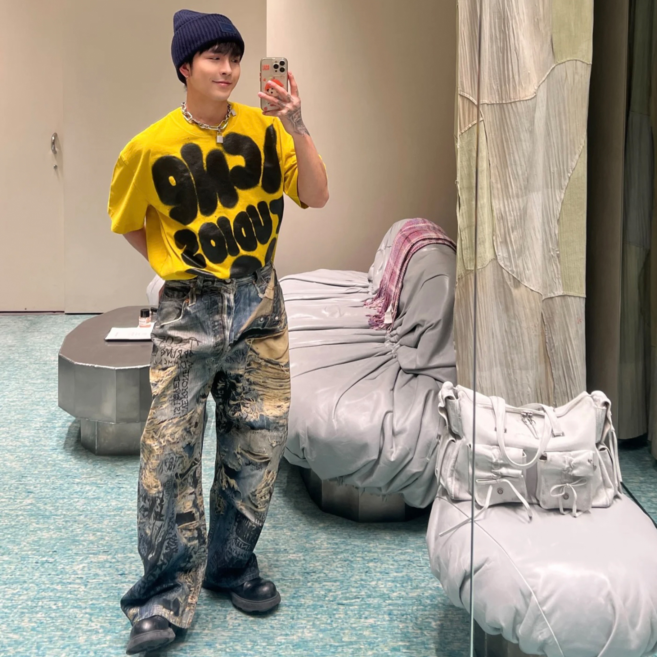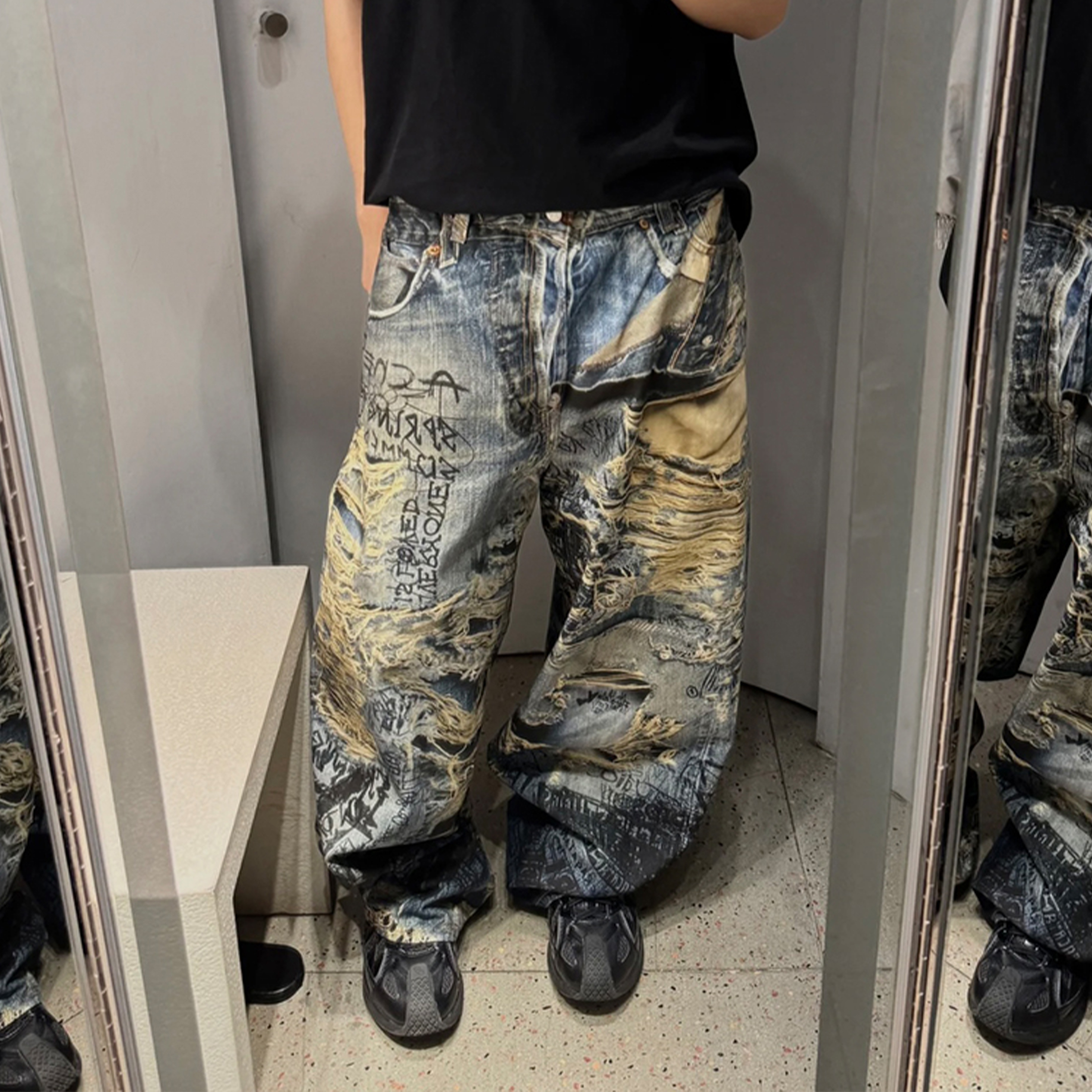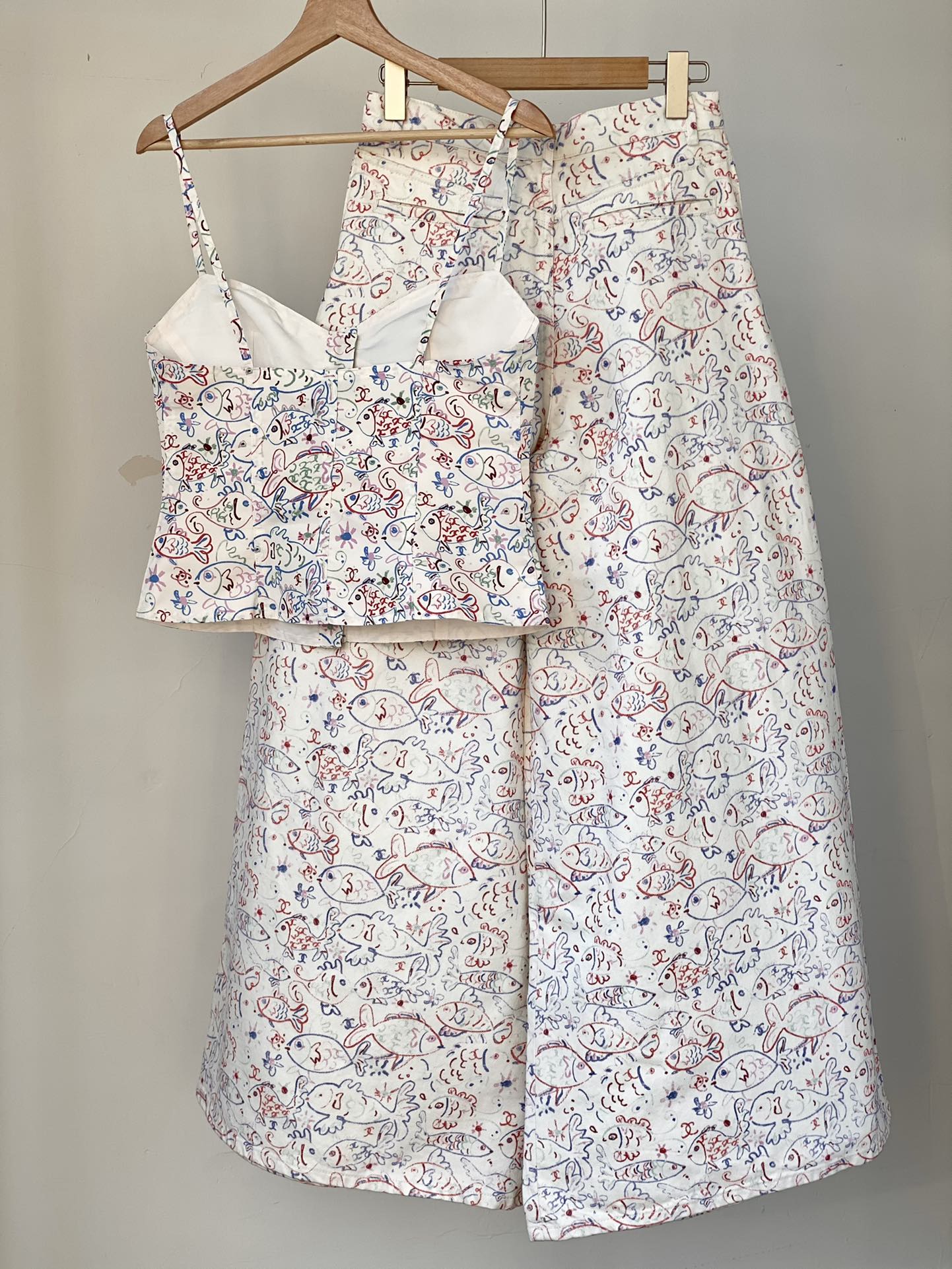 NIGO Chanel Women's Spring/Summer Graffiti Printed Camisole Top Wide Leg Jeans Pants Set Suit #nigo74985