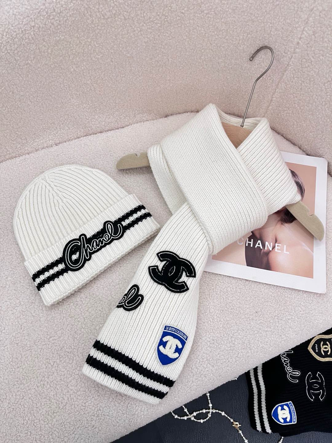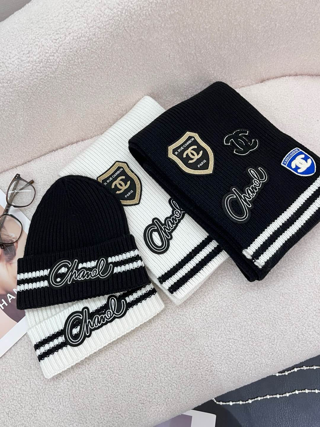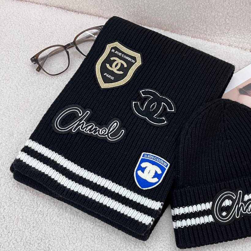 NIGO Chanel Women's Winter Graffiti Pattern Letter Print Solid Color Wool Hat Scarf Cap #nigo75142