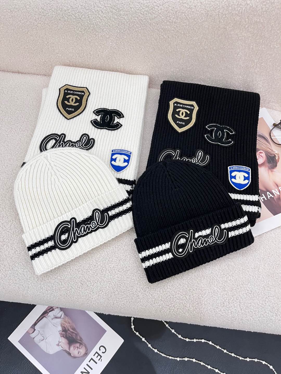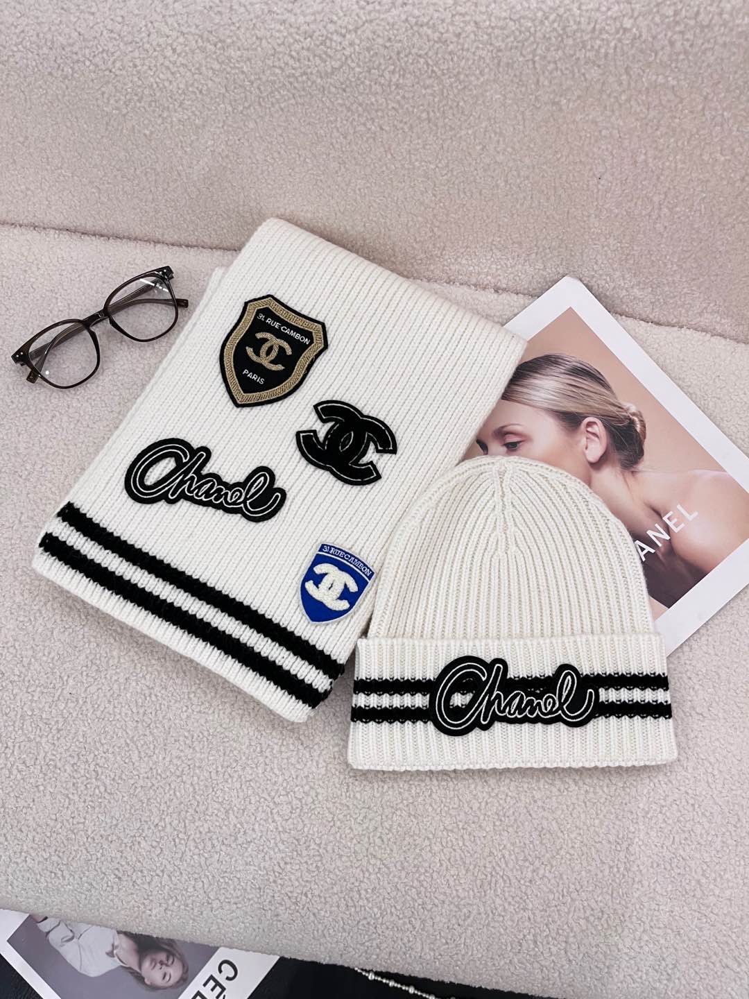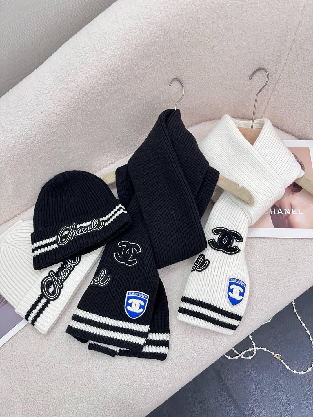 NIGO Chanel Women's Winter Graffiti Pattern Letter Print Solid Color Wool Hat Scarf Cap #nigo75142