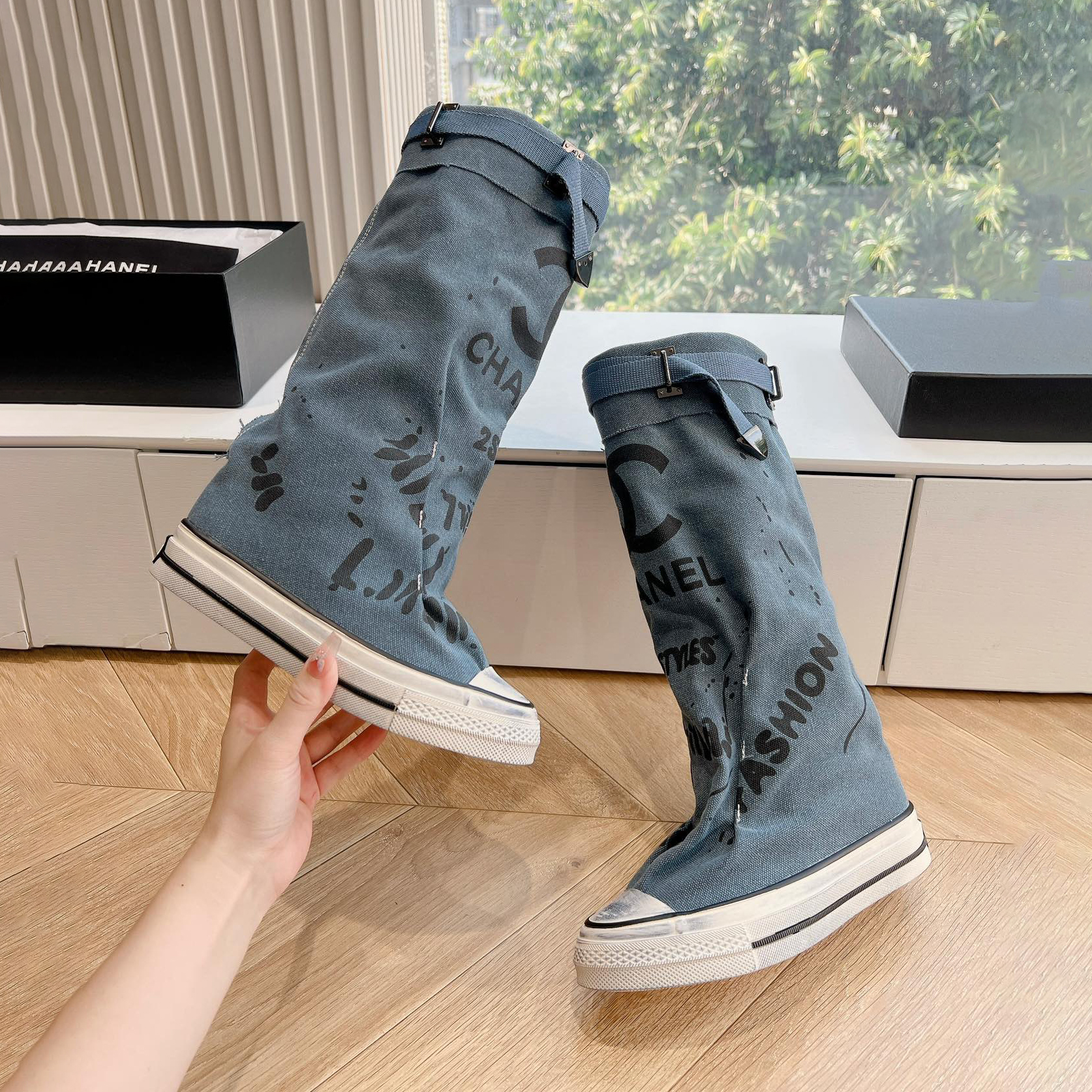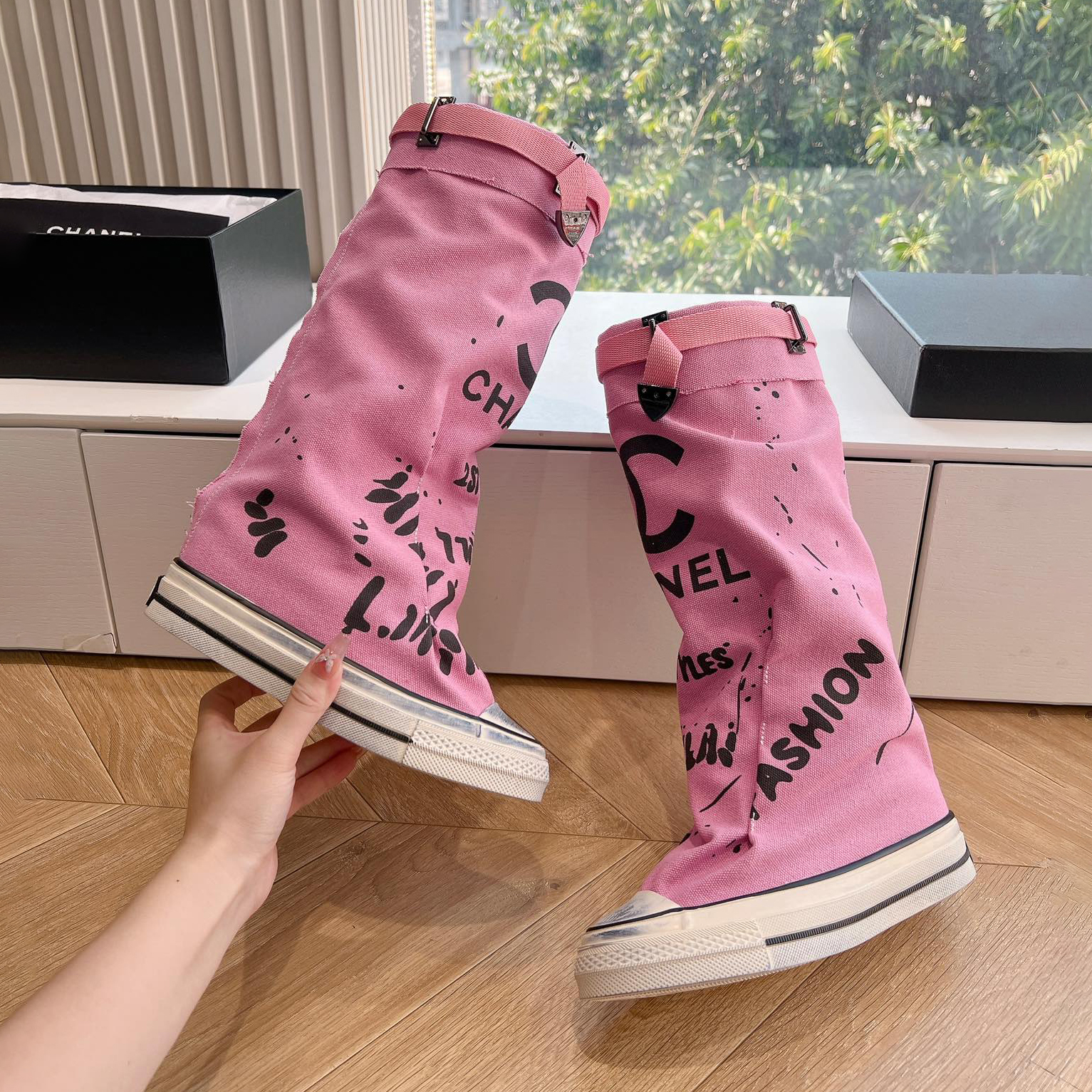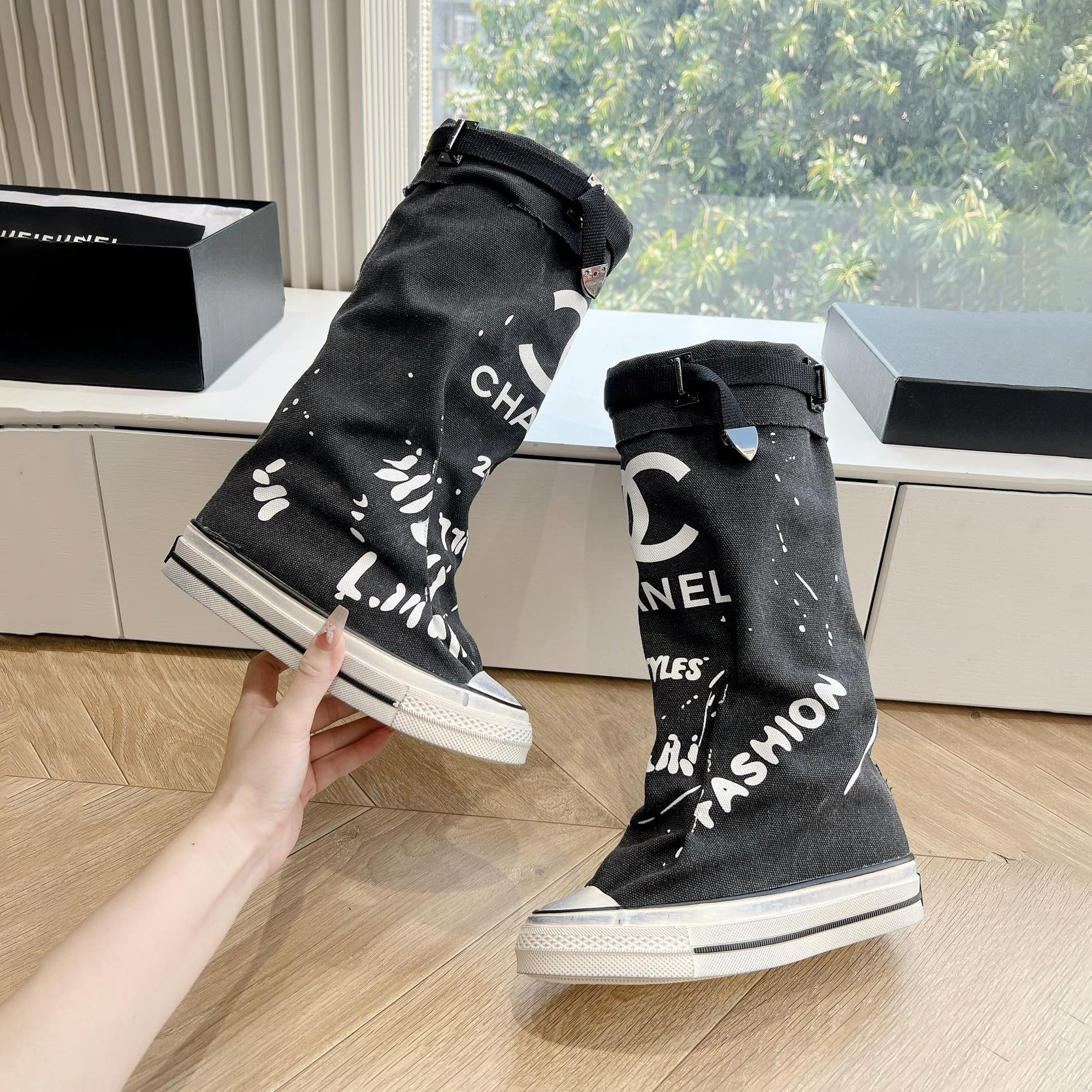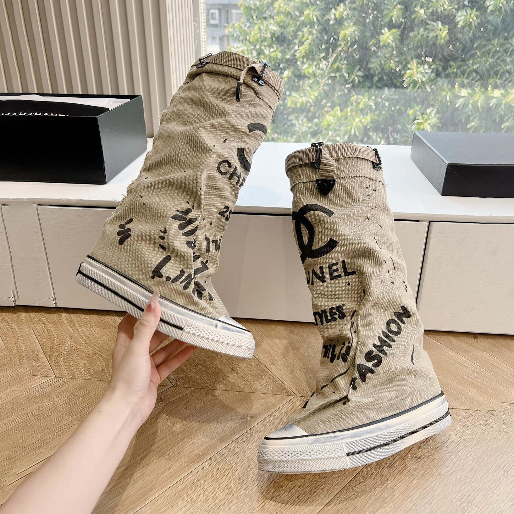NIGO Chanel Women's Solid Color Letter Graffiti Canvas Fashion Tall Boots Shoes #nigo73242