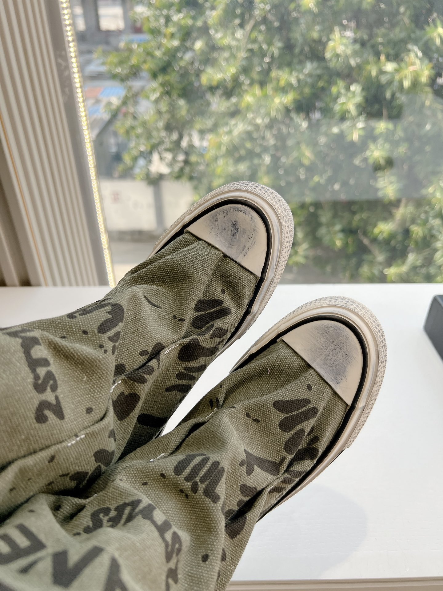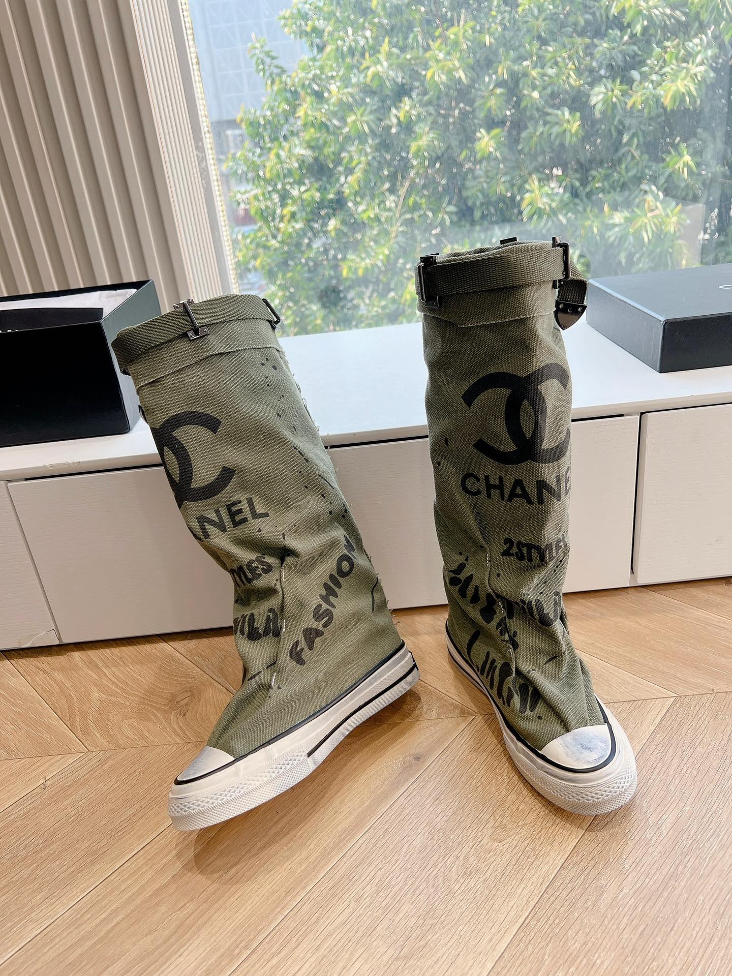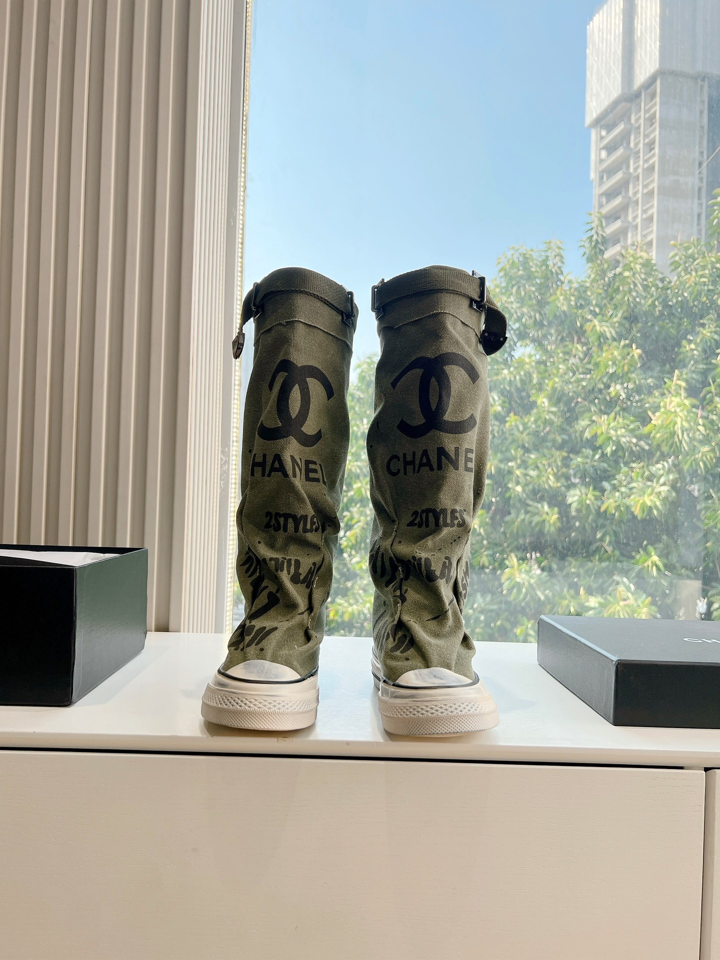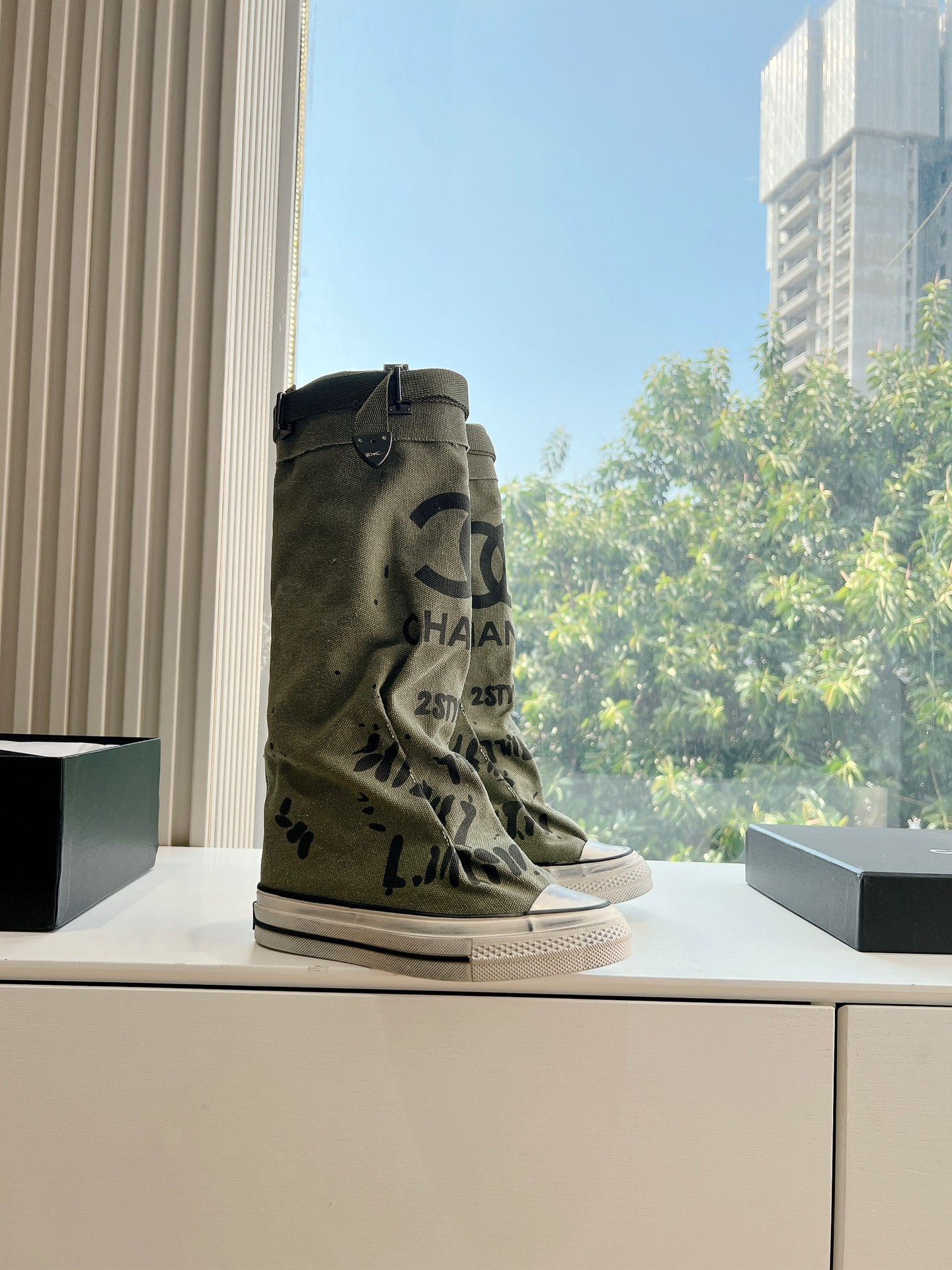 NIGO Chanel Women's Solid Color Letter Graffiti Canvas Fashion Tall Boots Shoes #nigo73242