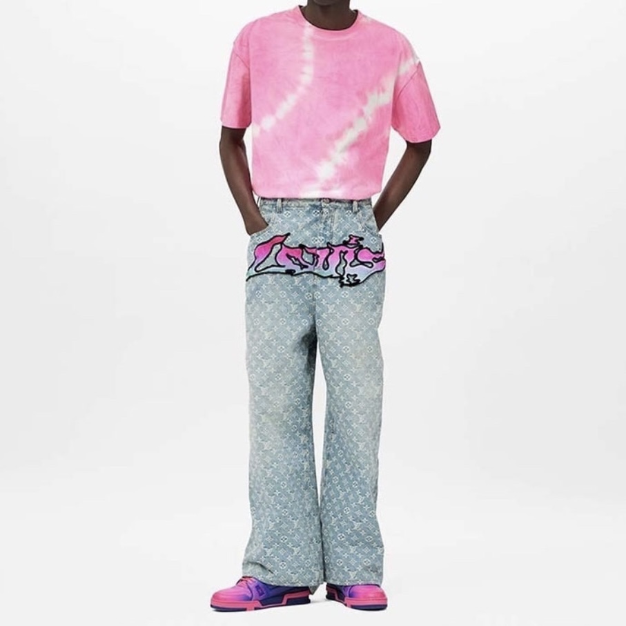 NIGO Louis Vuitton Men's Spring and Autumn Blue Logo Full Print Letter Graffiti Jeans Pants #nigo73256