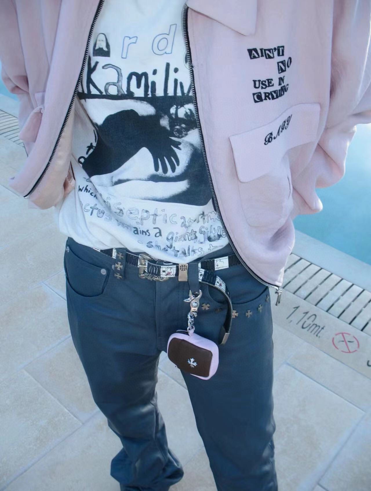 NIGO Enfants Riches Deprimes Men's Fashion Vintage Black and White Checkerboard Old Graffiti Leather Belt Ngvp #nigo9371
