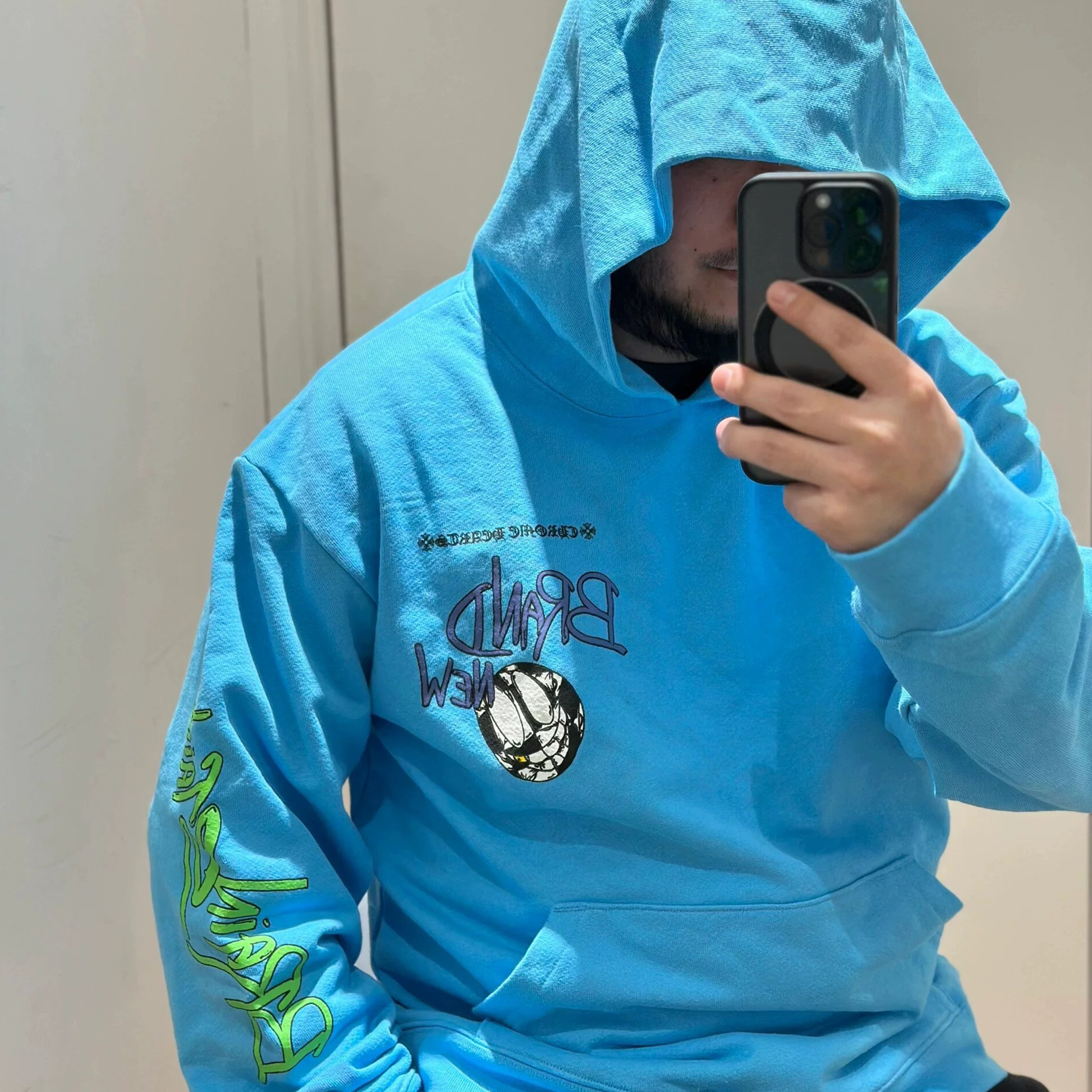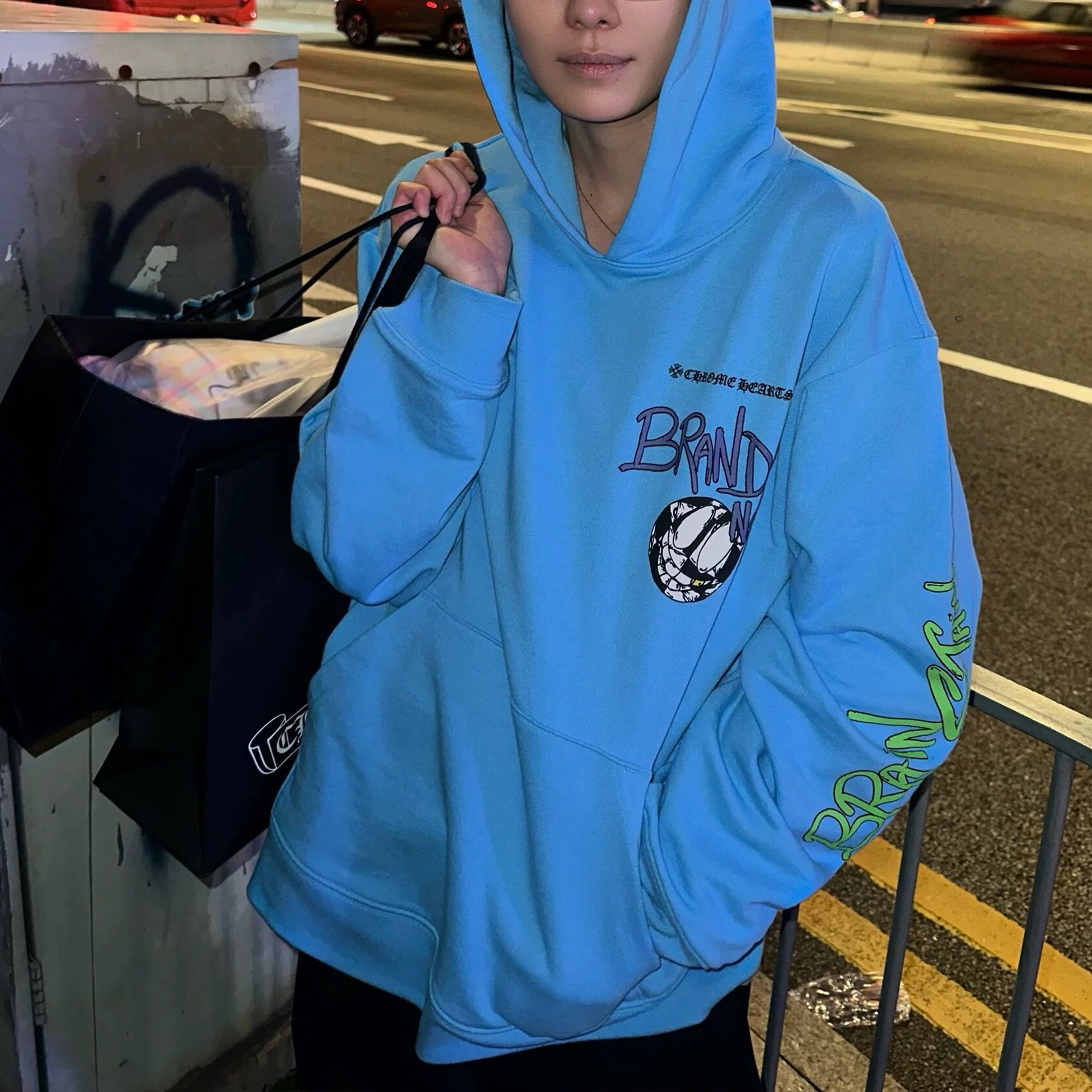 NIGO Chrome Hearts Men's Women's Spring And Summer Fashion Letter Graffiti Blue Casual Loose Hooded Sweatshirt #nigo98725