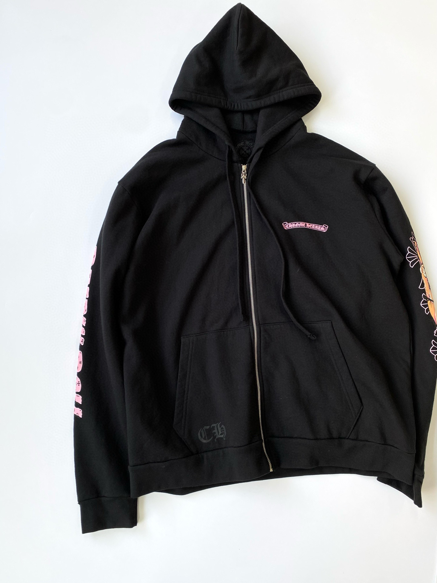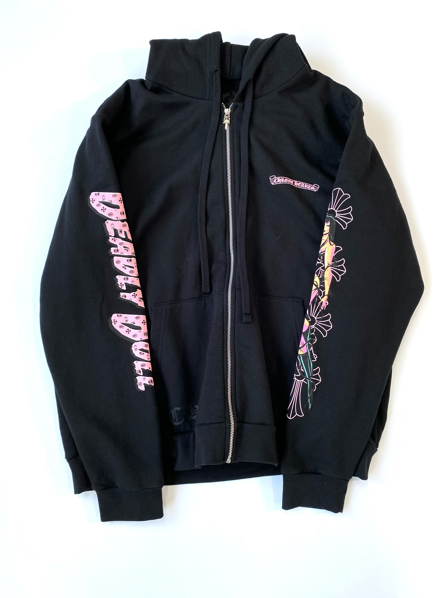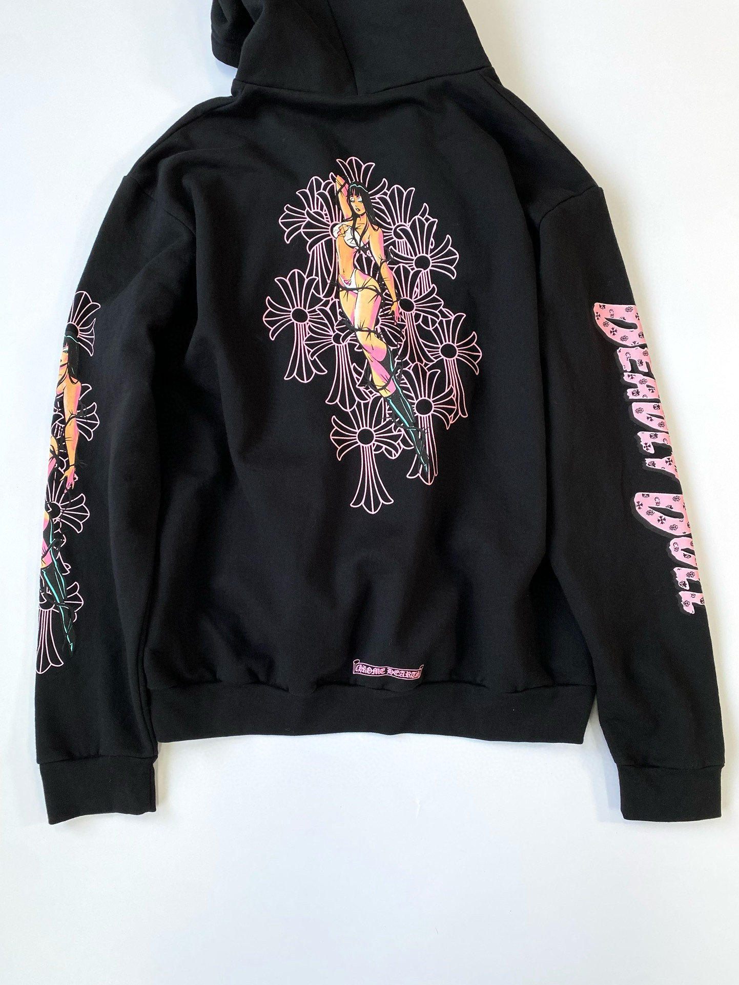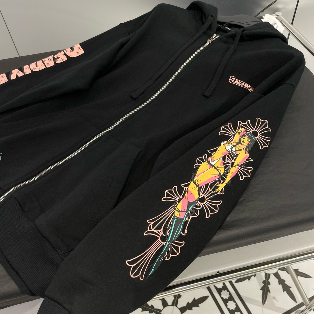 NIGO Chrome Hearts Men's Fall/Winter Fan Cross Graffiti Print Black Hooded Zipper Jacket #nigo97956