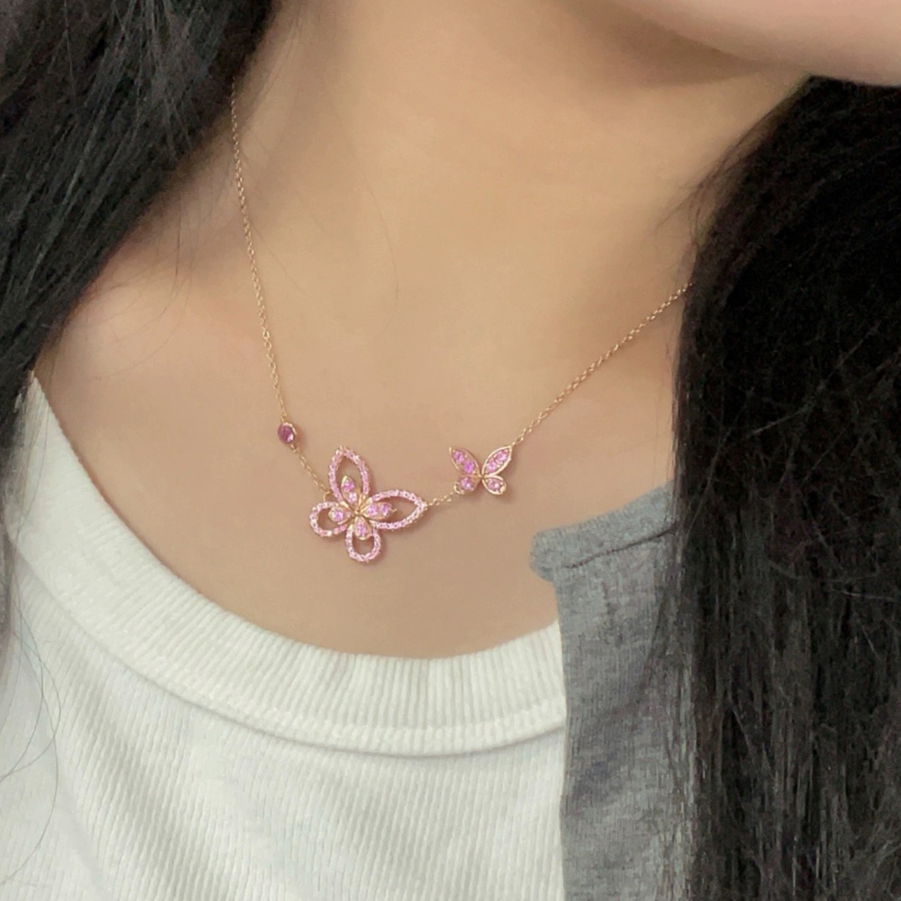 NIGO Graff Women's Four Seasons Temperament Pink Diamond Butterfly Necklace Luxury Metal Accessories Ngvp #nigo7773