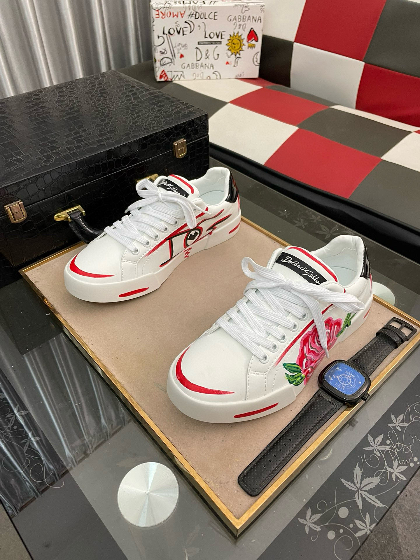 NIGO Dolce&Gabbana Men's Graffiti White Shoes Cowhide Board Shoes Sneakers #nigo98356