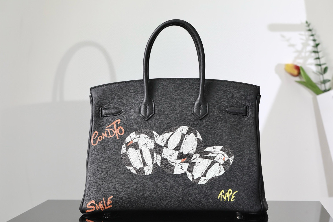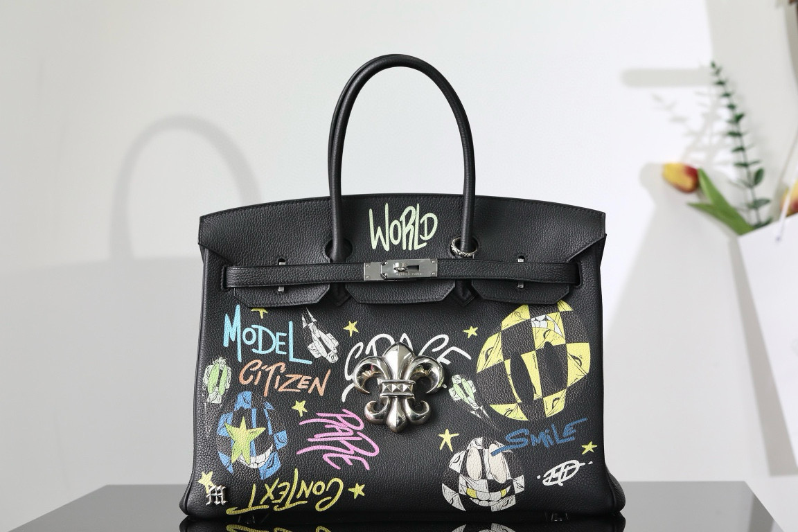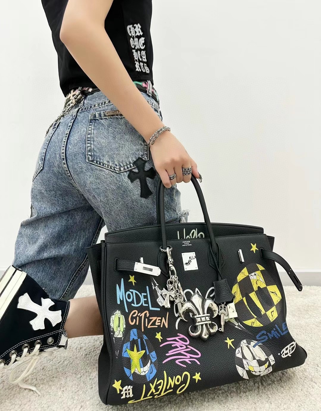 NIGO Chrome Hearts X Hermes X Graffiti Ladies Graffiti Pattern Metal Buckle Leather Tote Bag #nigo97796