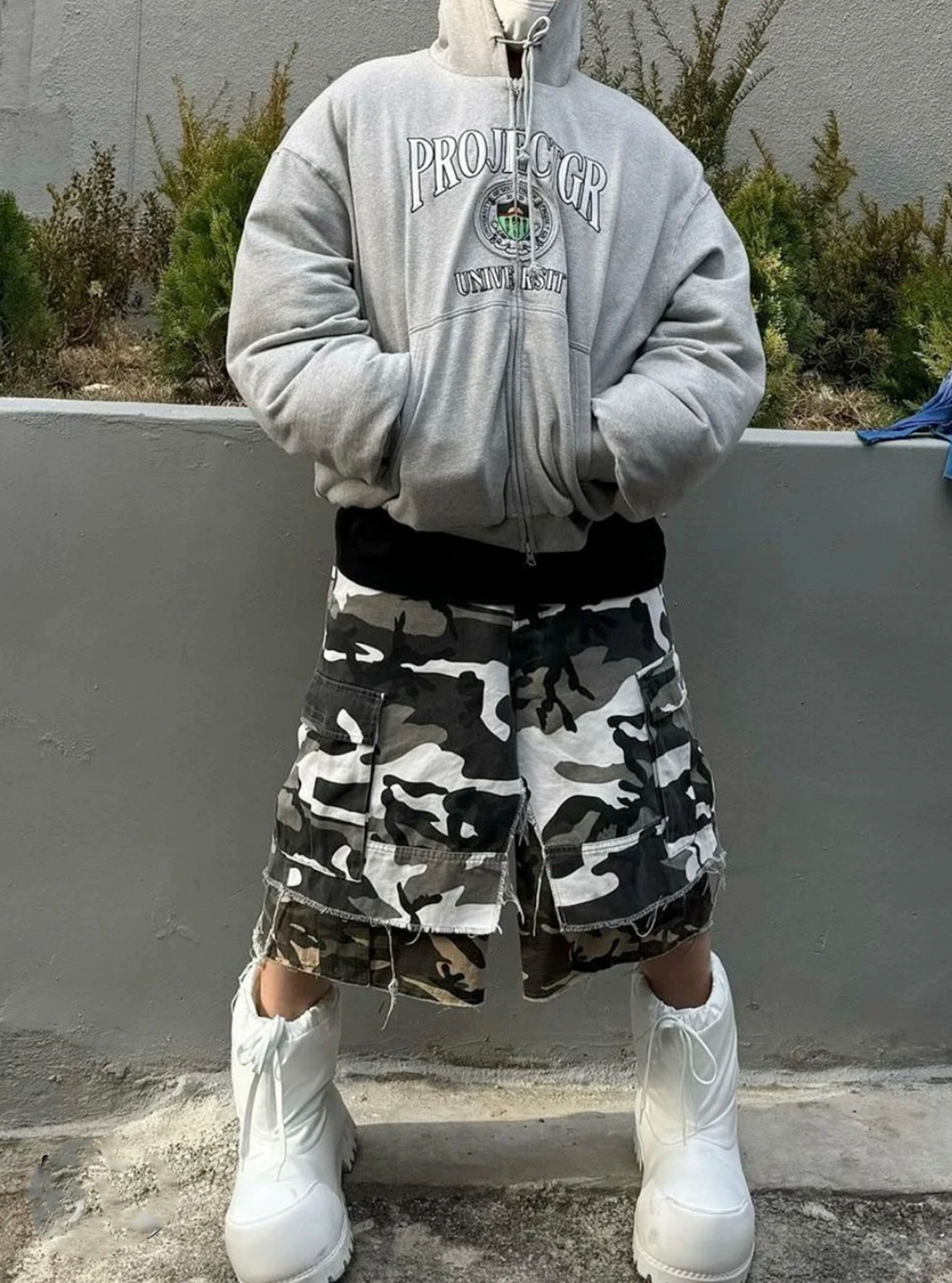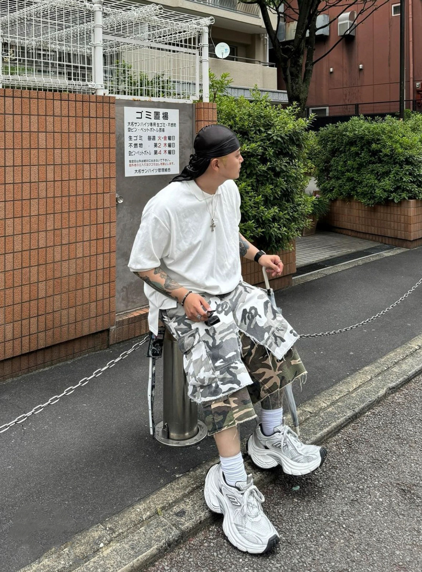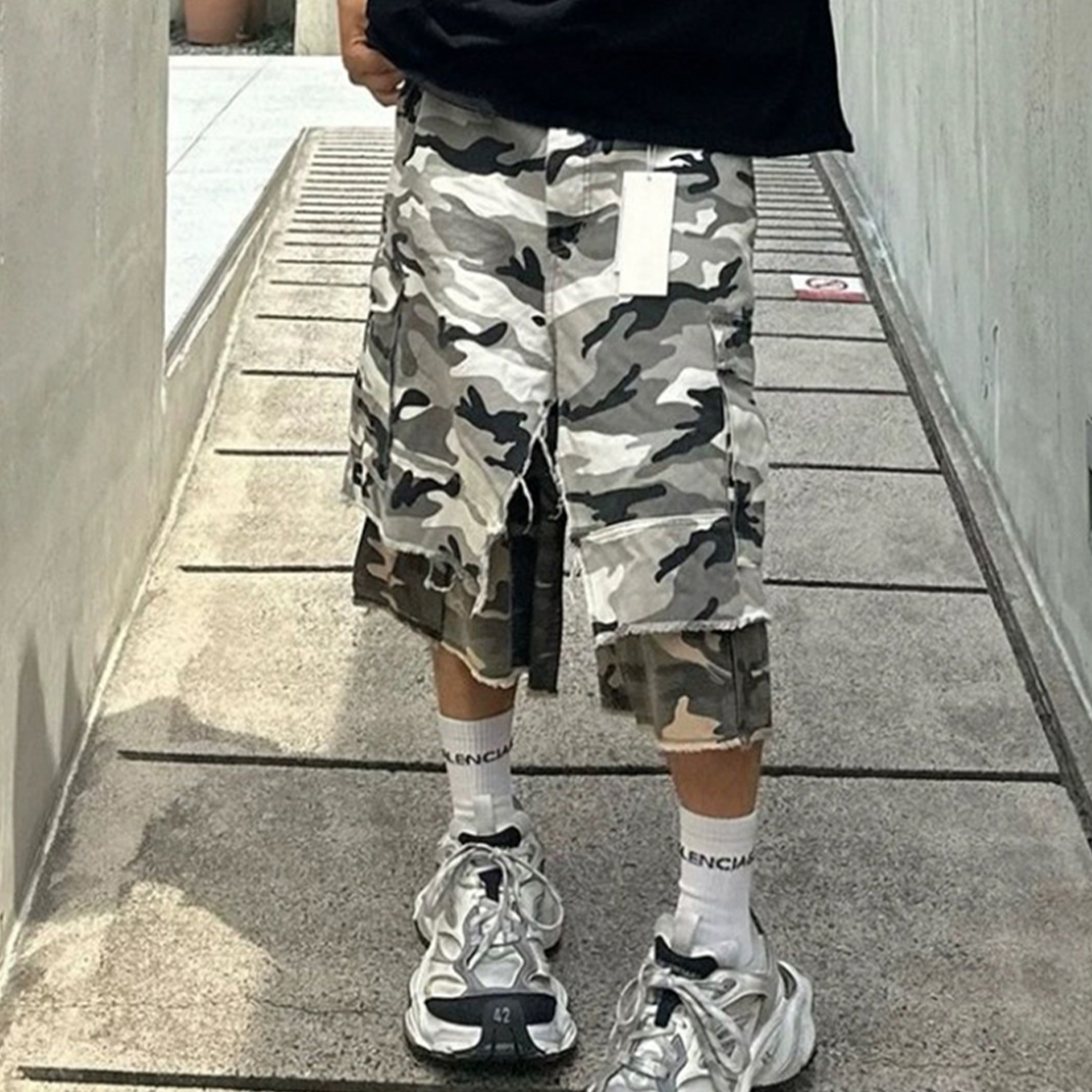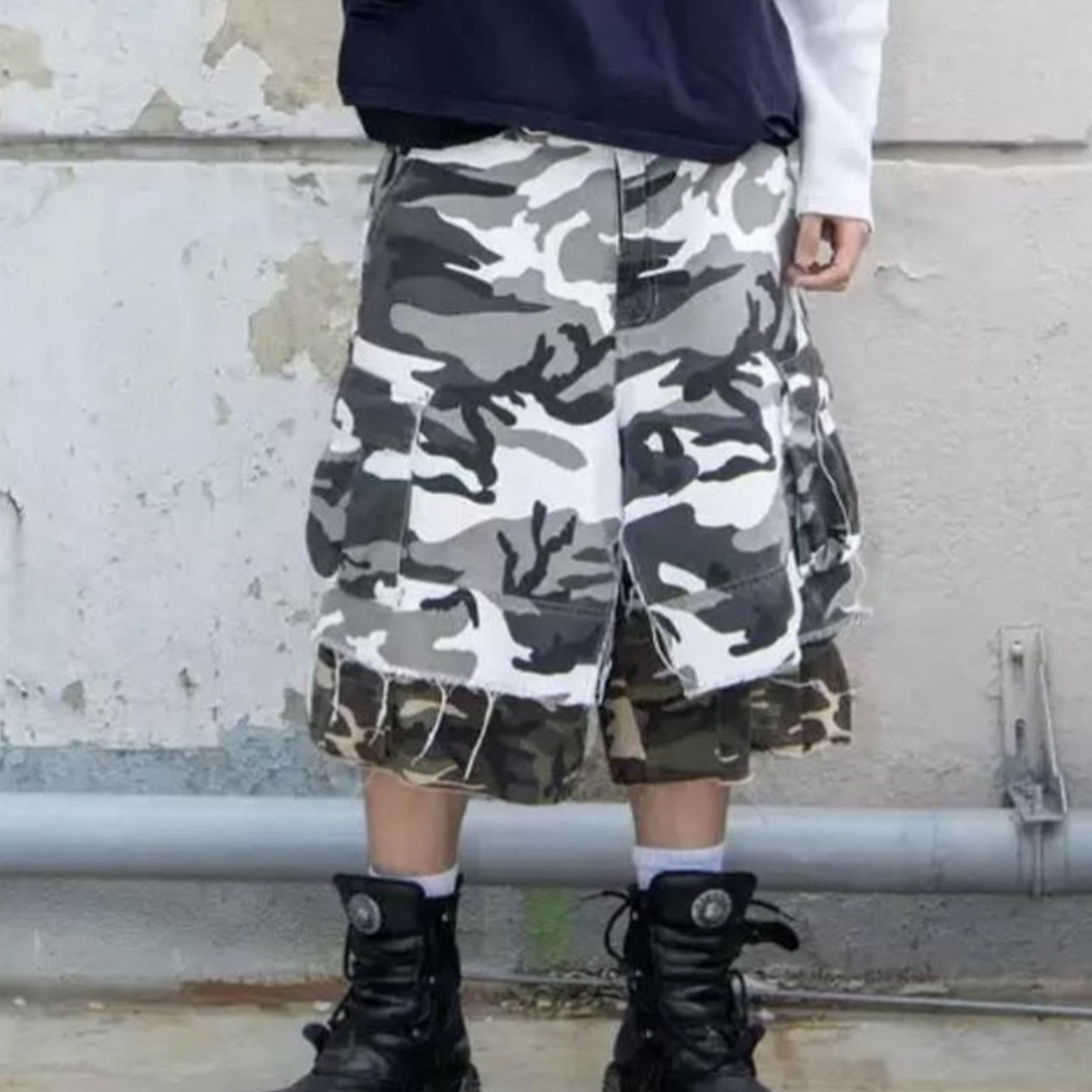 Home / GRAILZ / NIGO GRAILZ Project G/R Men's And Women's Summer Silhouette Camouflage Work Pants Loose Straight Wide-leg Splicing Seven-minute Shorts Trend Pants Ngvp #nigo8873