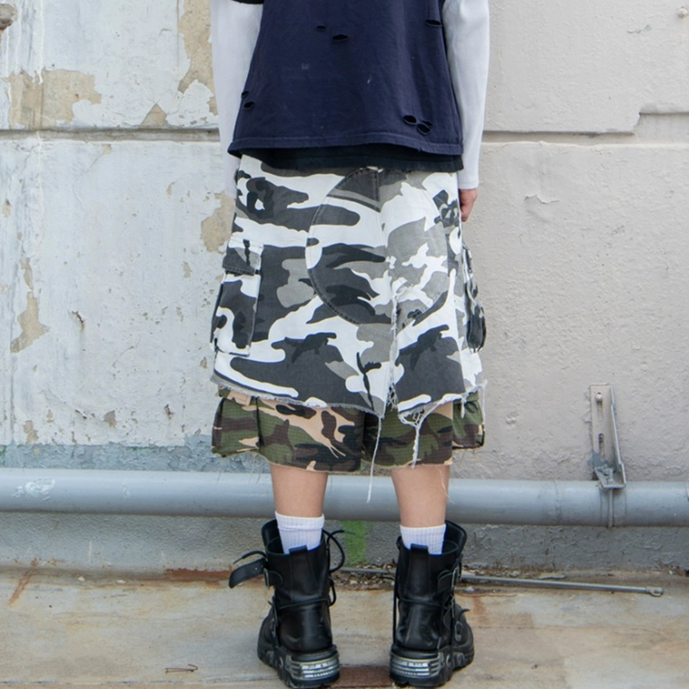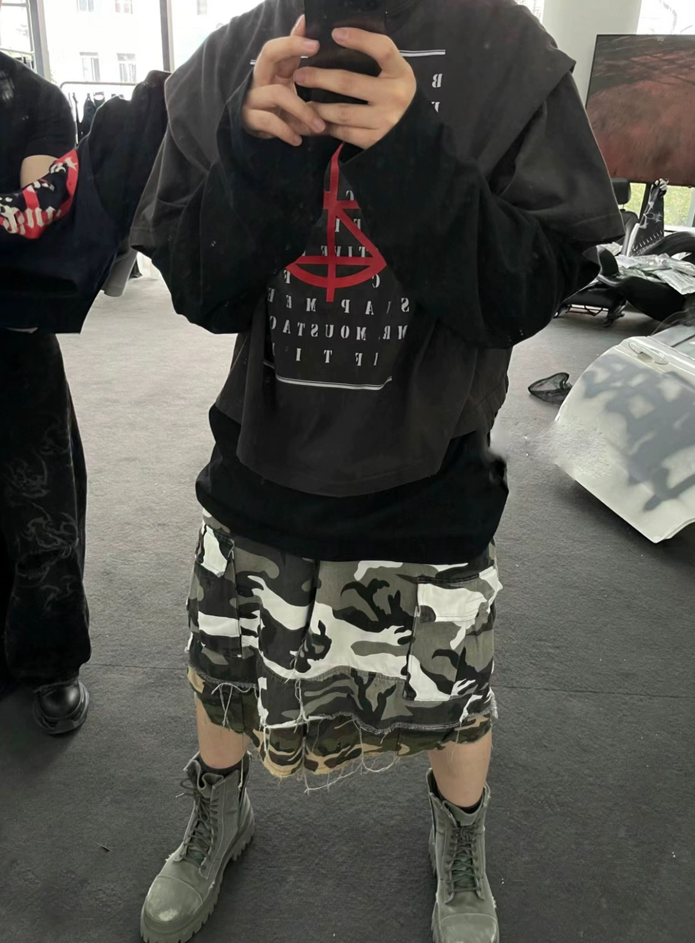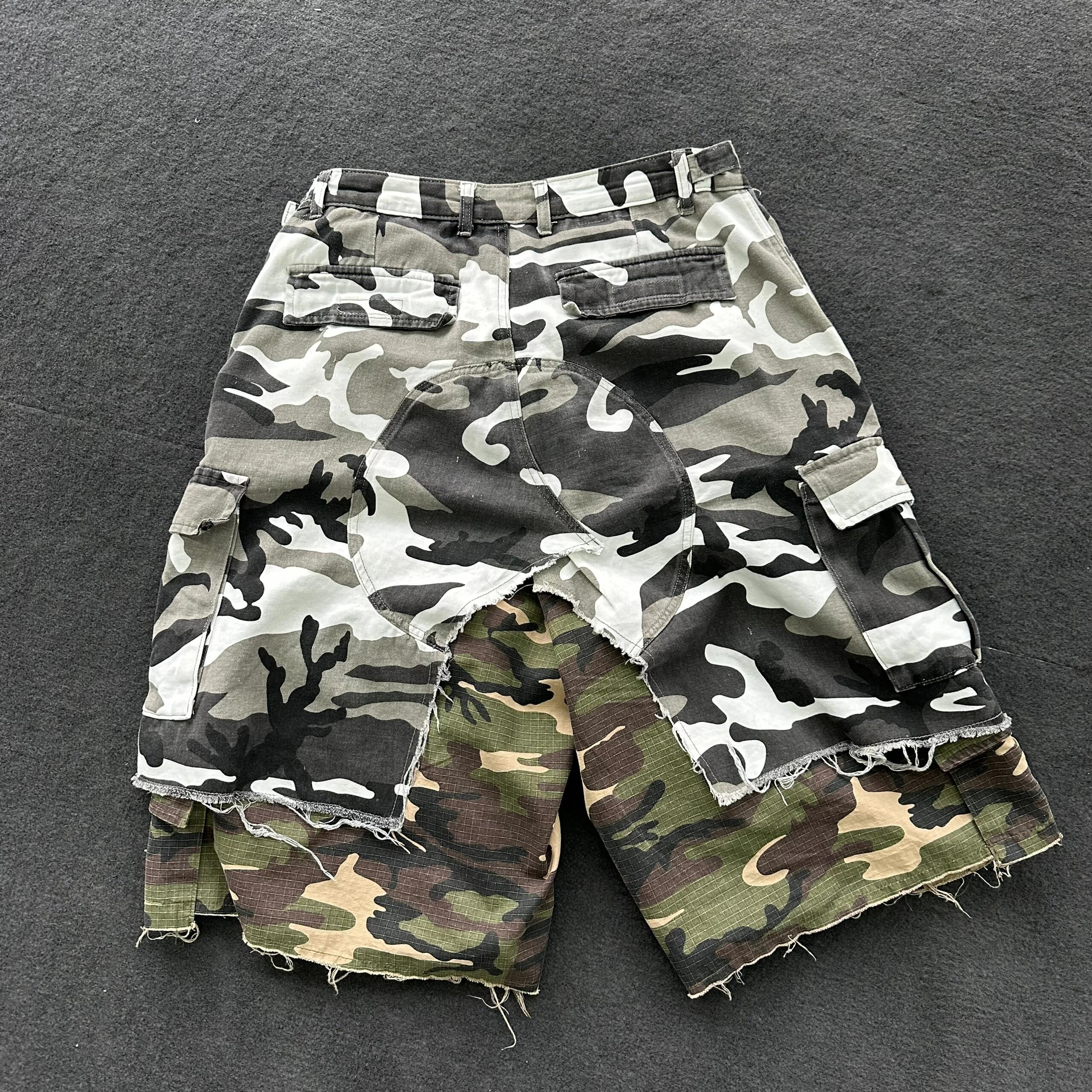 NIGO GRAILZ Project G/R Men's And Women's Summer Silhouette Camouflage Work Pants Loose Straight Wide-leg Splicing Seven-minute Shorts Trend Pants Ngvp #nigo8873