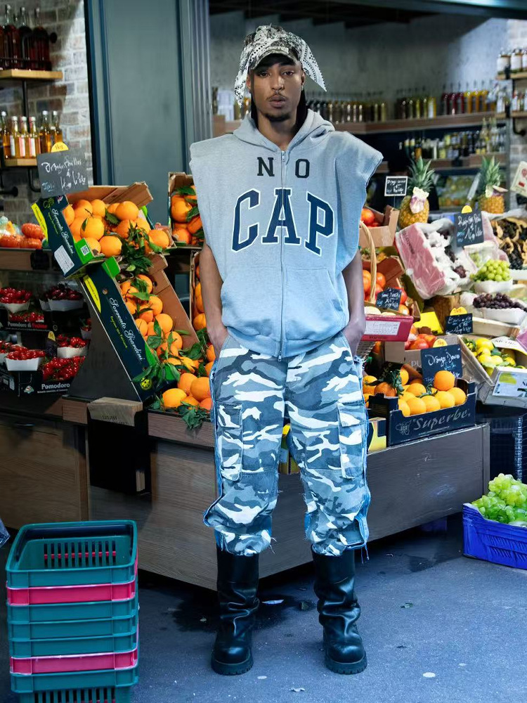 NIGO GRAILZ Project G/R Men's Spring/summer Vibe Canvas Silhouette Sleeveless Padded Shoulder Hooded Vest Zip Sweater Waistcoat Hoodie Ngvp #nigo1723