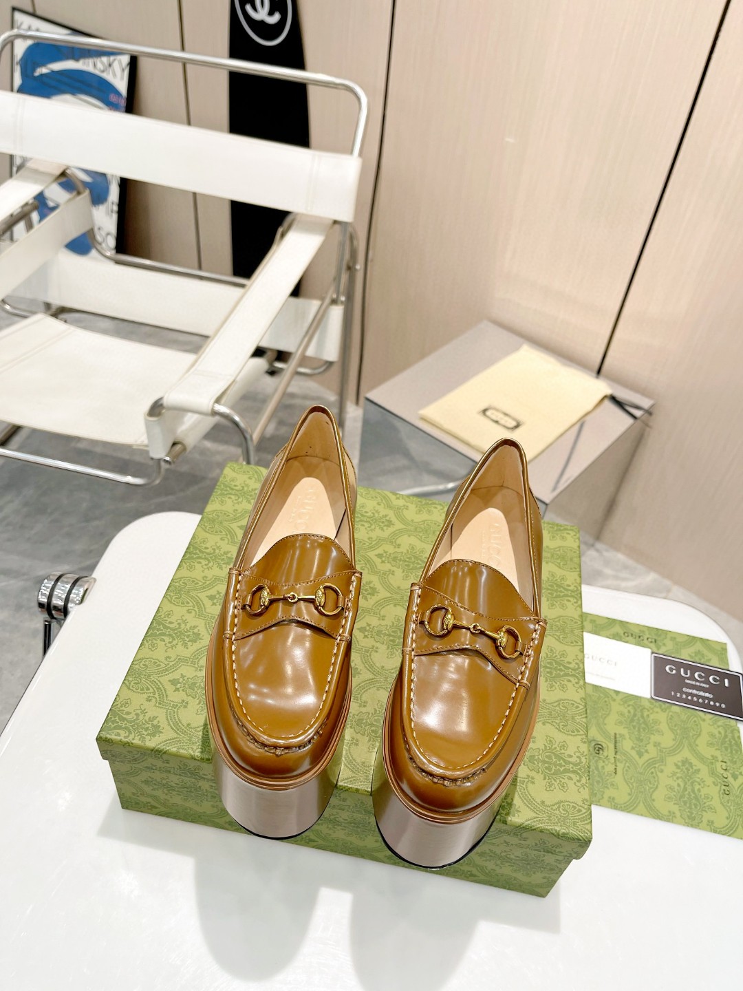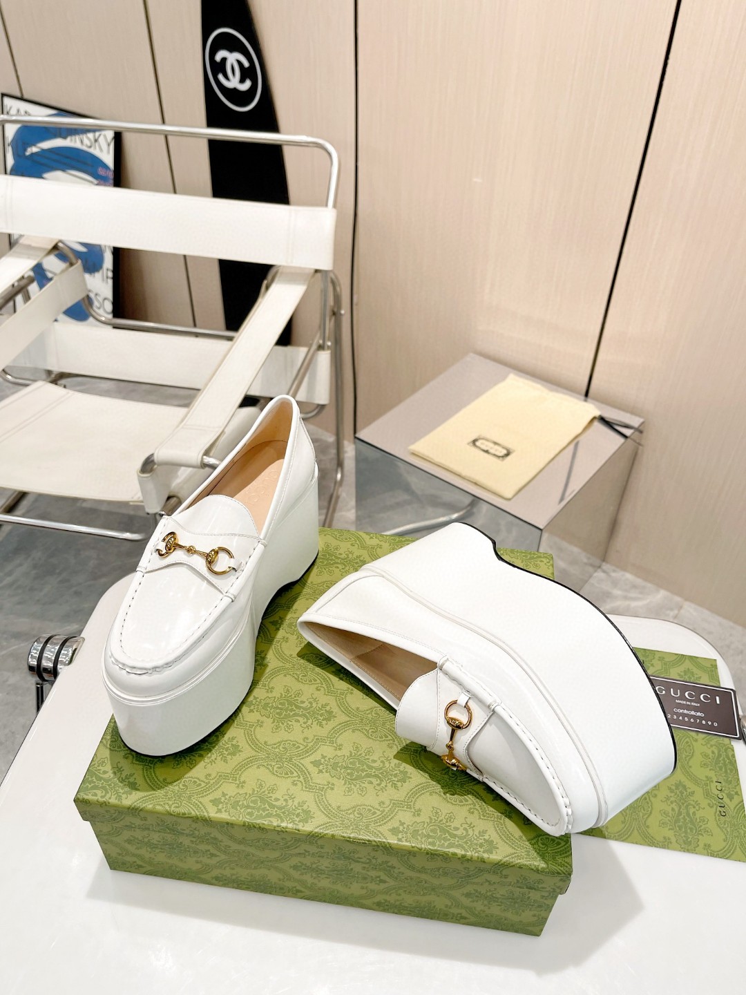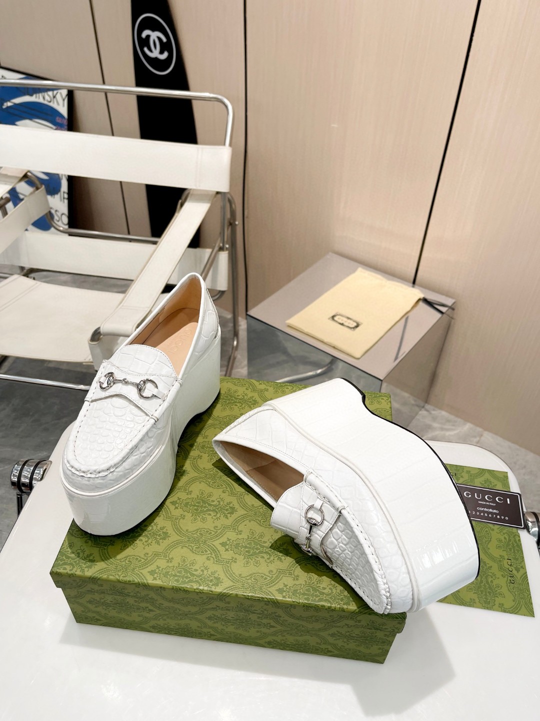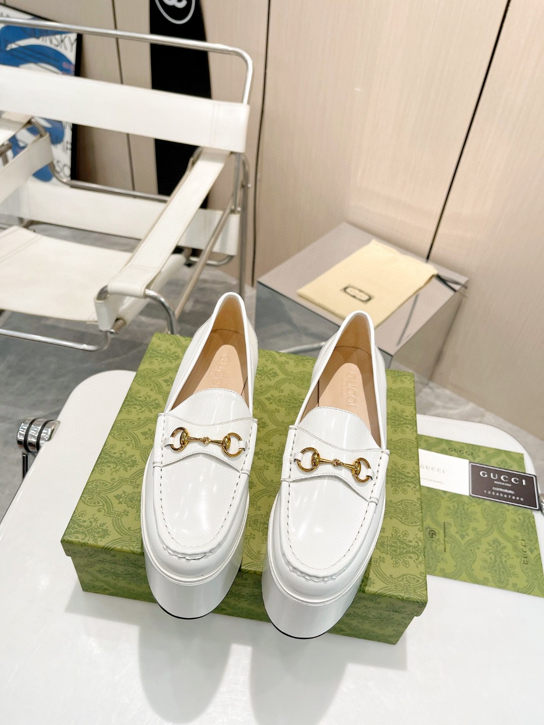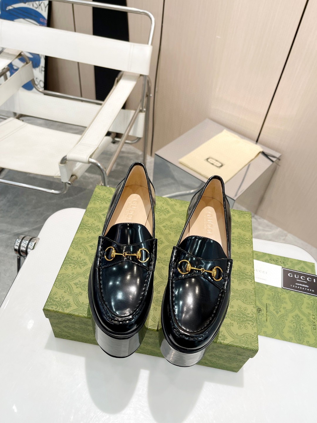 NIGO Gucci Horsebit Women's Solid Colour Cow Leather Horsebit 9cm Thick Sole Loafers Shoes #nigo99234