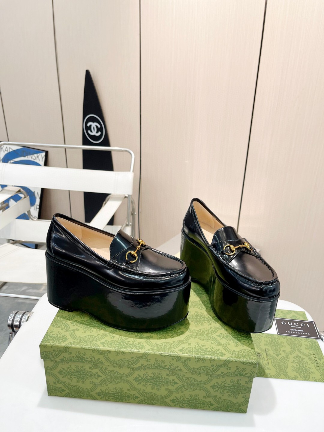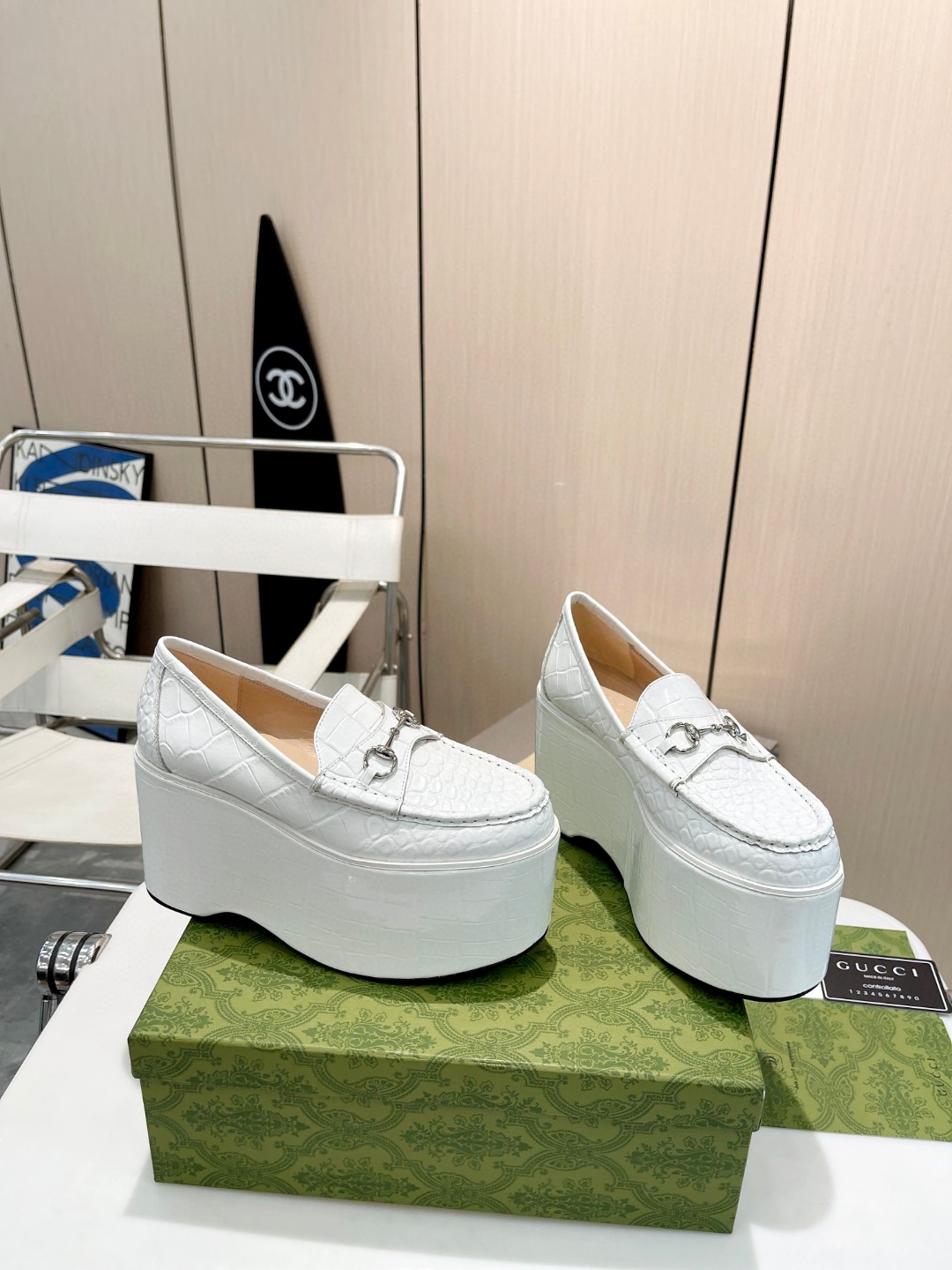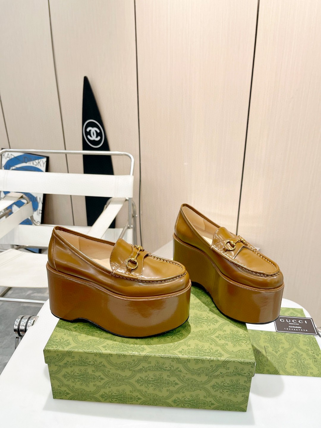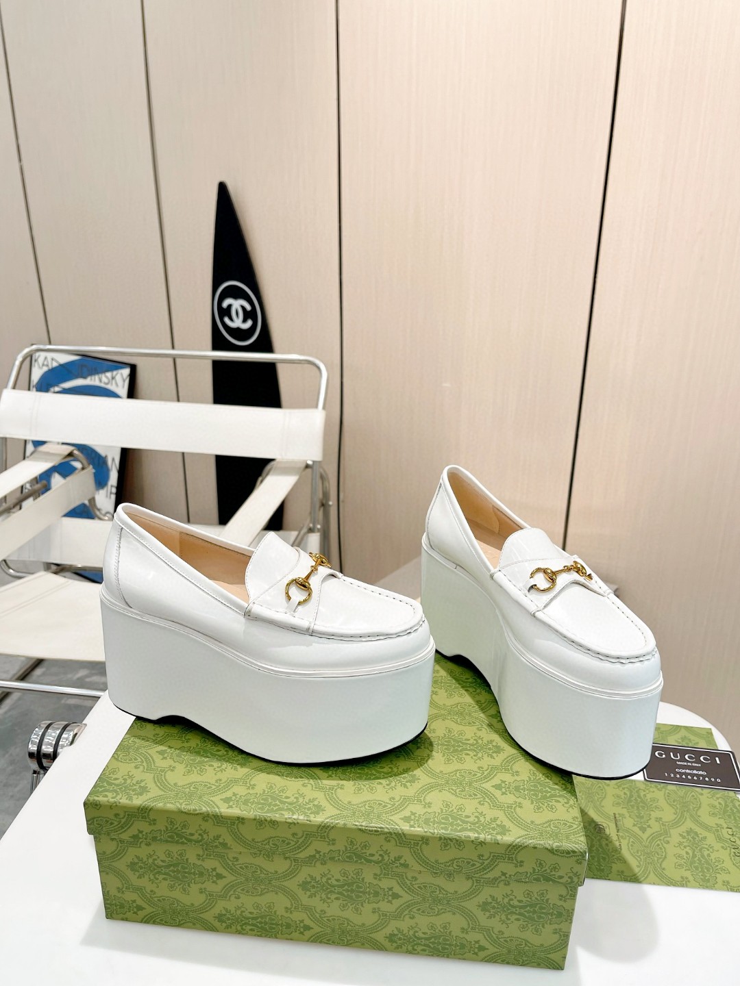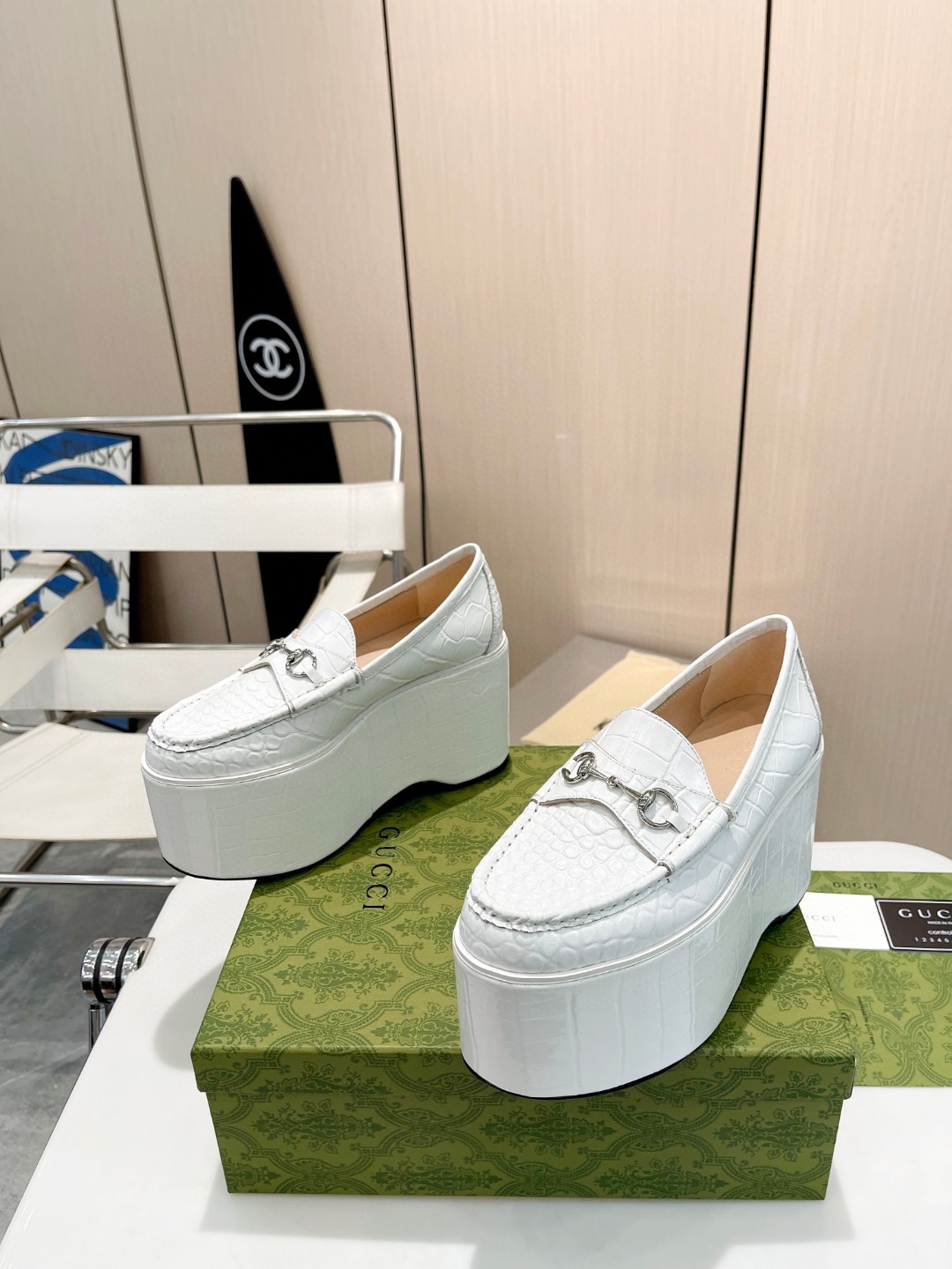 NIGO Gucci Horsebit Women's Solid Colour Cow Leather Horsebit 9cm Thick Sole Loafers Shoes #nigo99234