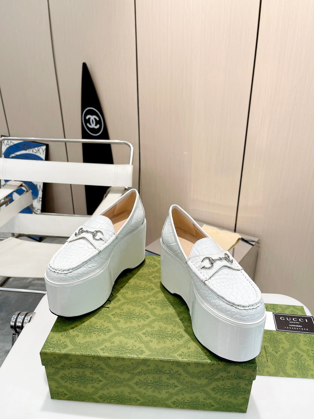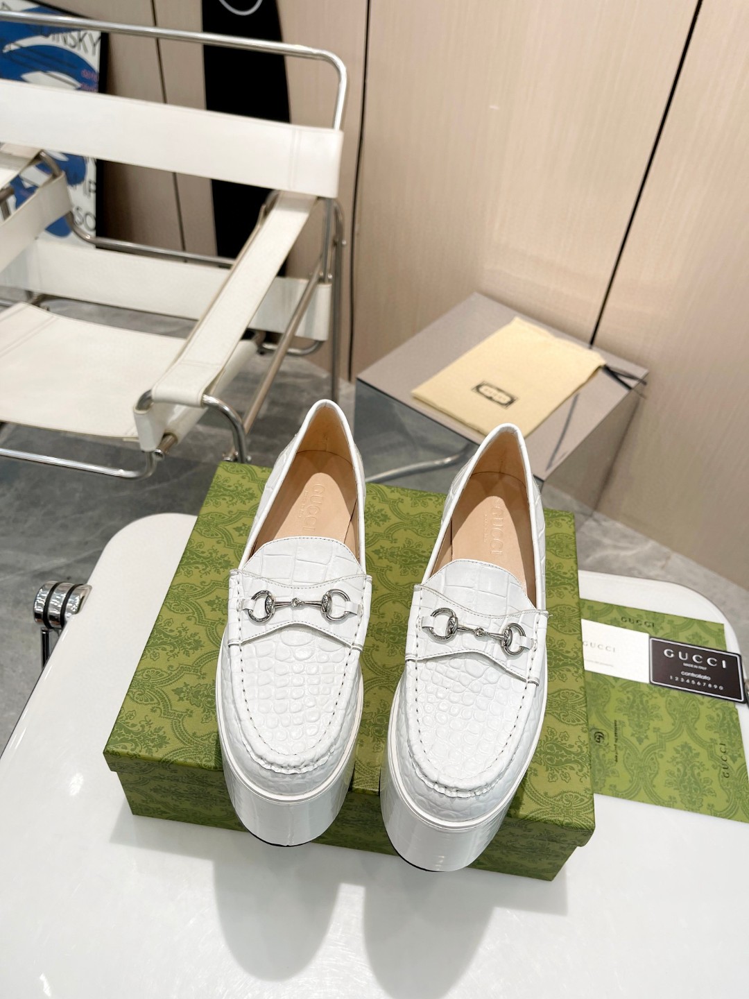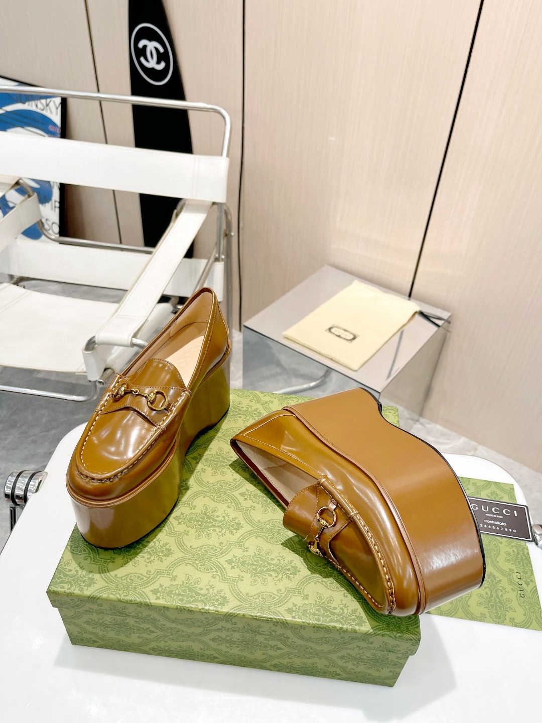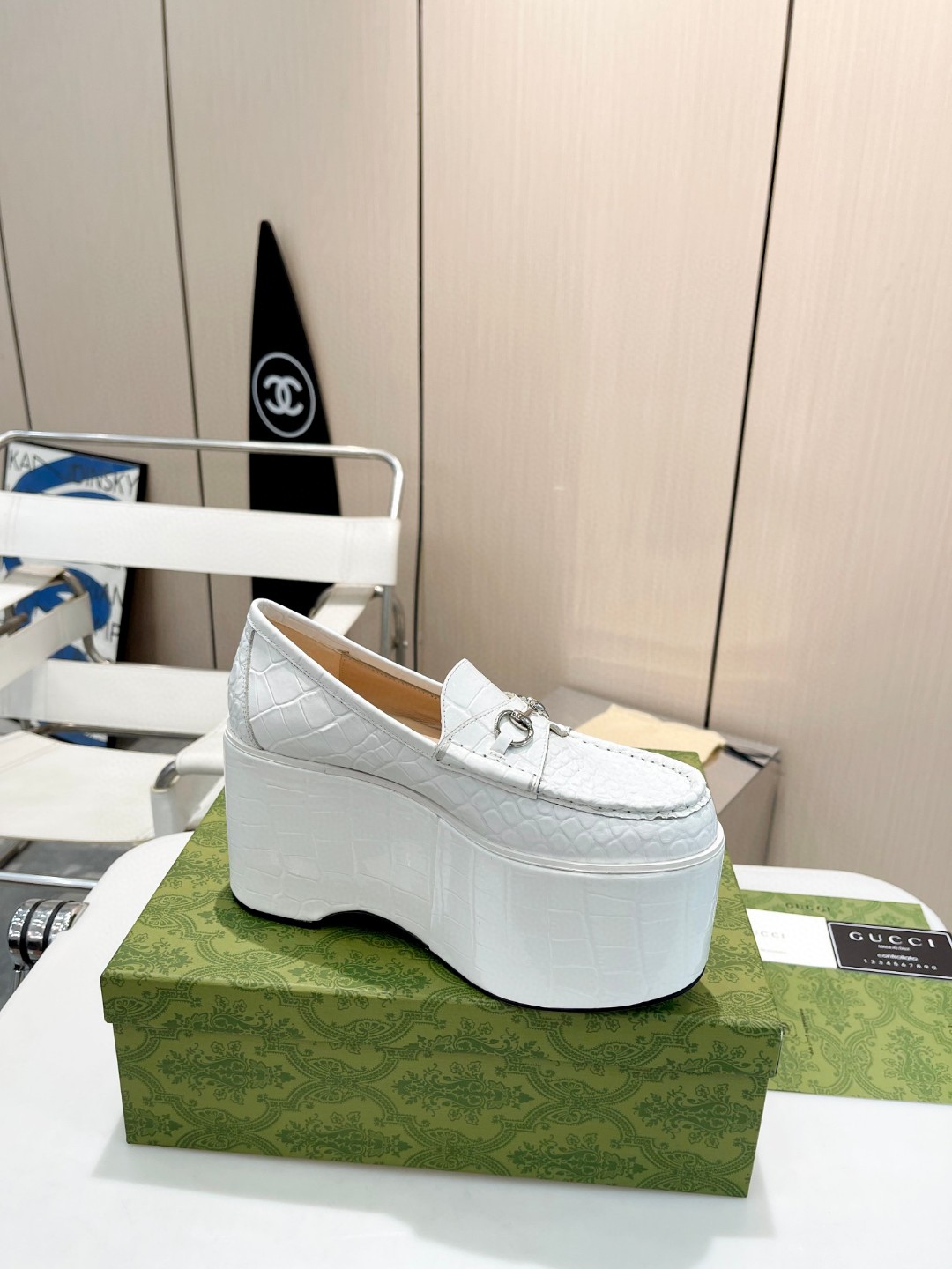 NIGO Gucci Horsebit Women's Solid Colour Cow Leather Horsebit 9cm Thick Sole Loafers Shoes #nigo99234