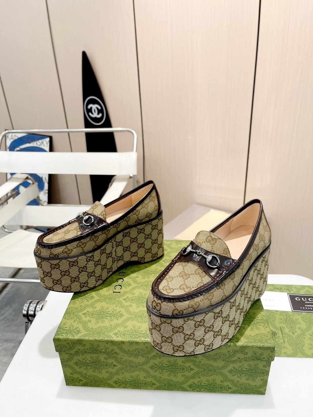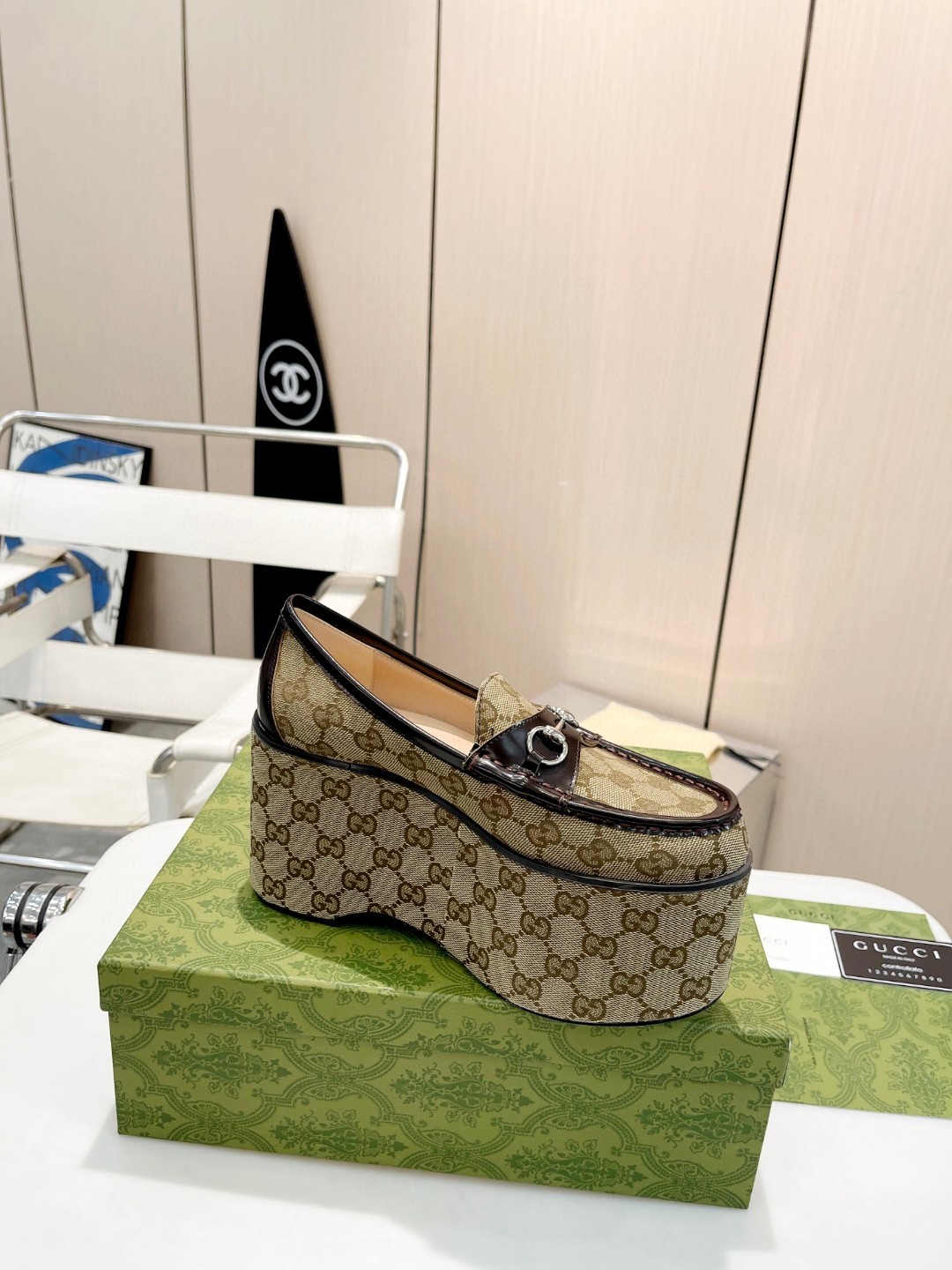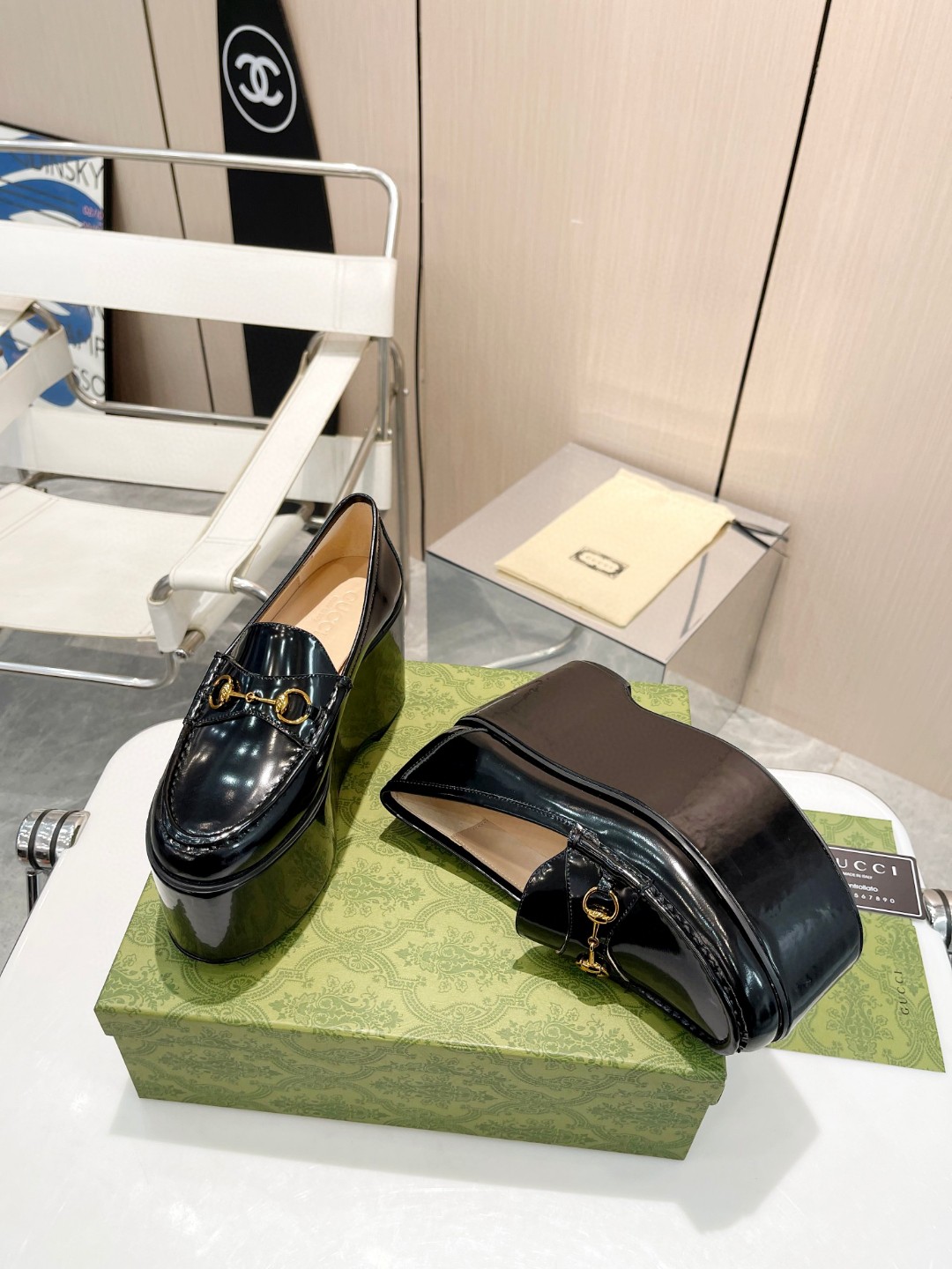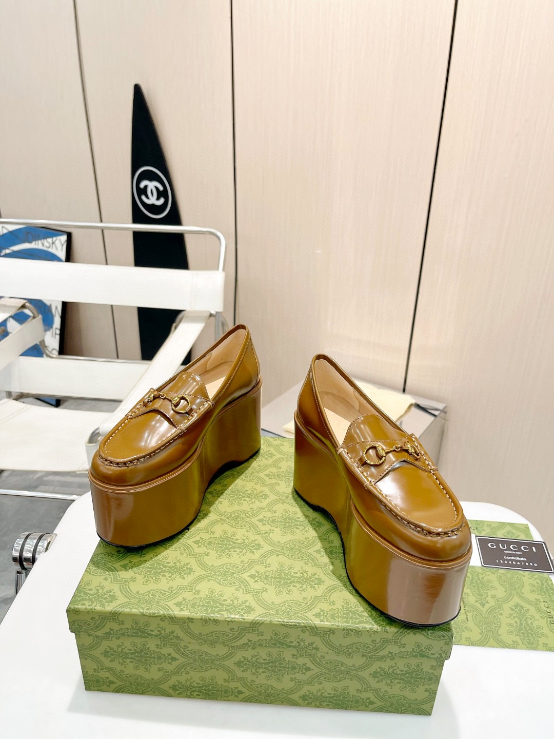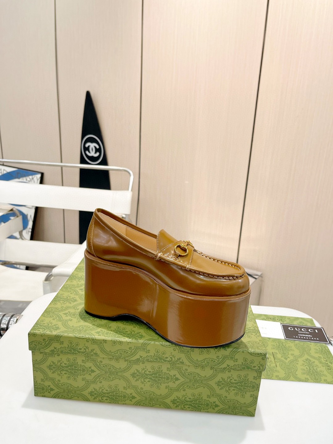 NIGO Gucci Horsebit Women's Solid Colour Cow Leather Horsebit 9cm Thick Sole Loafers Shoes #nigo99234