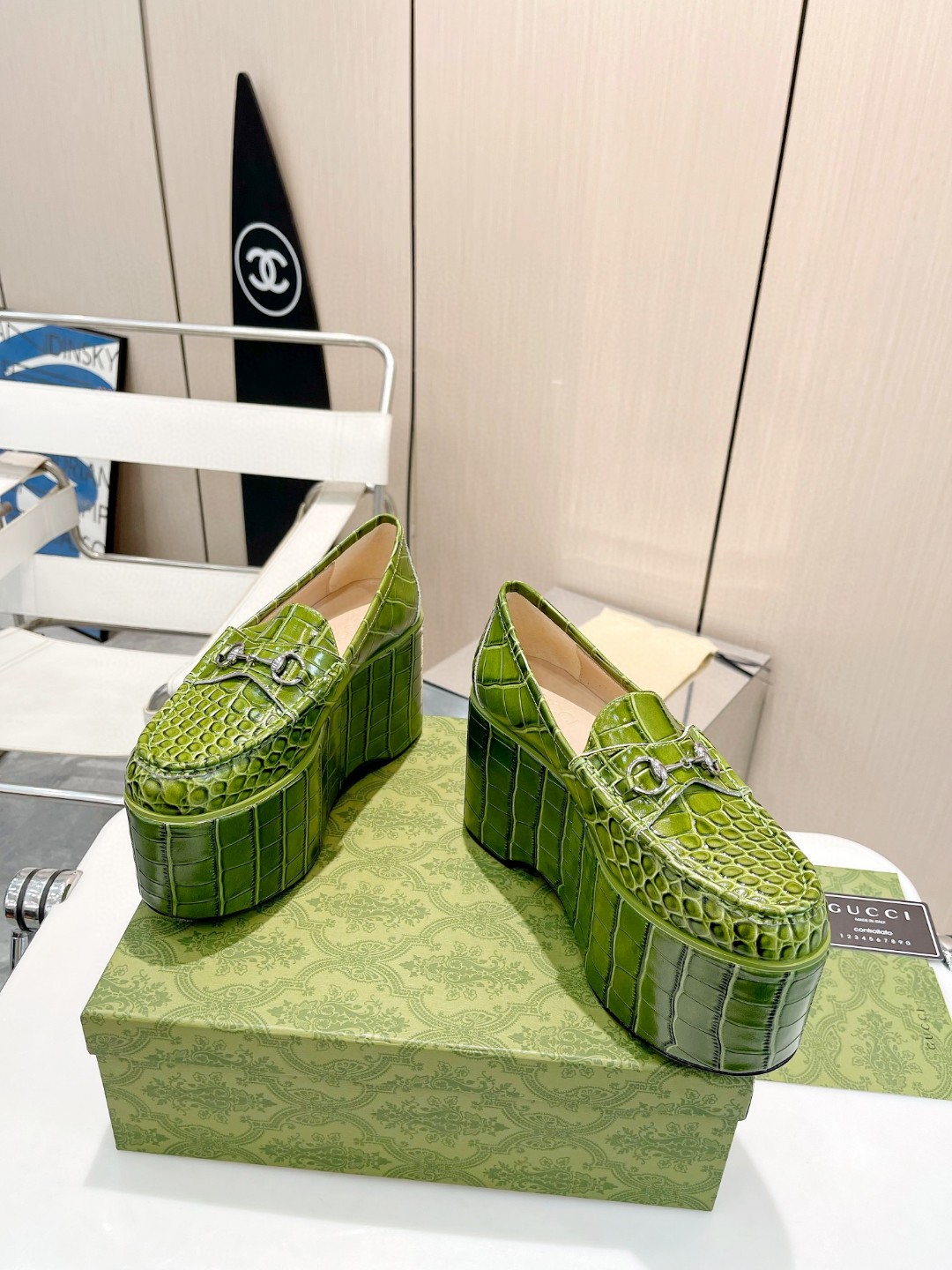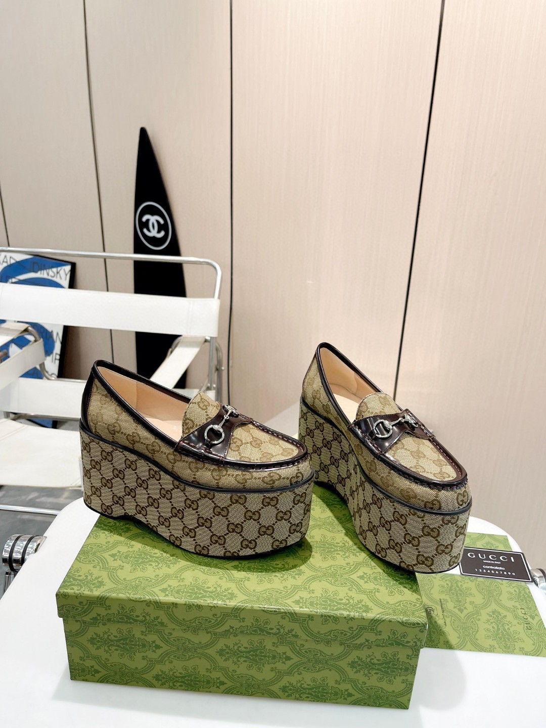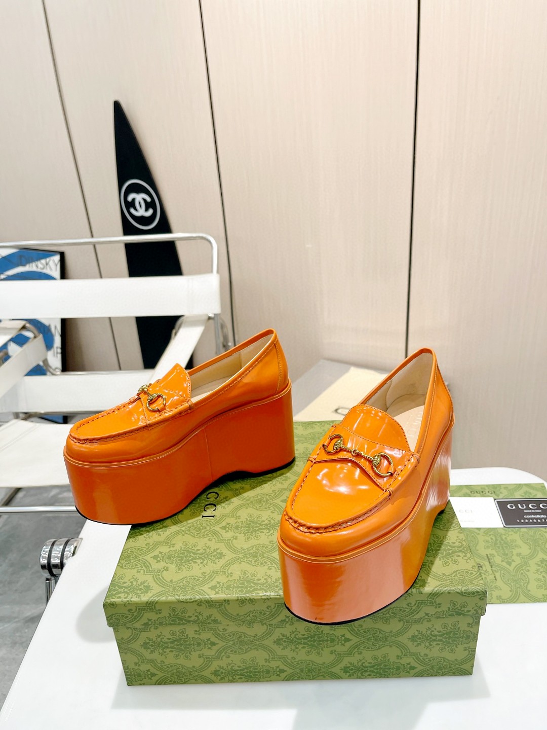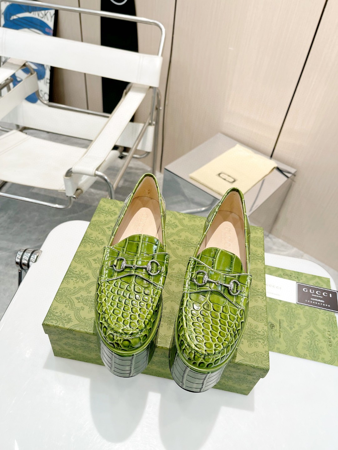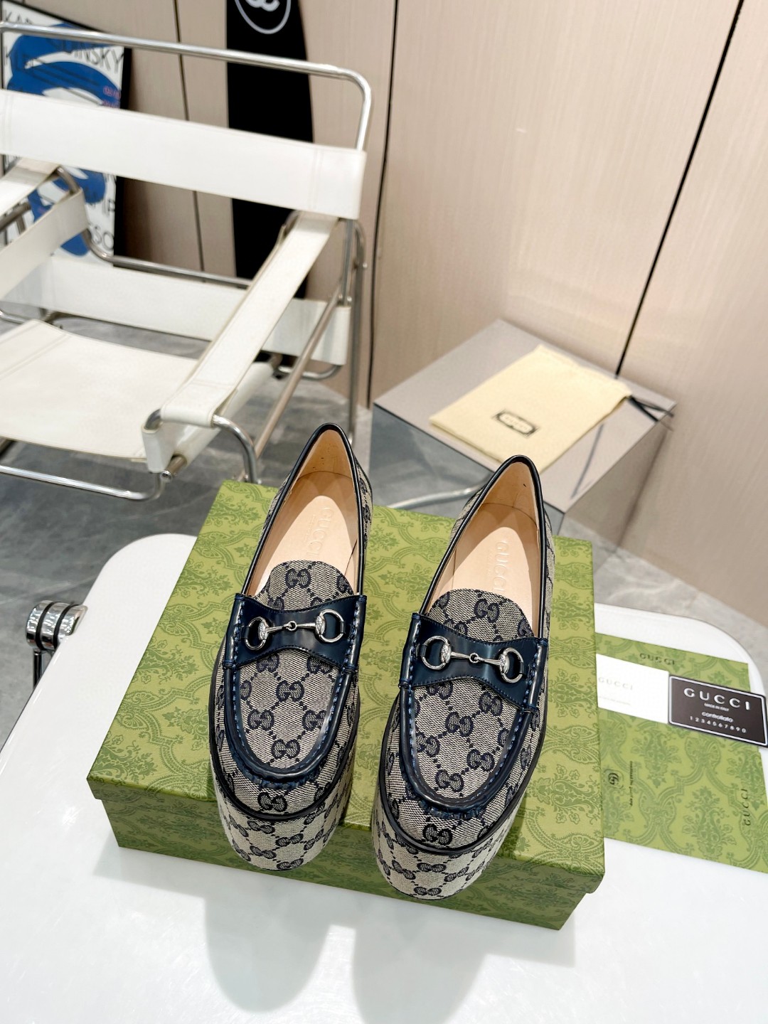 NIGO Gucci Horsebit Women's Solid Colour Cow Leather Horsebit 9cm Thick Sole Loafers Shoes #nigo99234