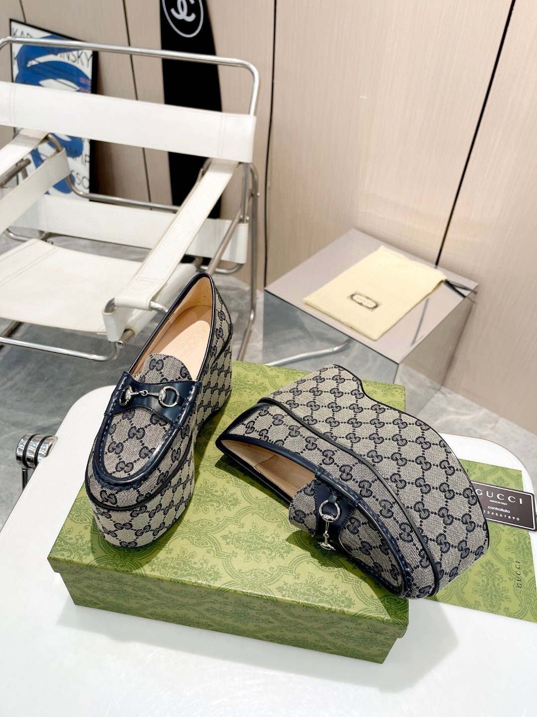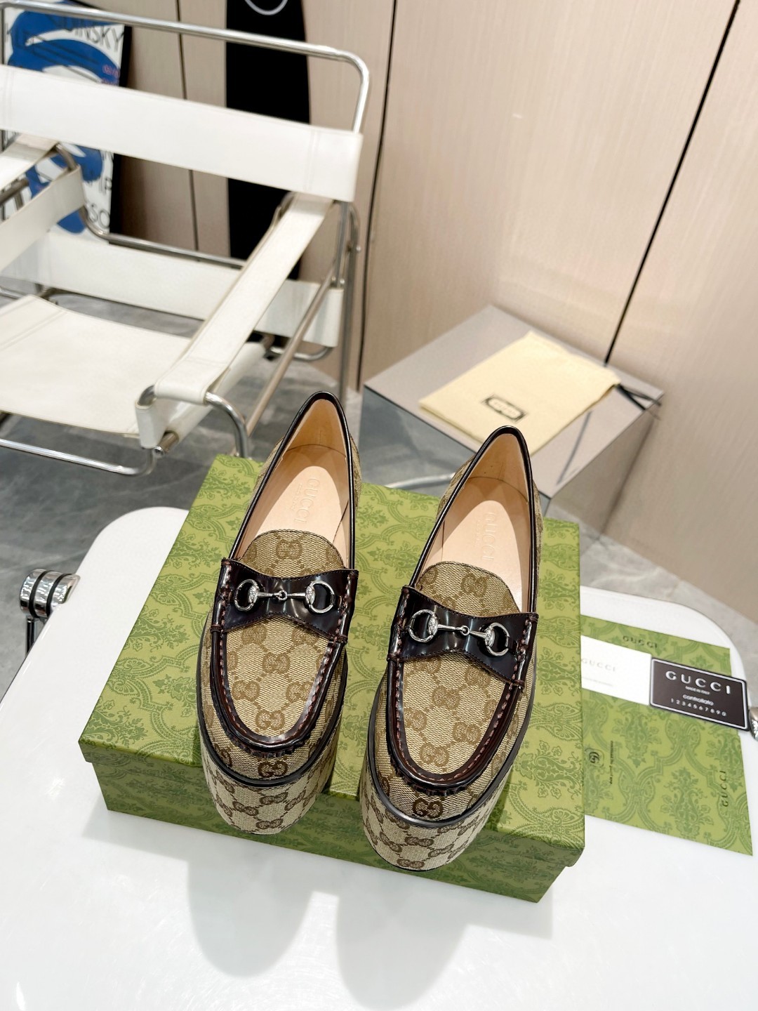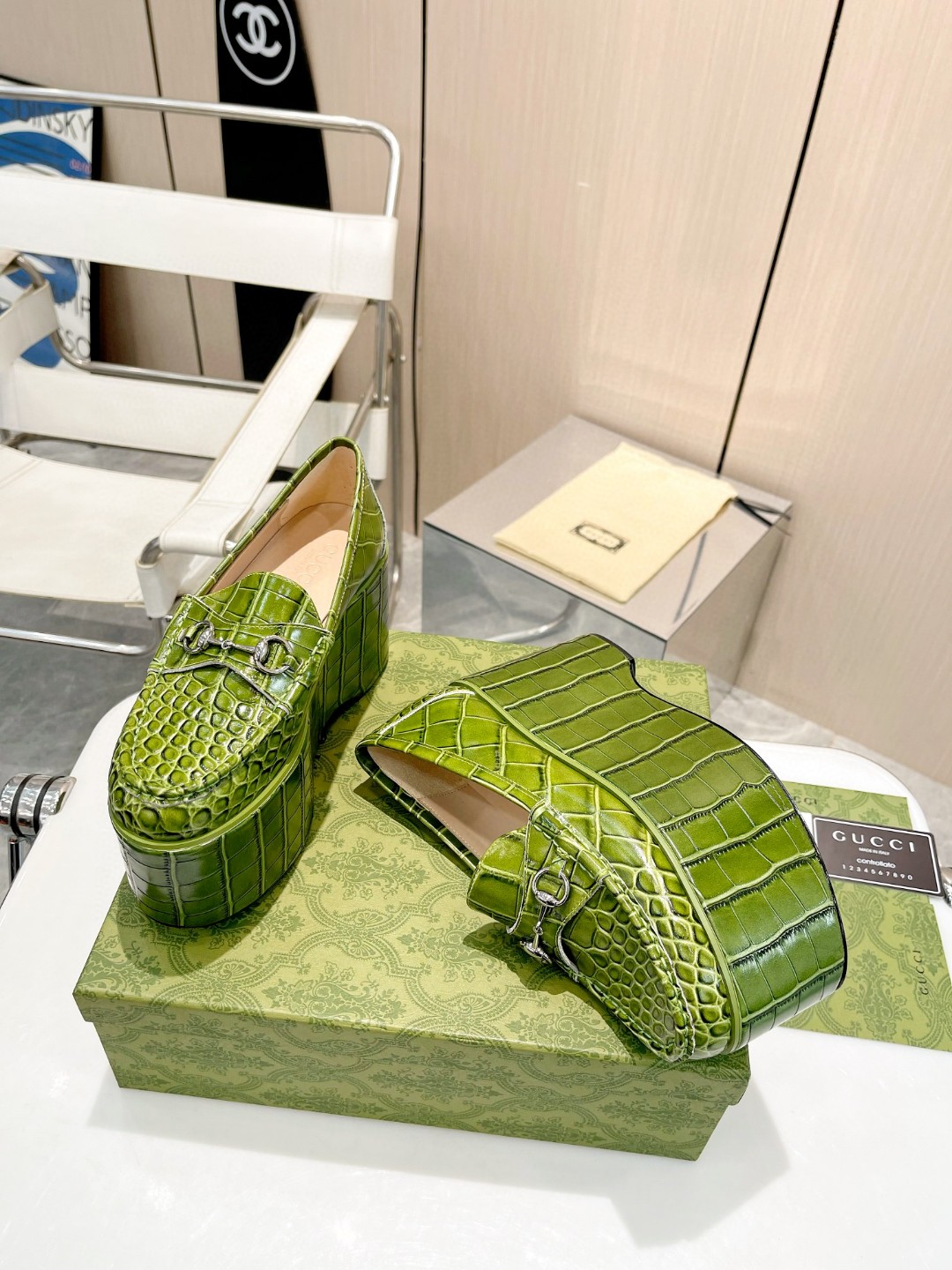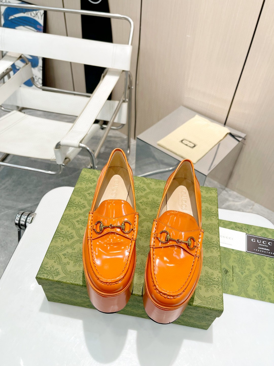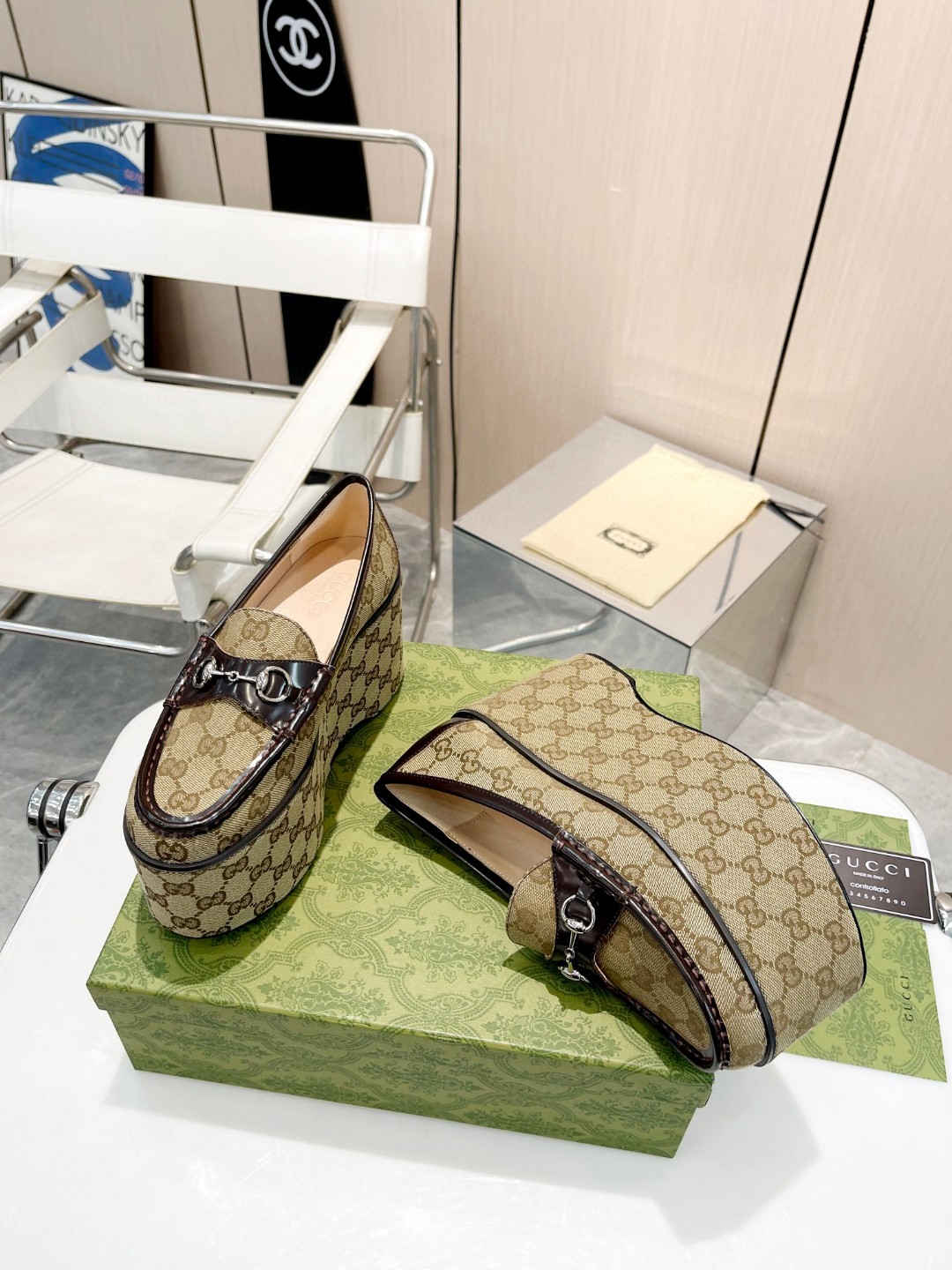 NIGO Gucci Horsebit Women's Solid Colour Cow Leather Horsebit 9cm Thick Sole Loafers Shoes #nigo99234