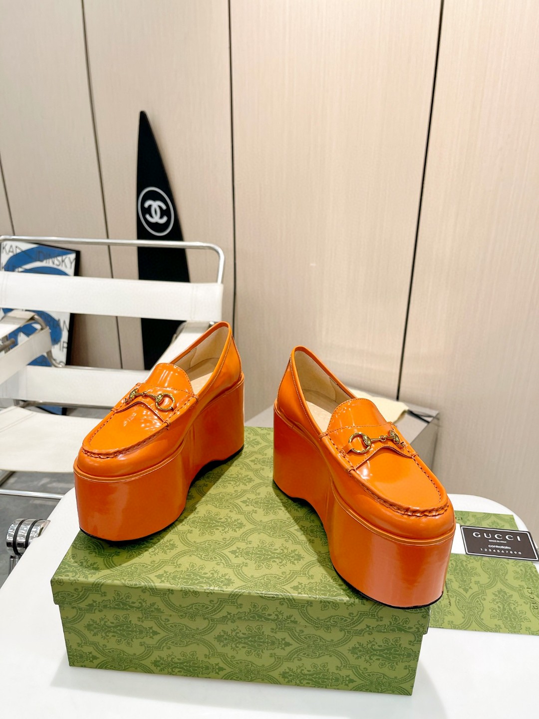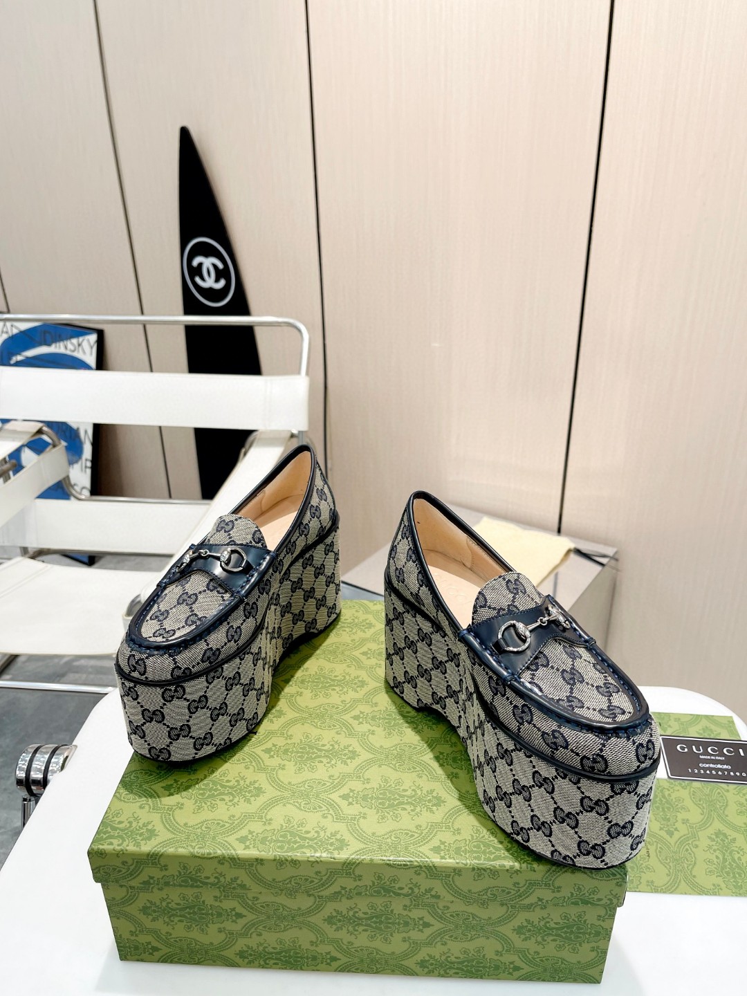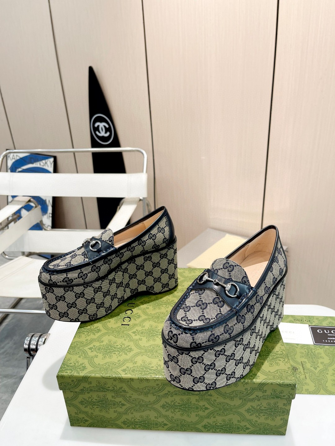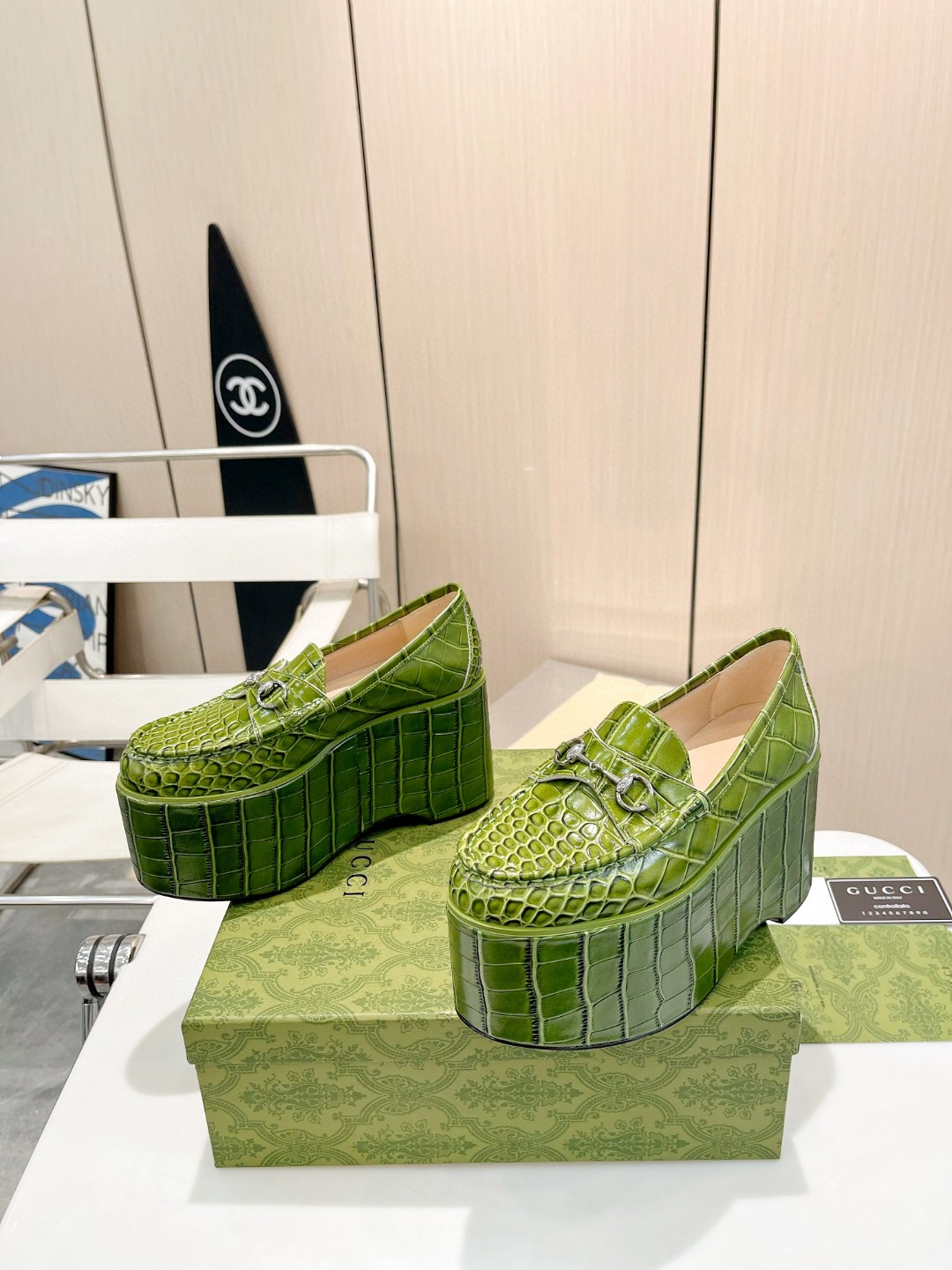 NIGO Gucci Horsebit Women's Solid Colour Cow Leather Horsebit 9cm Thick Sole Loafers Shoes #nigo99234