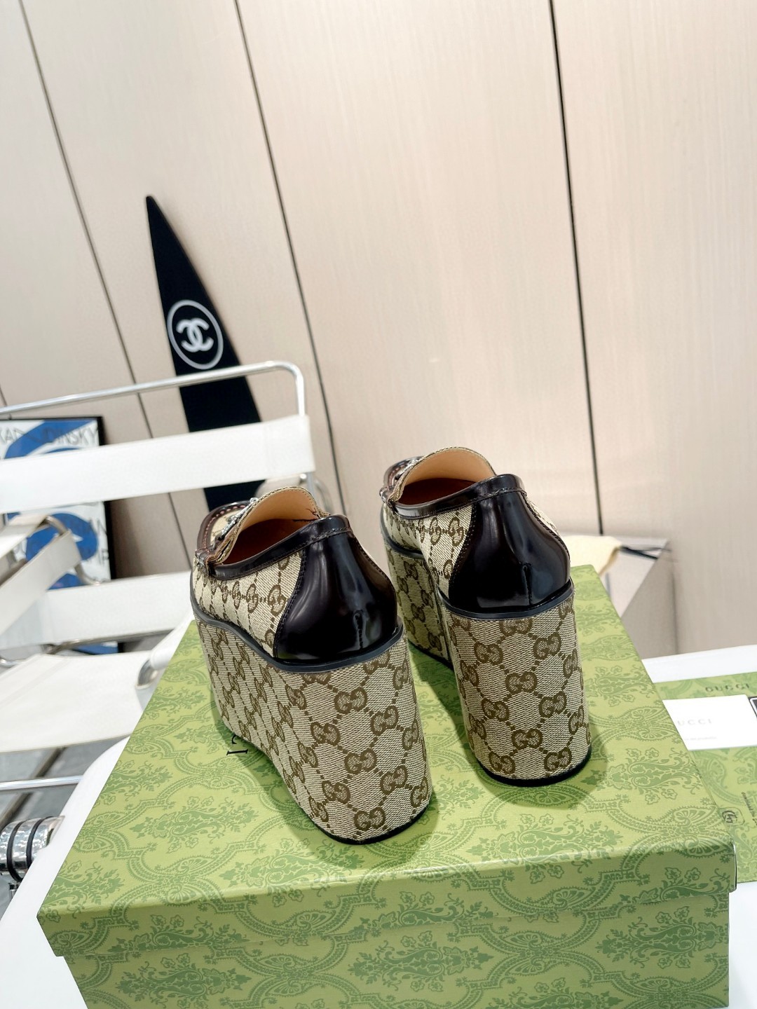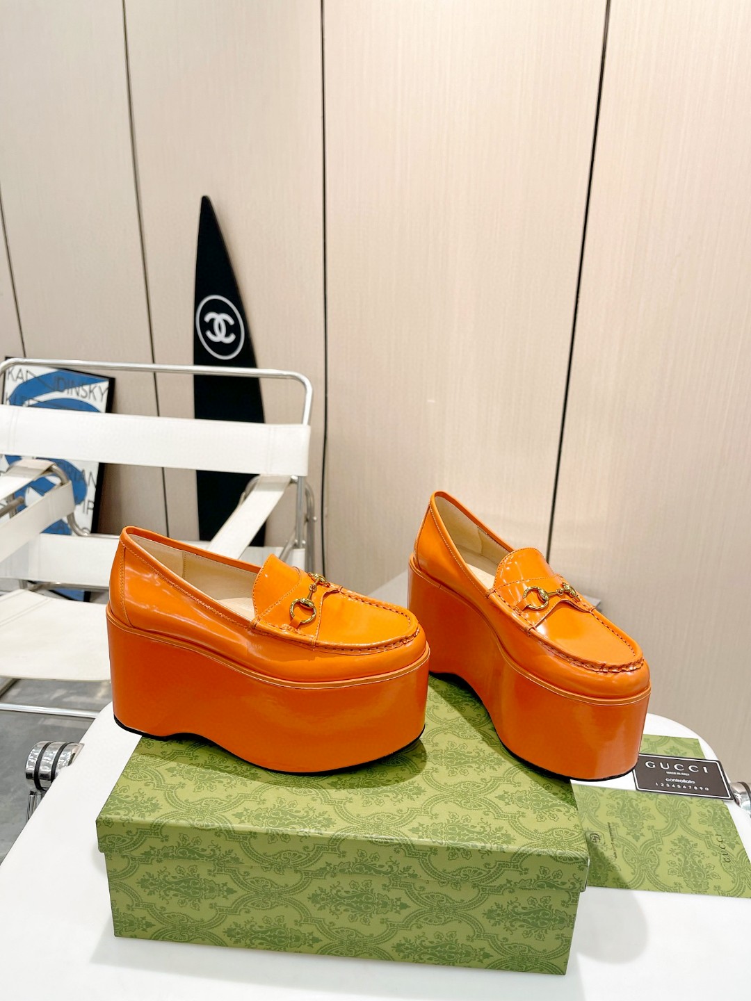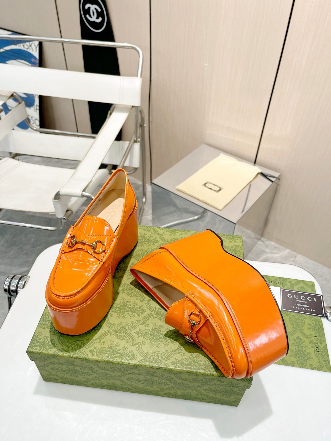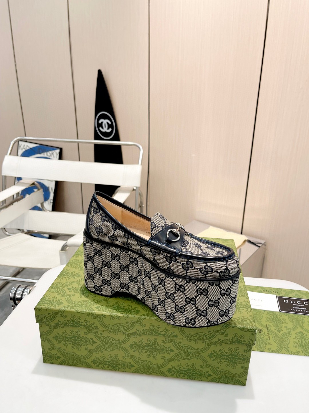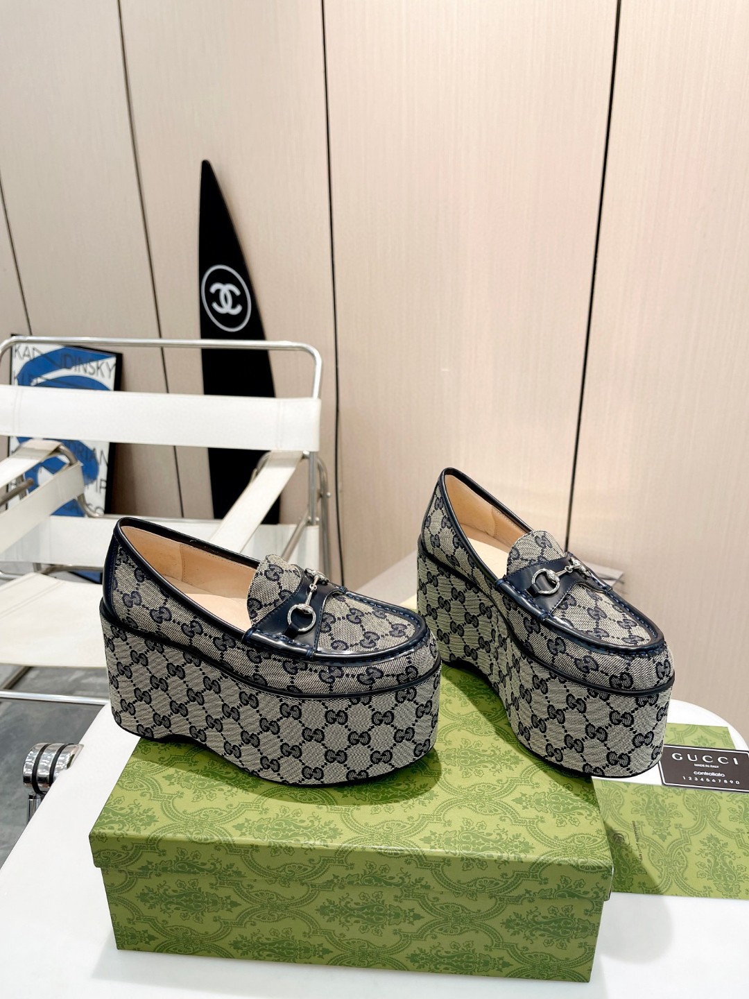 NIGO Gucci Horsebit Women's Solid Colour Cow Leather Horsebit 9cm Thick Sole Loafers Shoes #nigo99234