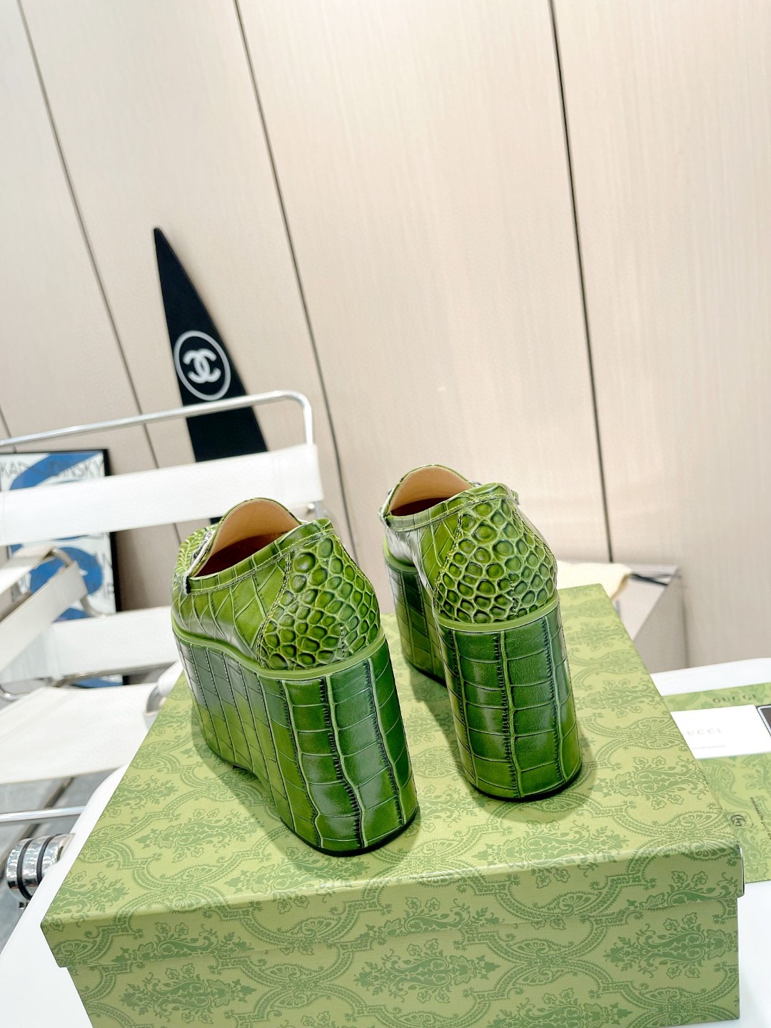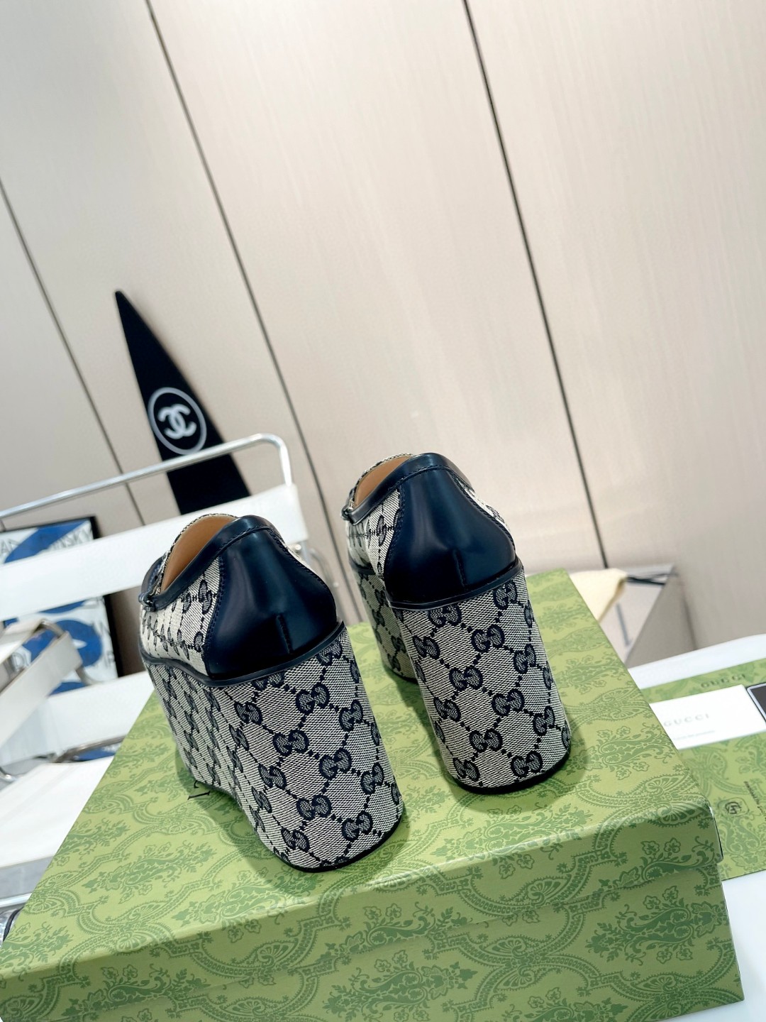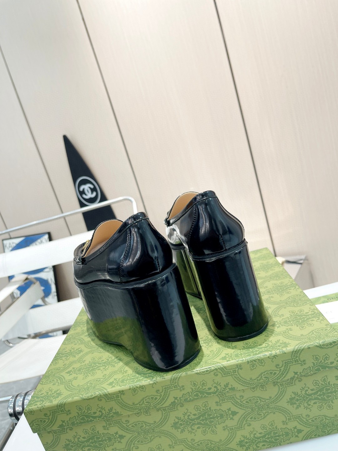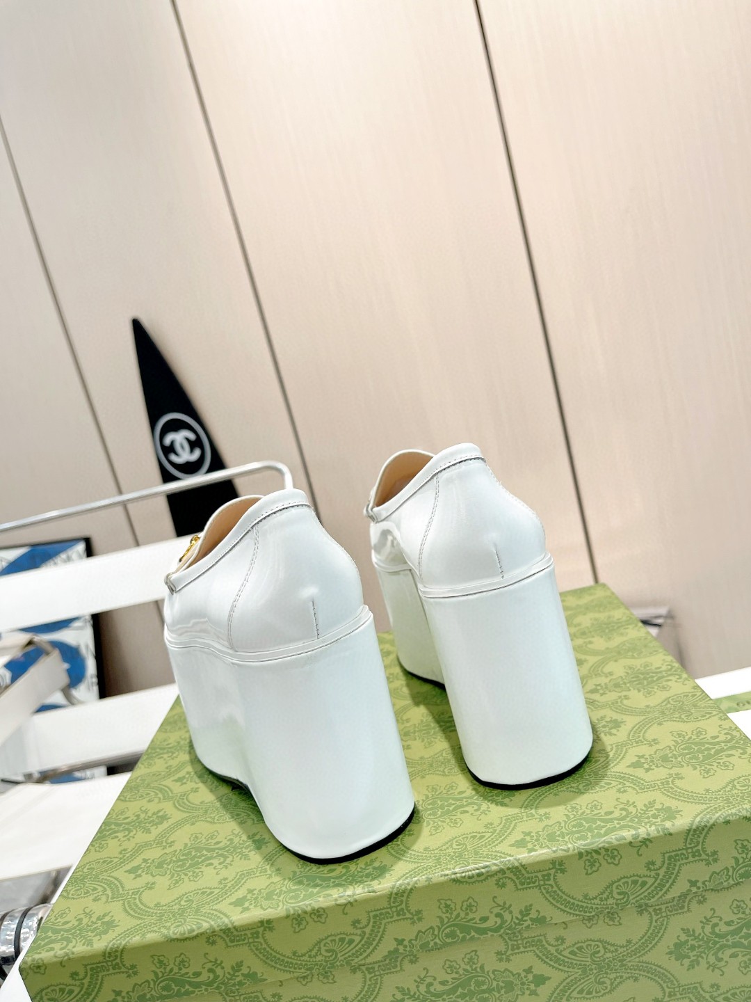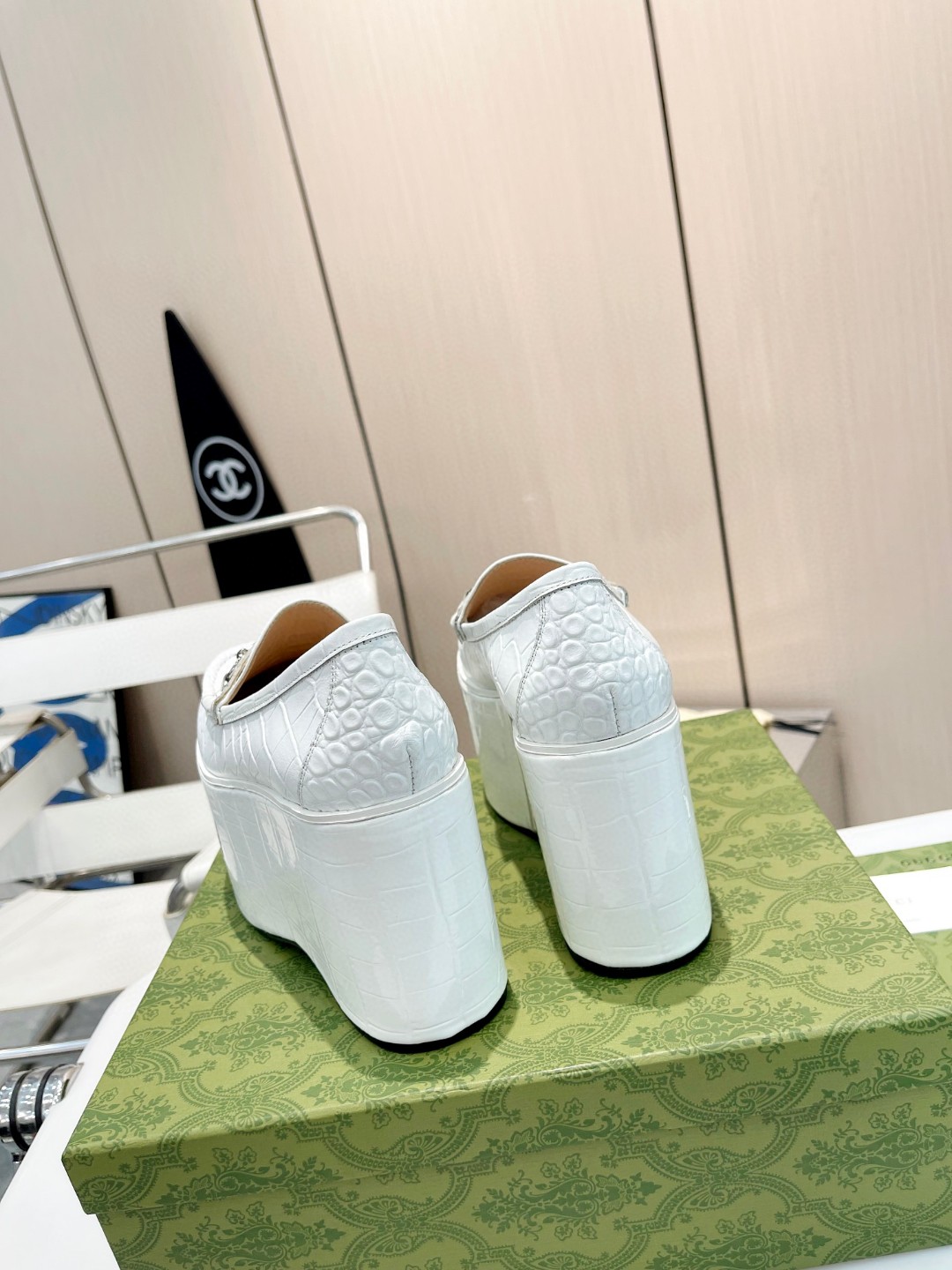 NIGO Gucci Horsebit Women's Solid Colour Cow Leather Horsebit 9cm Thick Sole Loafers Shoes #nigo99234