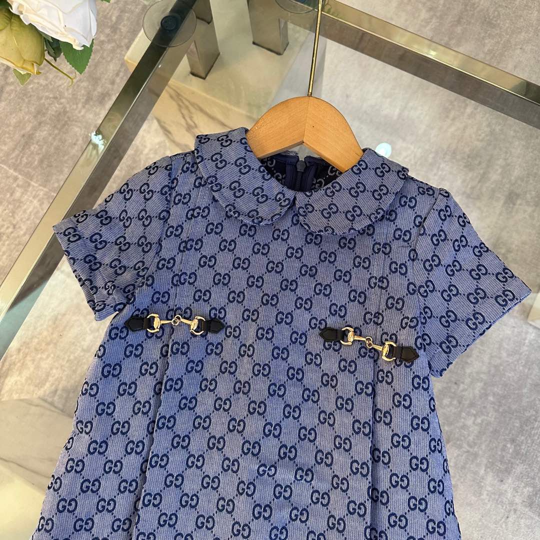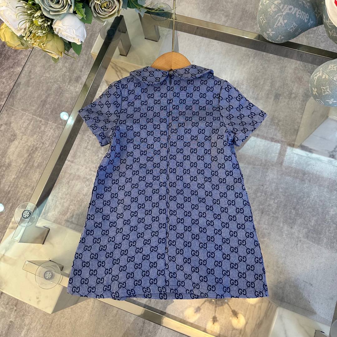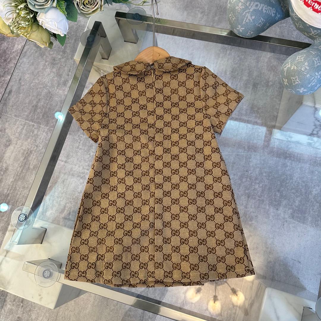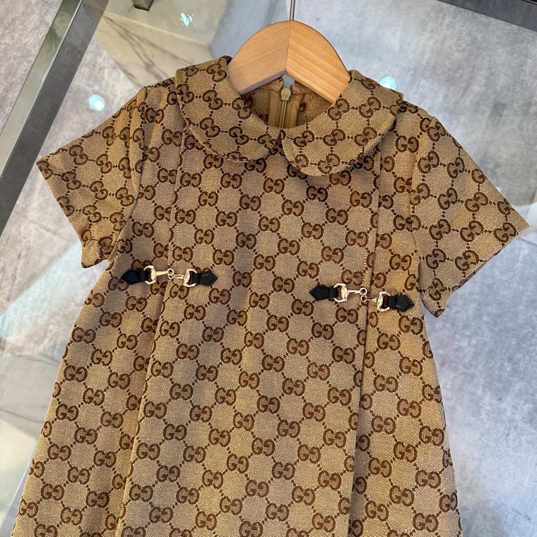 NIGO Gucci Kid's Summer GG Full Print Doll Neck Short Sleeve Cotton Dresses #nigo31361