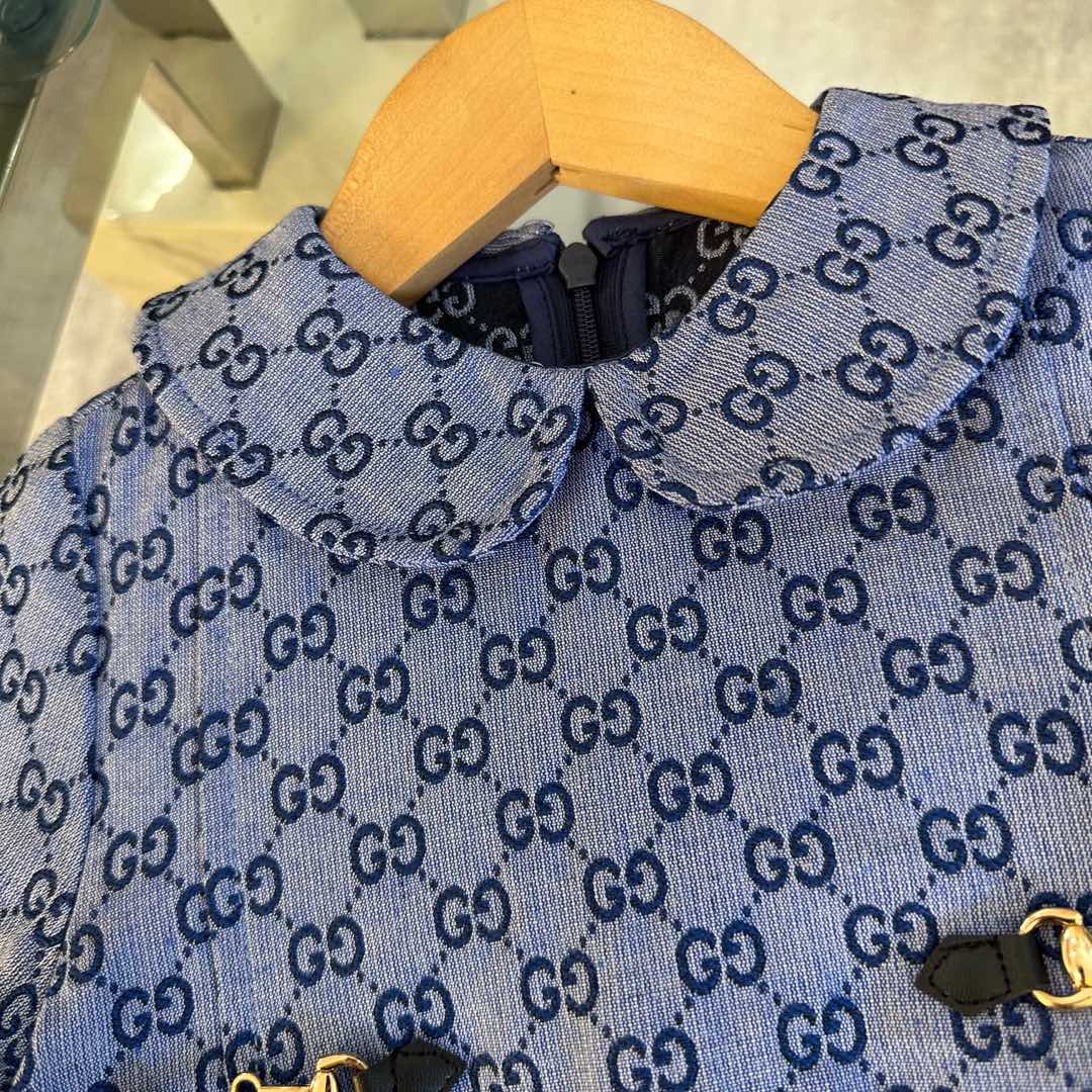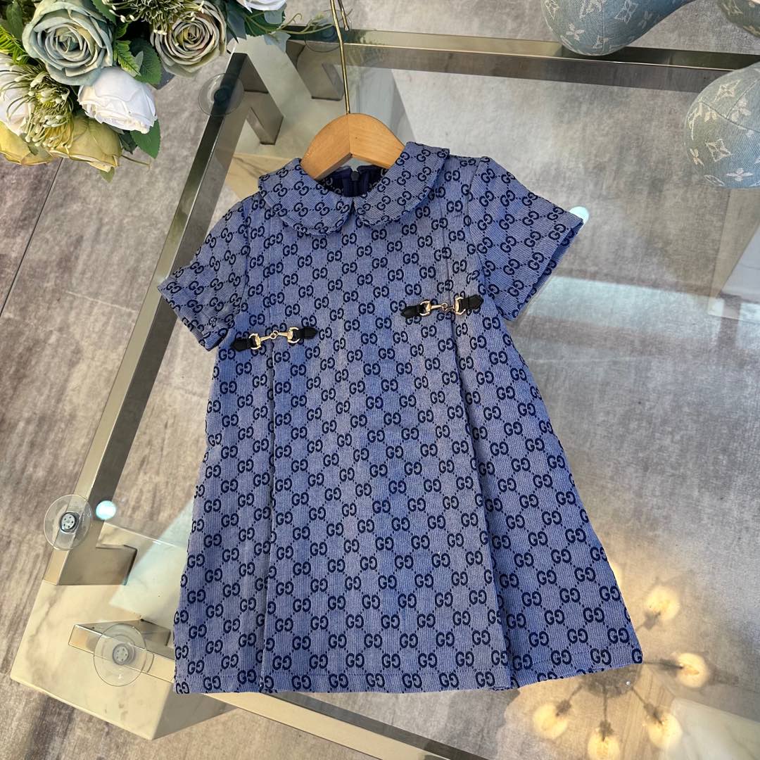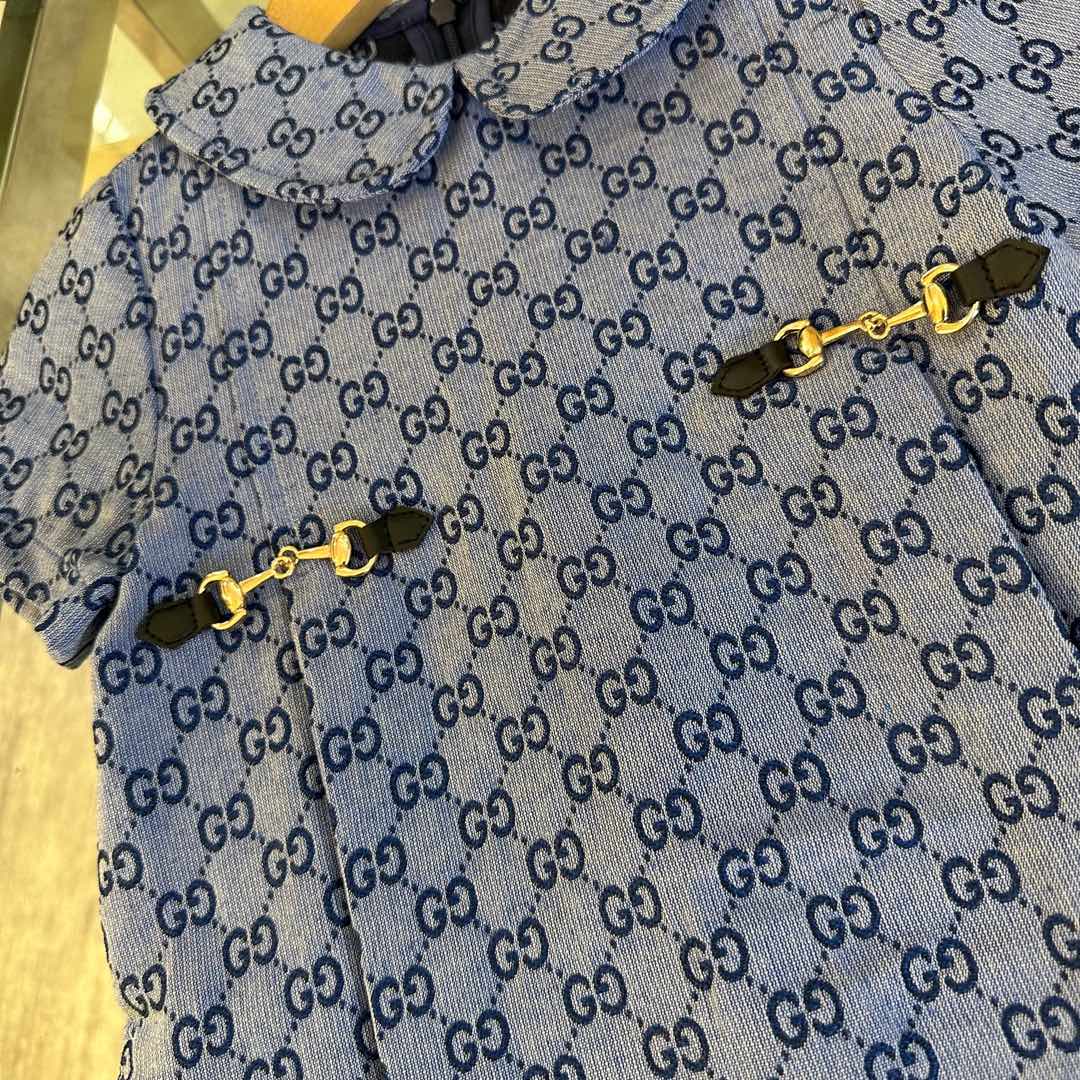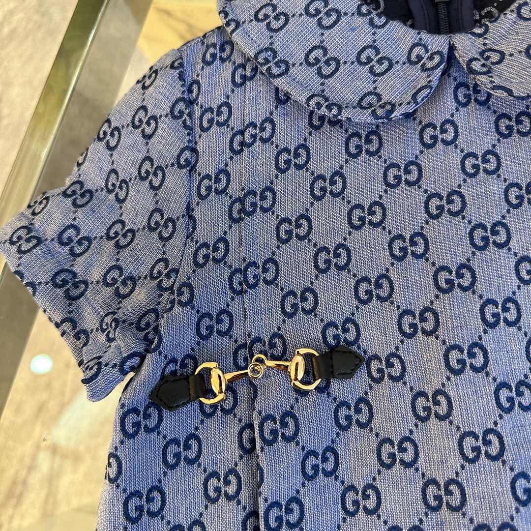 NIGO Gucci Kid's Summer GG Full Print Doll Neck Short Sleeve Cotton Dresses #nigo31361