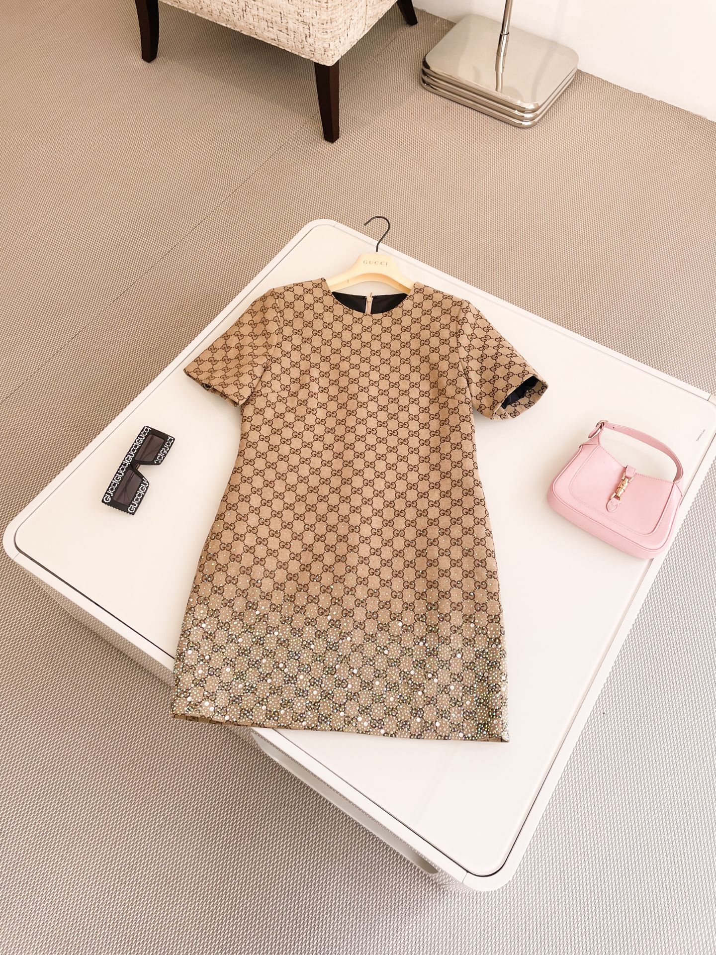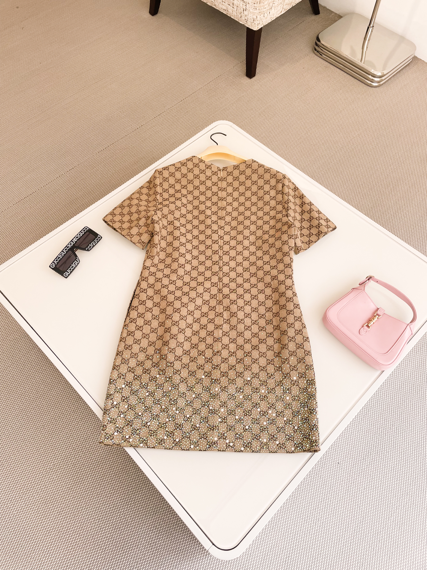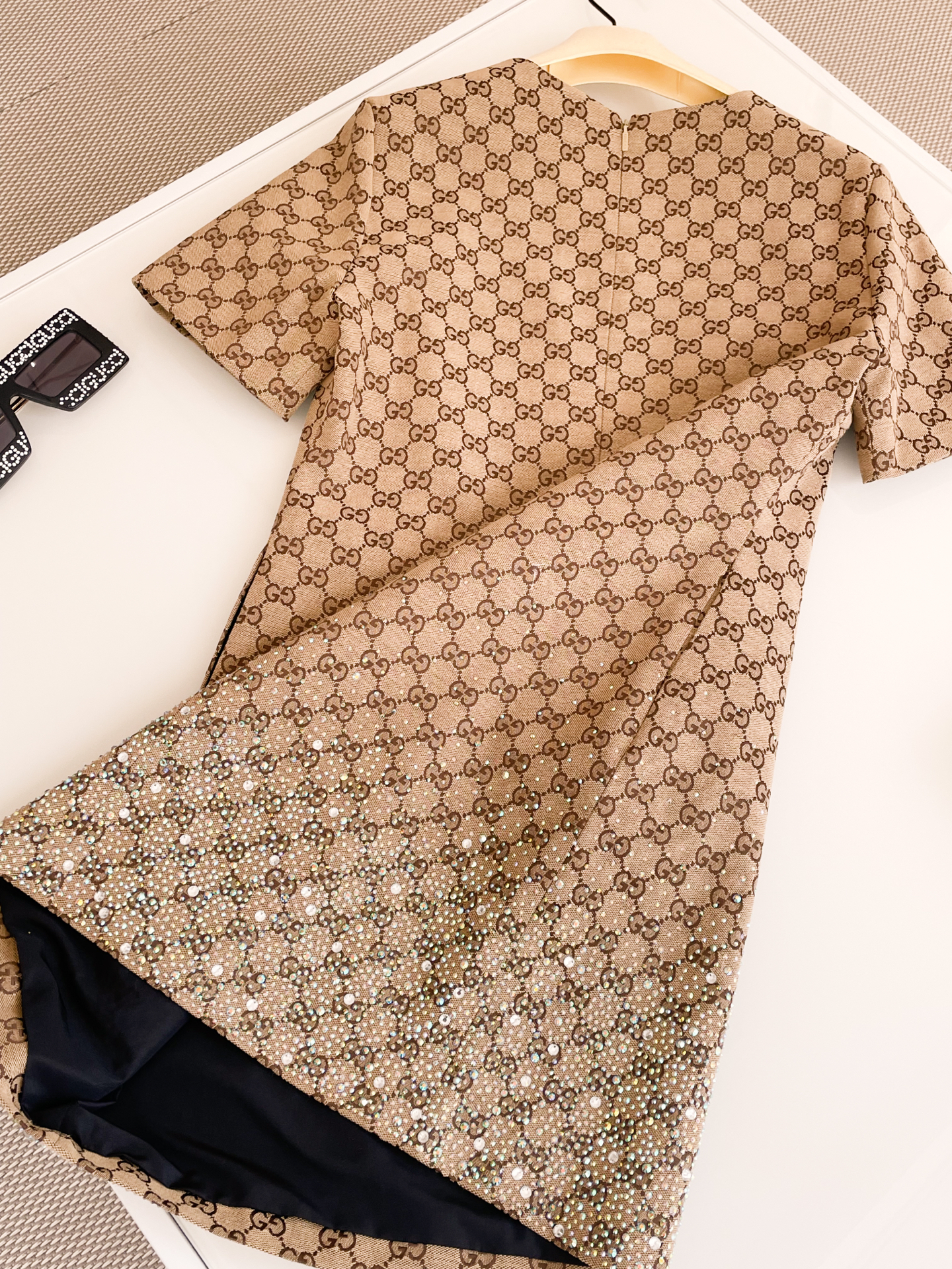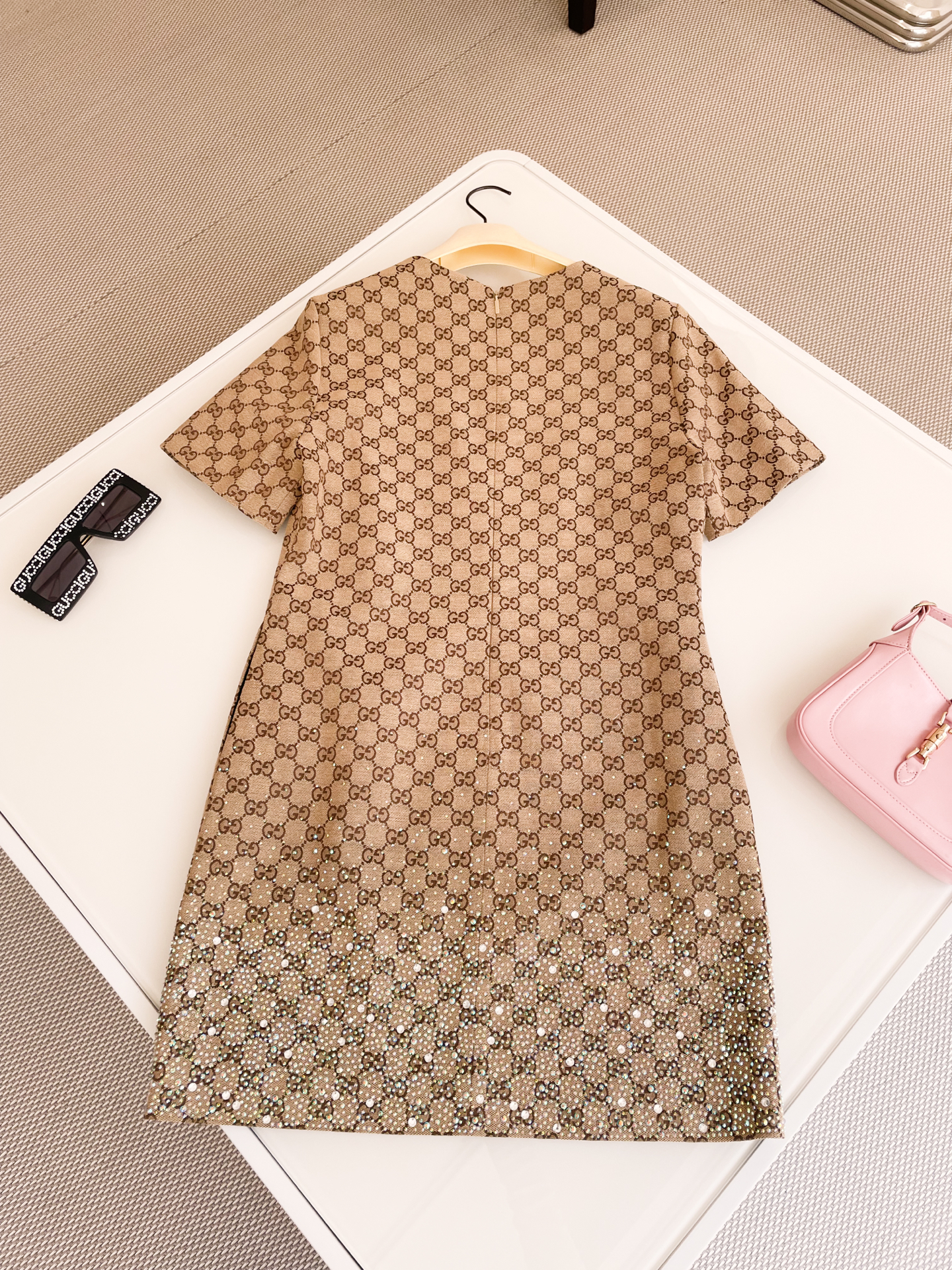 NIGO Gucci Ladies Spring And Summer Embroidery GG Canvas Rhinestone Gradient Dress Fashion Slim Temperament Elegant Short Dresses #nigo71862