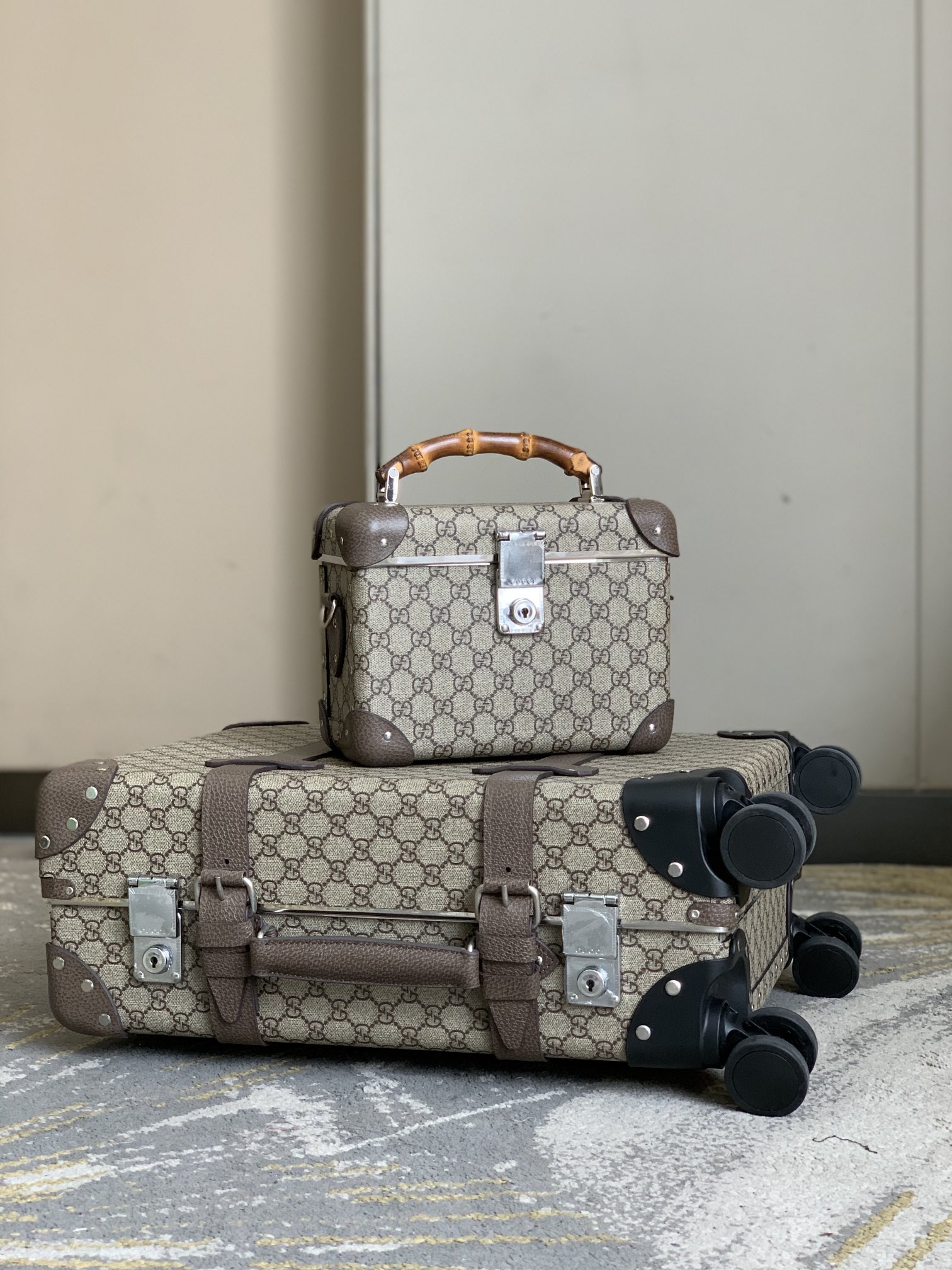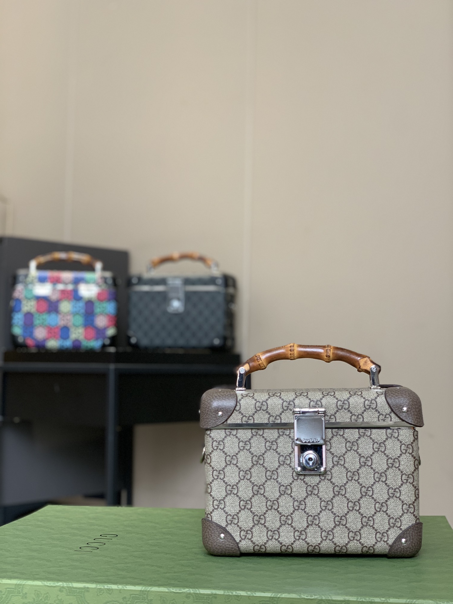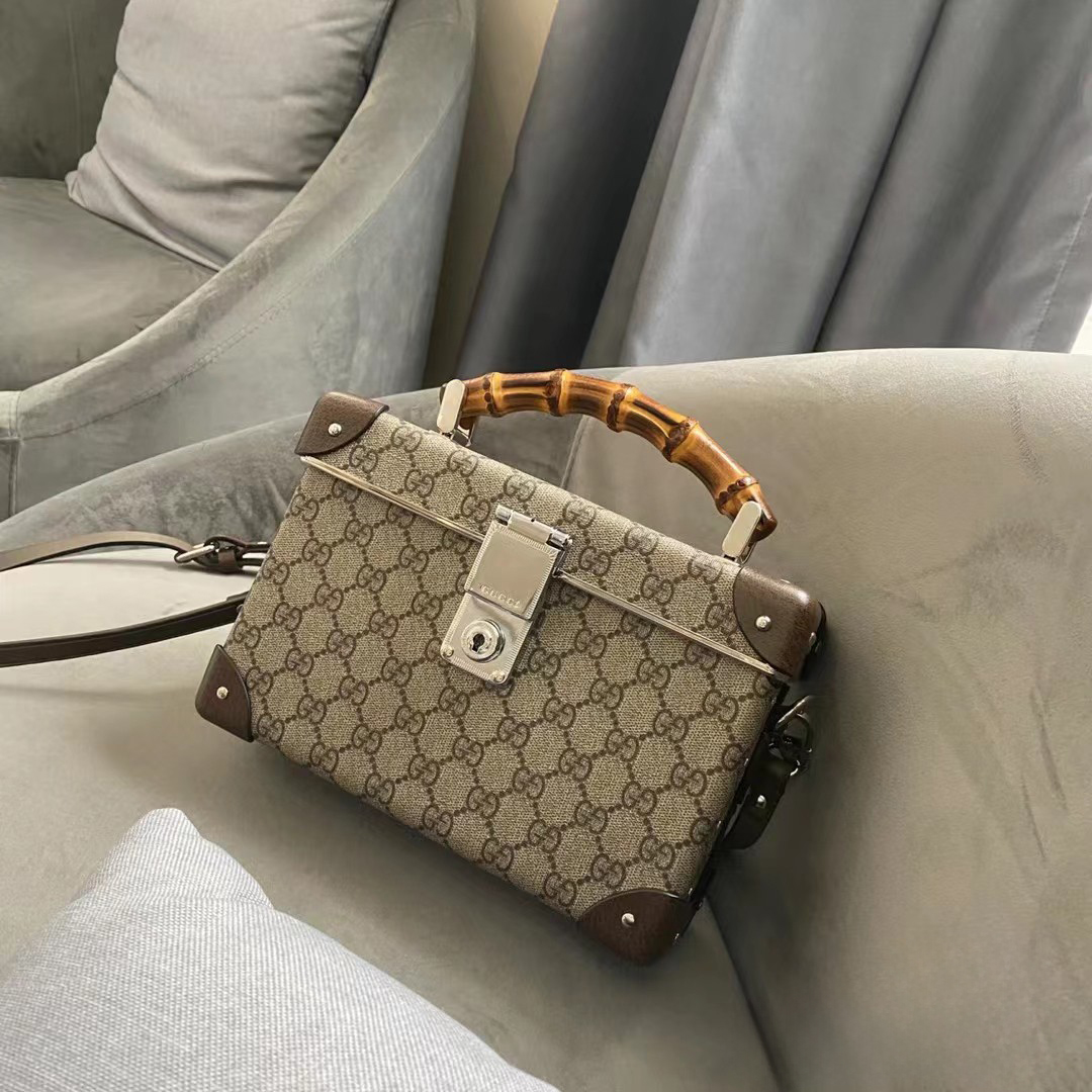 NIGO Gucci Logo Canvas Handbag Fashionable Bamboo Handle Makeup Box Crossbody Bag Bags #nigo71281