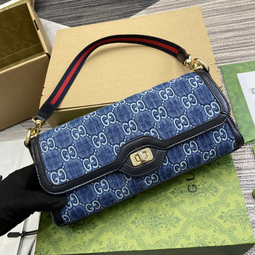 NIGO Gucci Luce Women's Blue Detachable Shoulder Strap Swivel Zipper Closure Denim Shoulder Crossbody Bag Bags #nigo99712