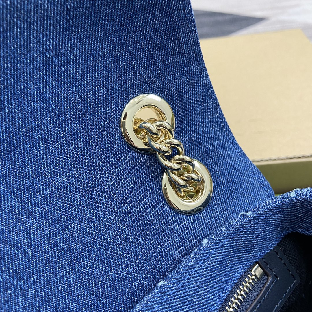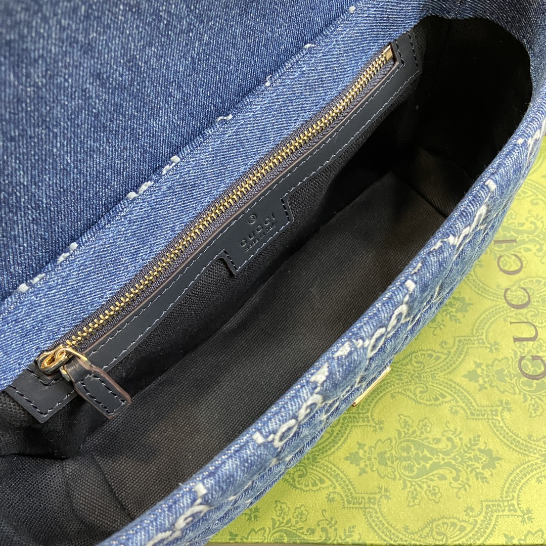 NIGO Gucci Marmont Women's Blue Double G Logo Sliding Chain Crystal Embroidered Denim Tote Shoulder Crossbody Bag Bags #nigo99714
