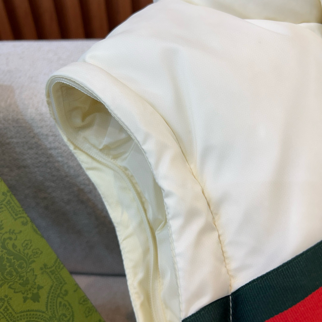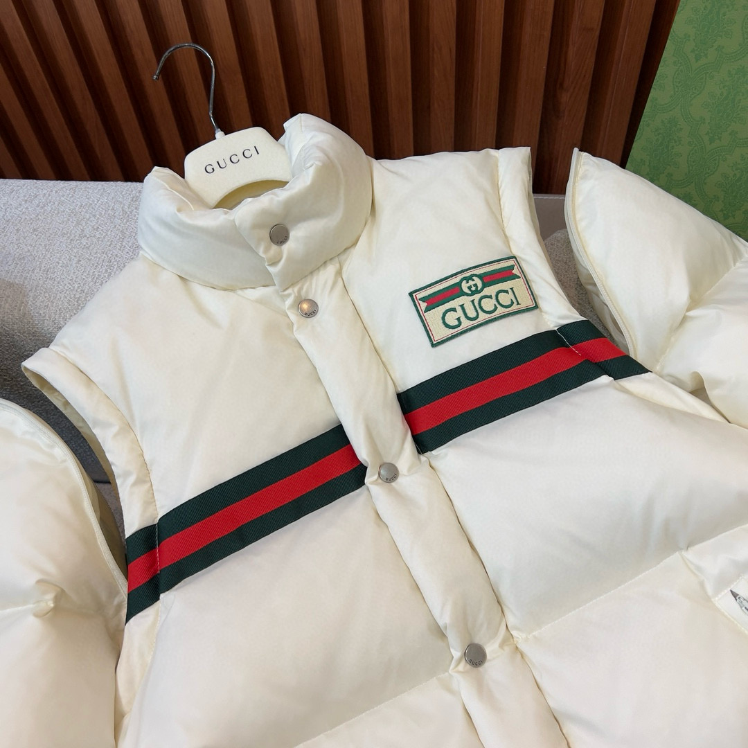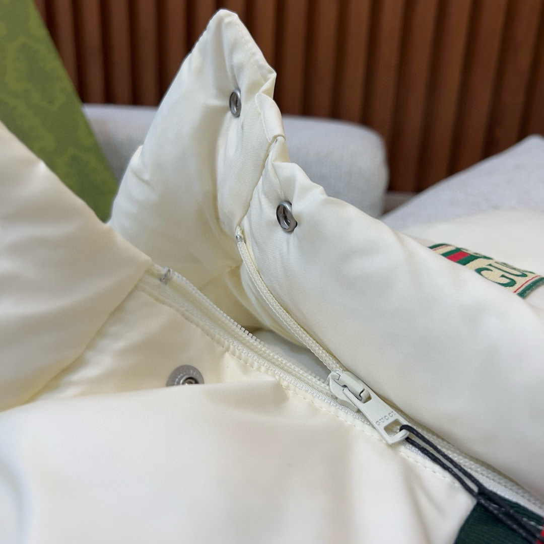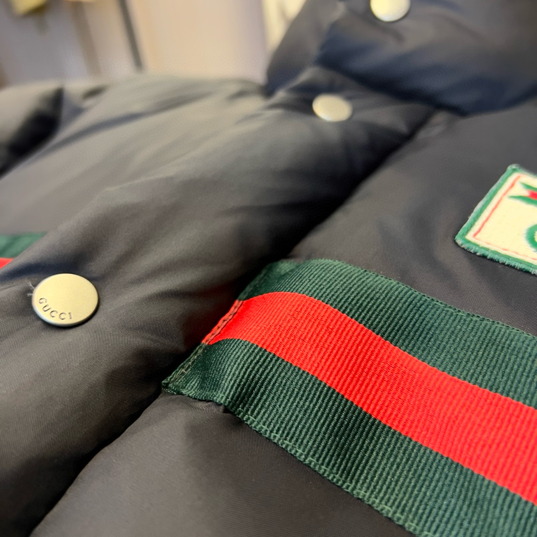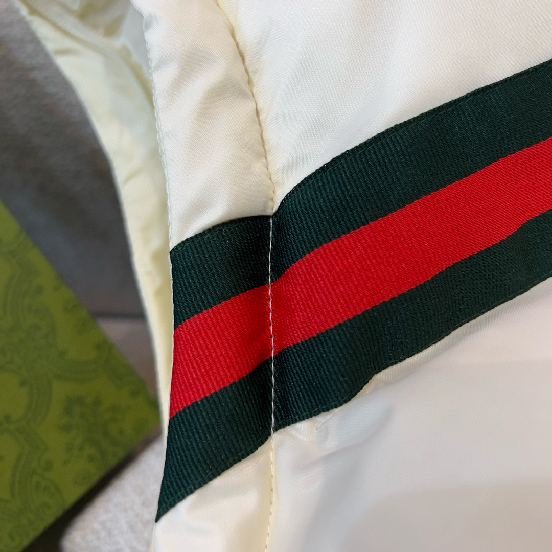 NIGO Gucci Men's And Women's Winter Fashion Casual High Neck Single Button Red Green Striped Webbing Contrast Collar Detachable Sleeves Down Jacket #nigo79374