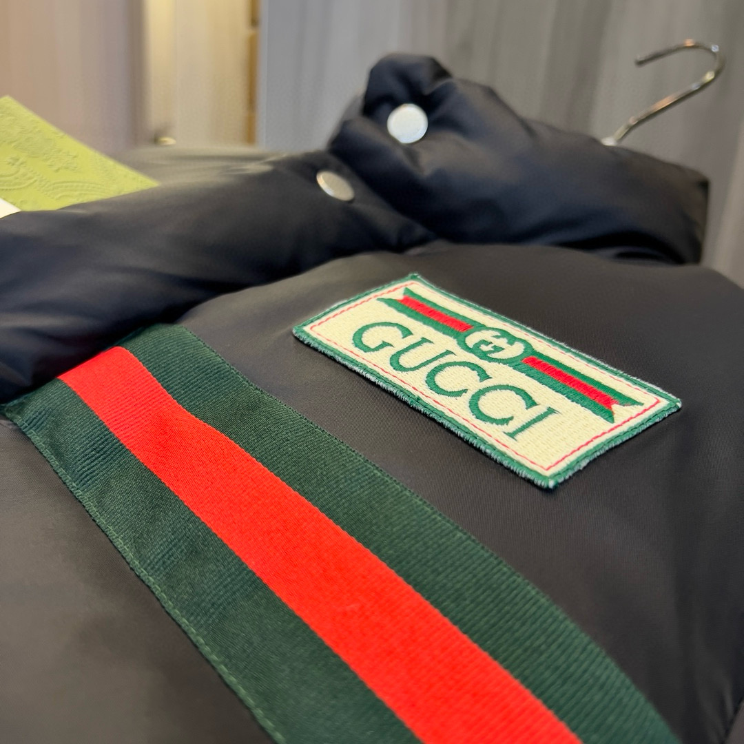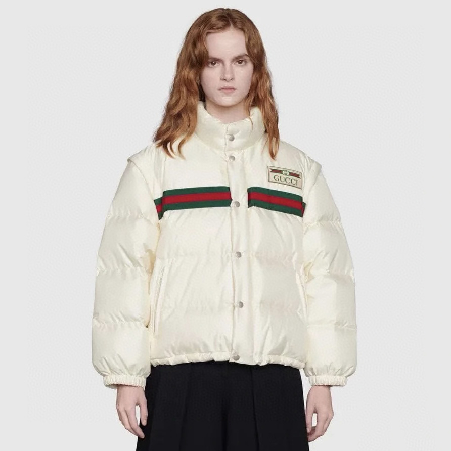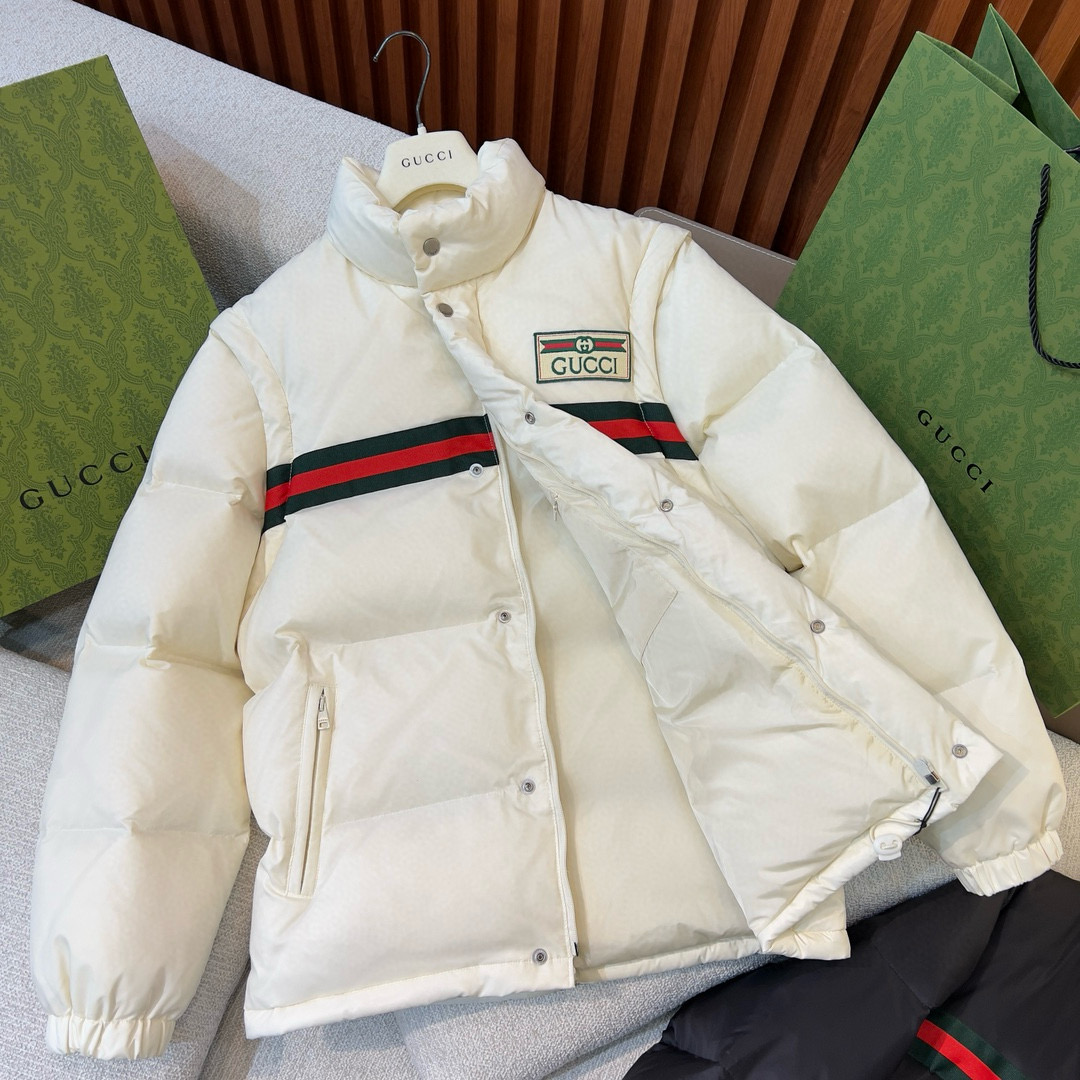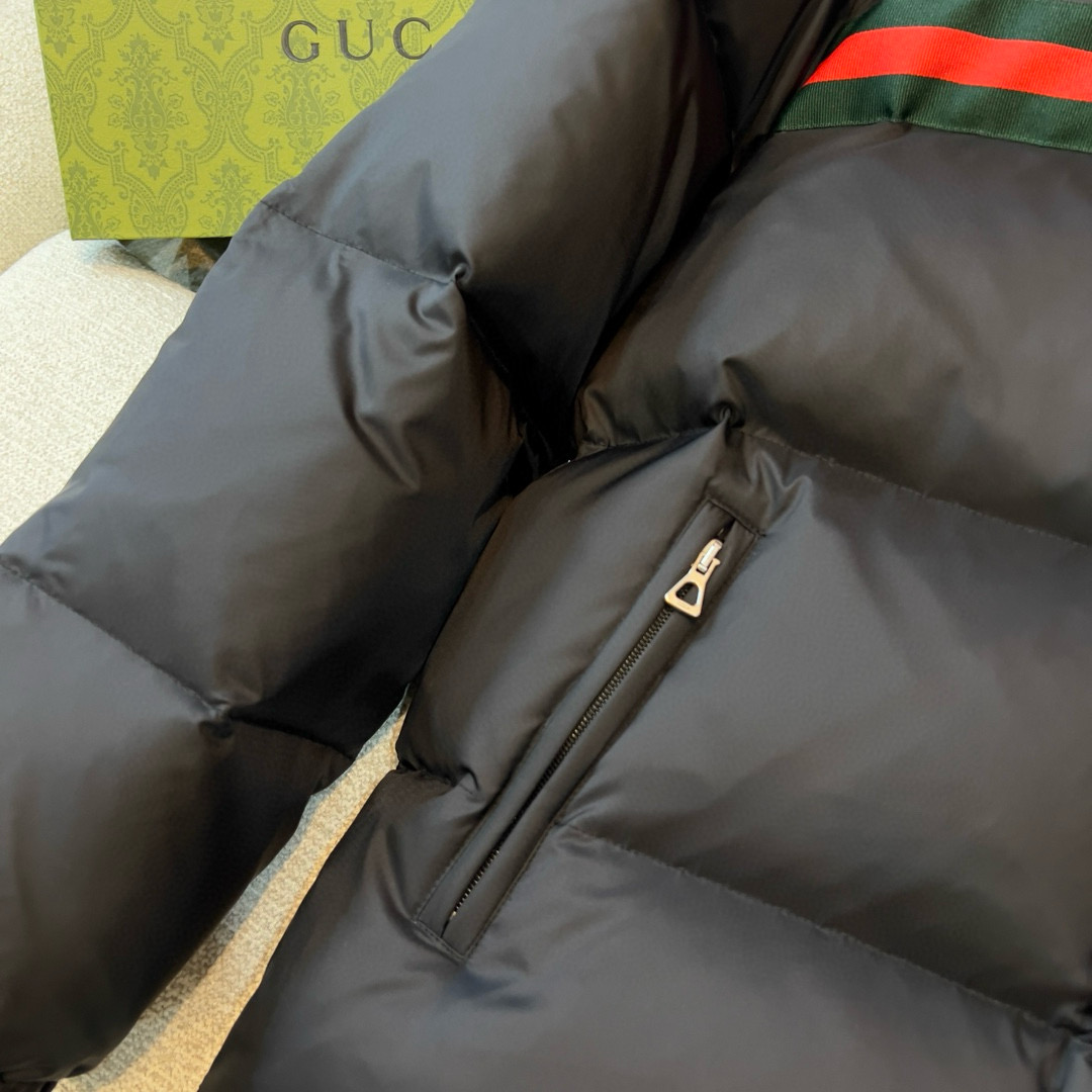 NIGO Gucci Men's And Women's Winter Fashion Casual High Neck Single Button Red Green Striped Webbing Contrast Collar Detachable Sleeves Down Jacket #nigo79374