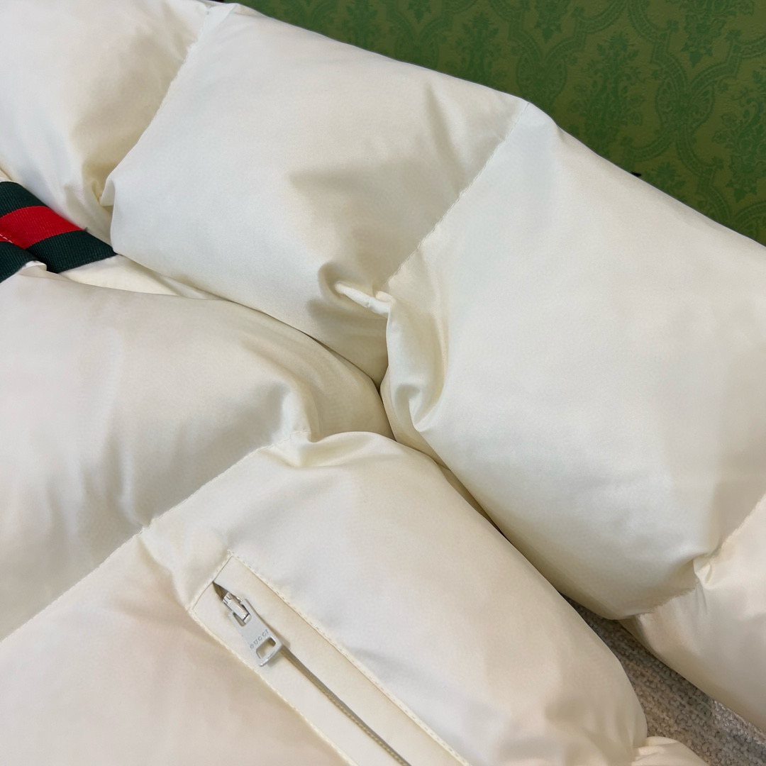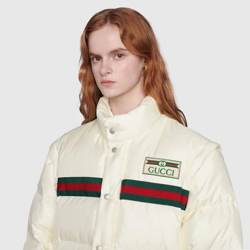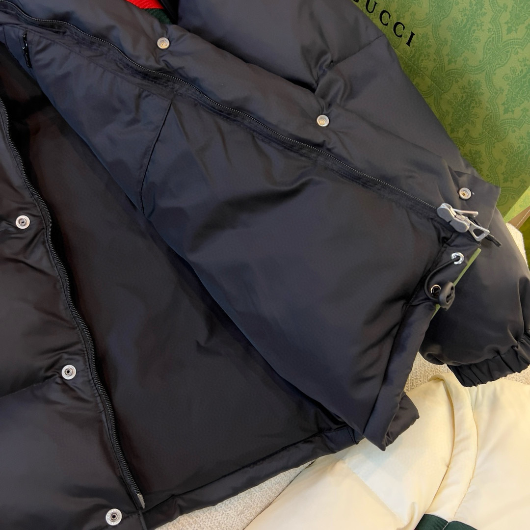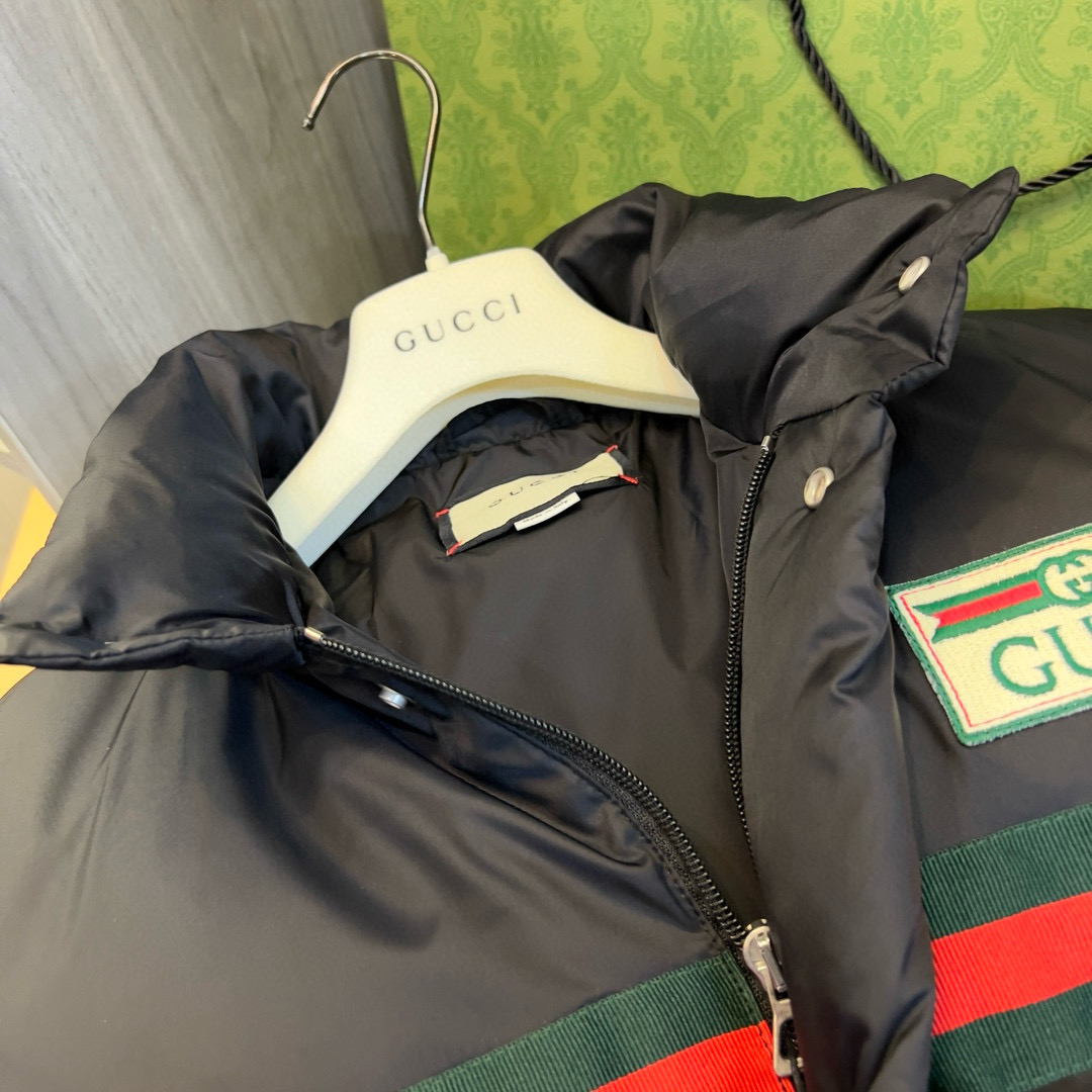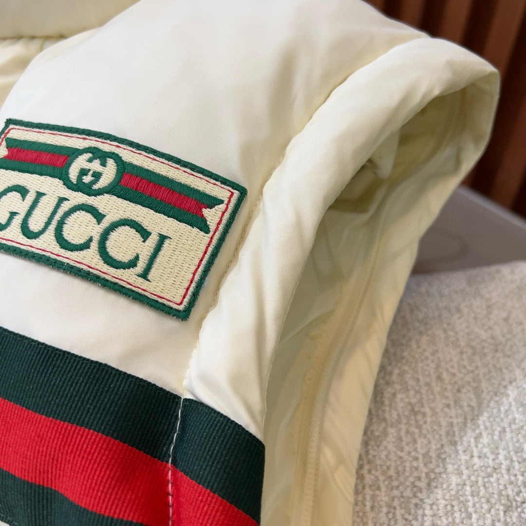 NIGO Gucci Men's And Women's Winter Fashion Casual High Neck Single Button Red Green Striped Webbing Contrast Collar Detachable Sleeves Down Jacket #nigo79374