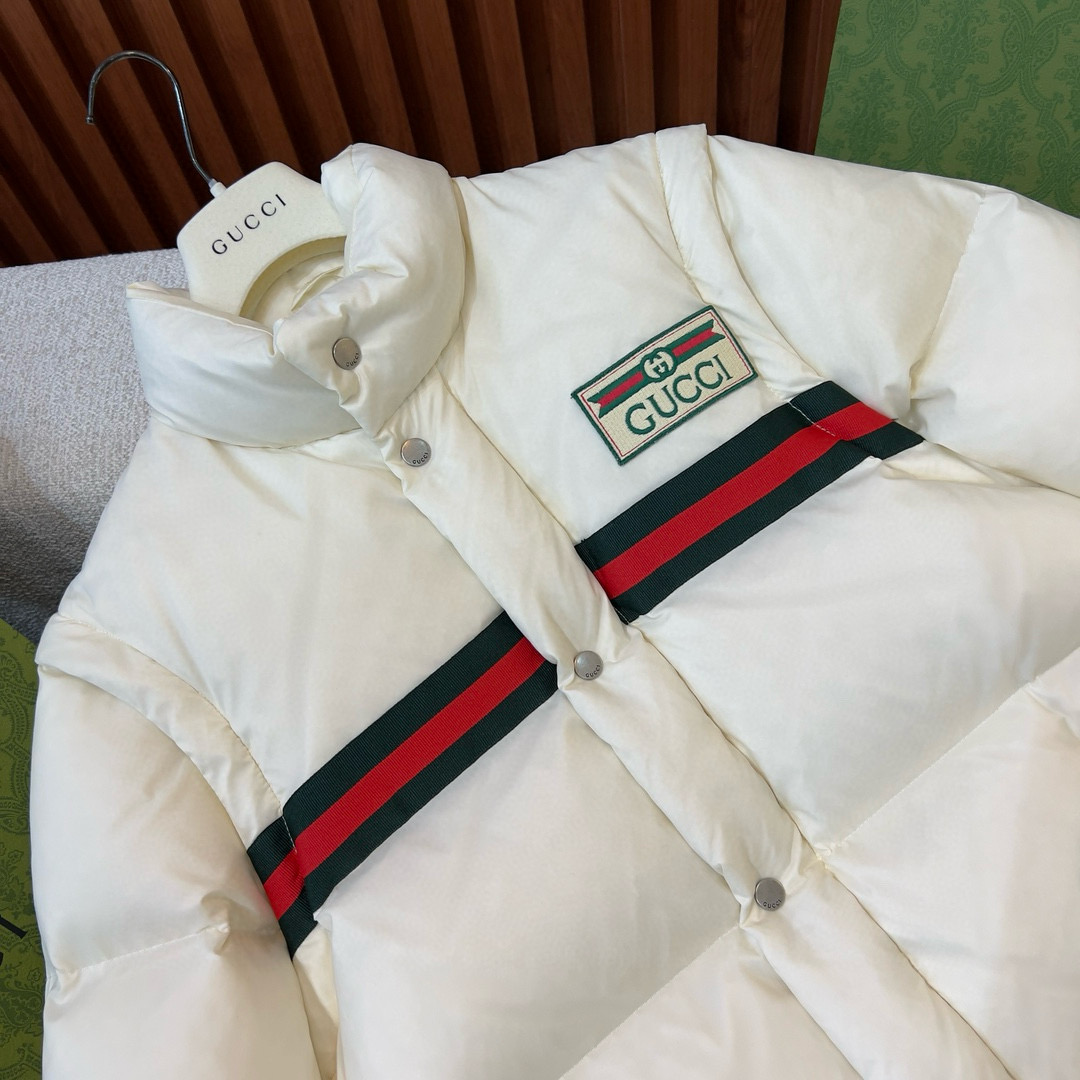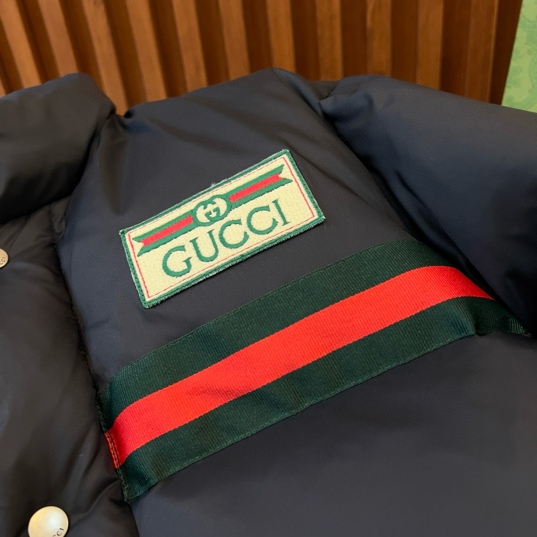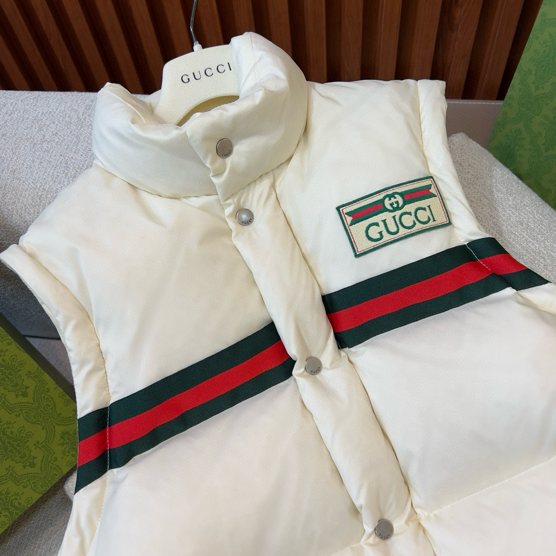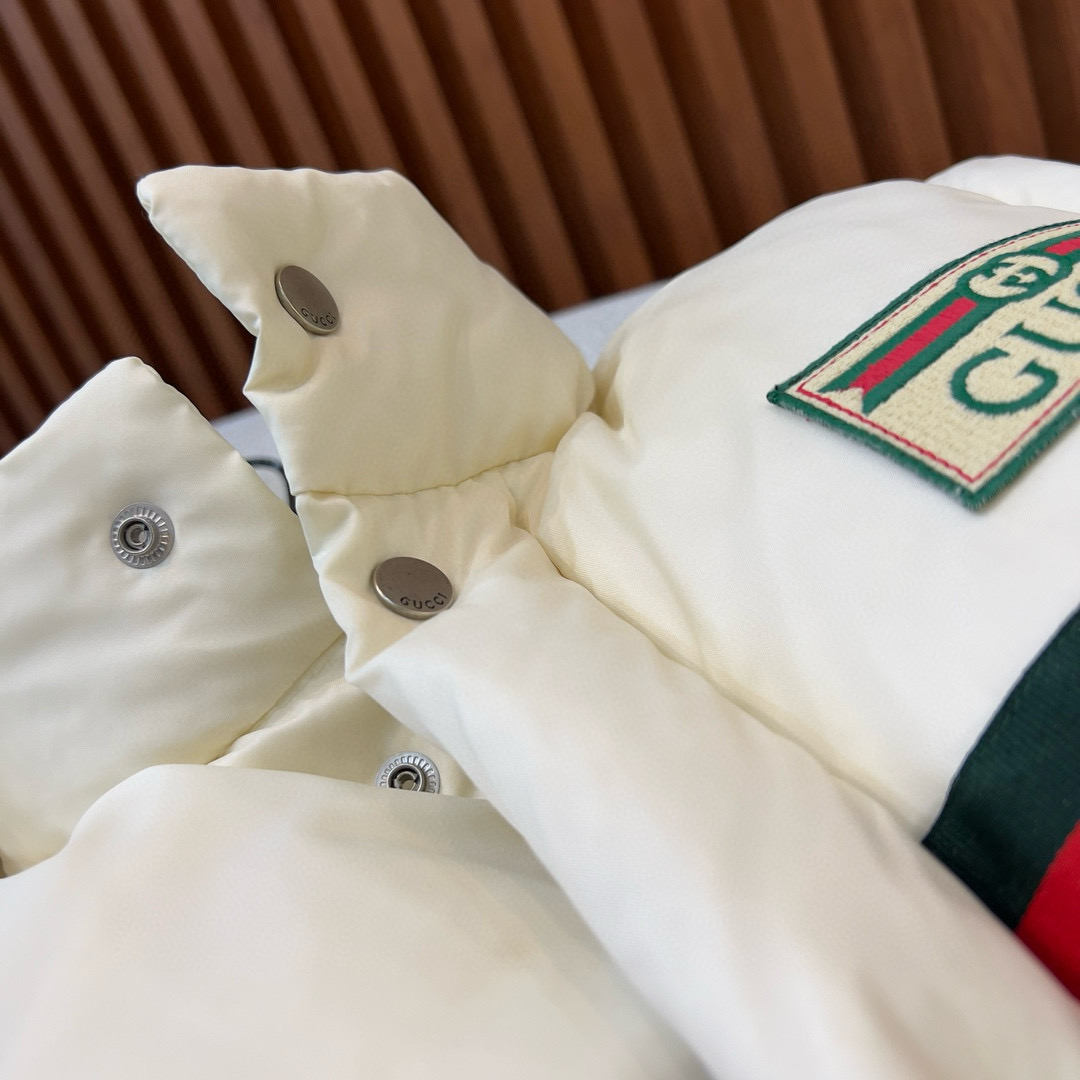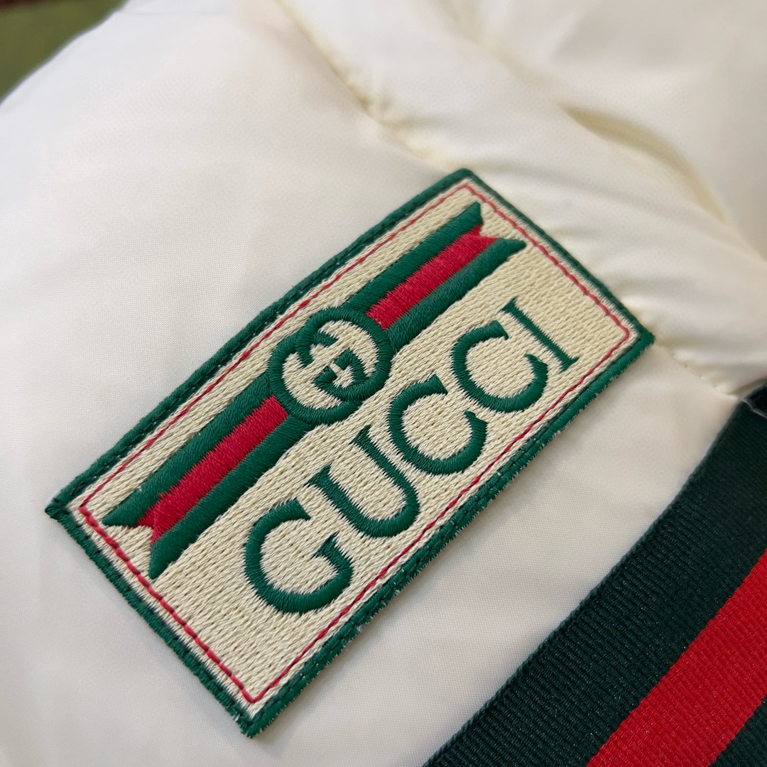 NIGO Gucci Men's And Women's Winter Fashion Casual High Neck Single Button Red Green Striped Webbing Contrast Collar Detachable Sleeves Down Jacket #nigo79374