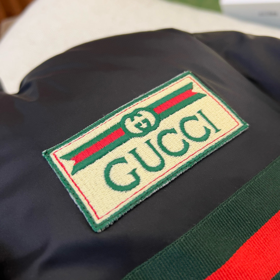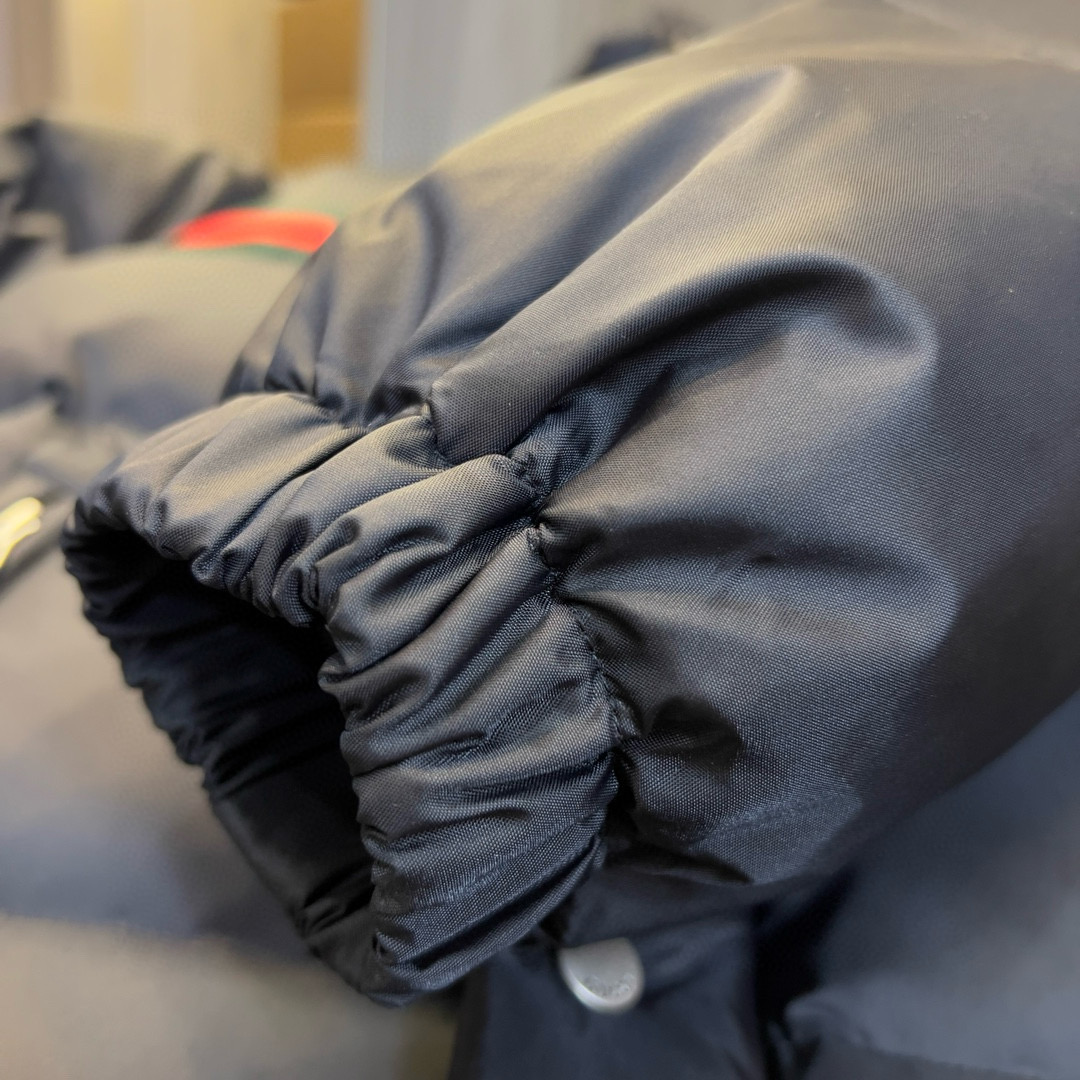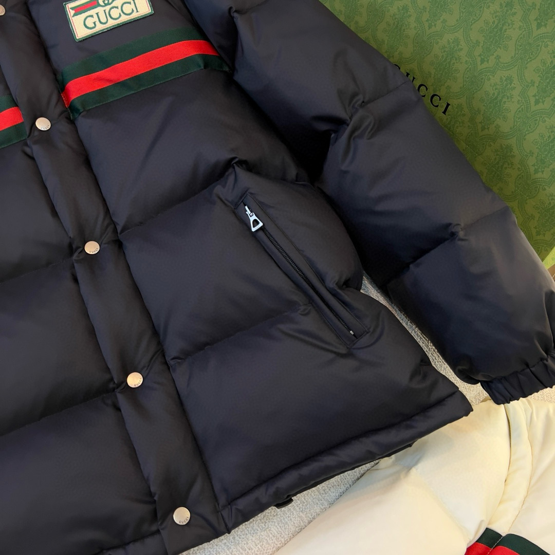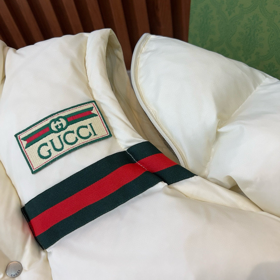 NIGO Gucci Men's And Women's Winter Fashion Casual High Neck Single Button Red Green Striped Webbing Contrast Collar Detachable Sleeves Down Jacket #nigo79374