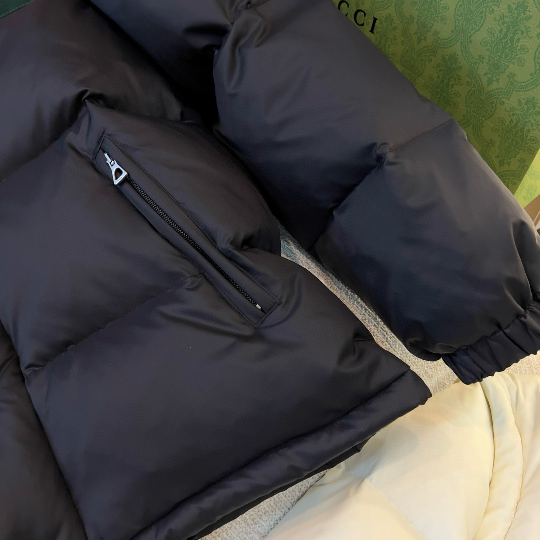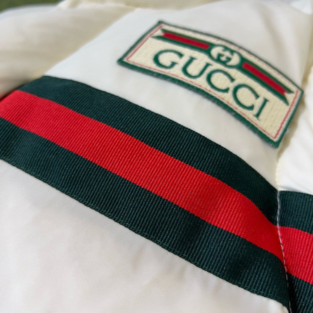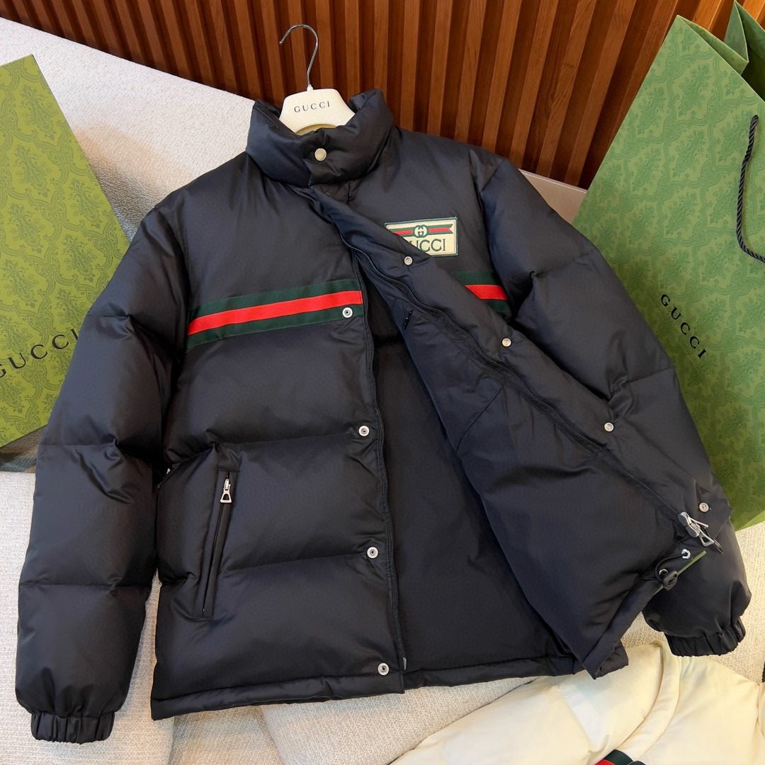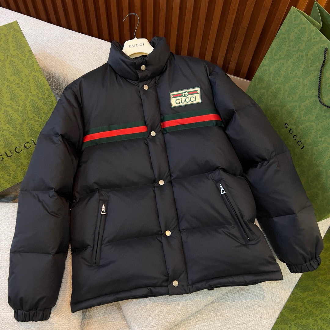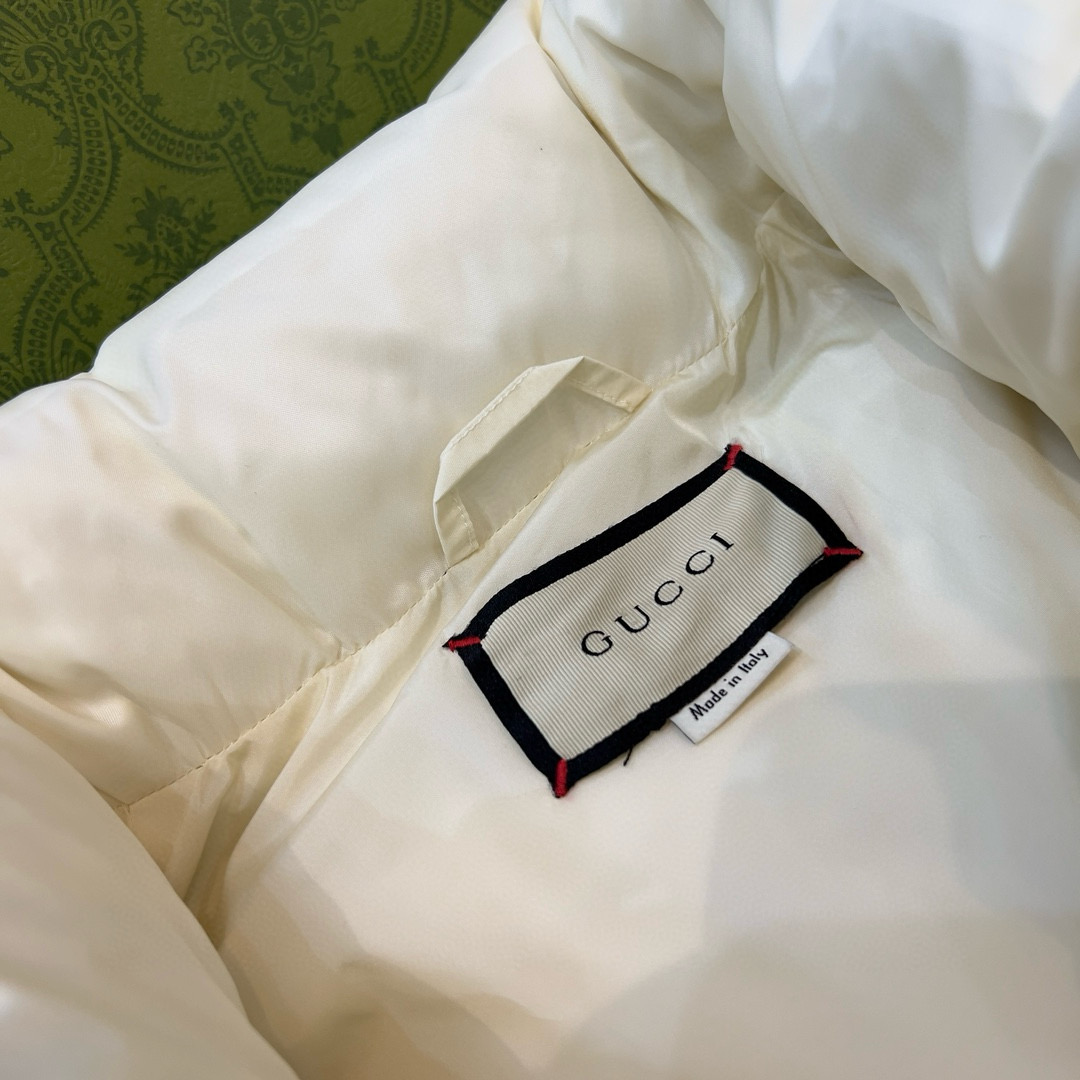 NIGO Gucci Men's And Women's Winter Fashion Casual High Neck Single Button Red Green Striped Webbing Contrast Collar Detachable Sleeves Down Jacket #nigo79374