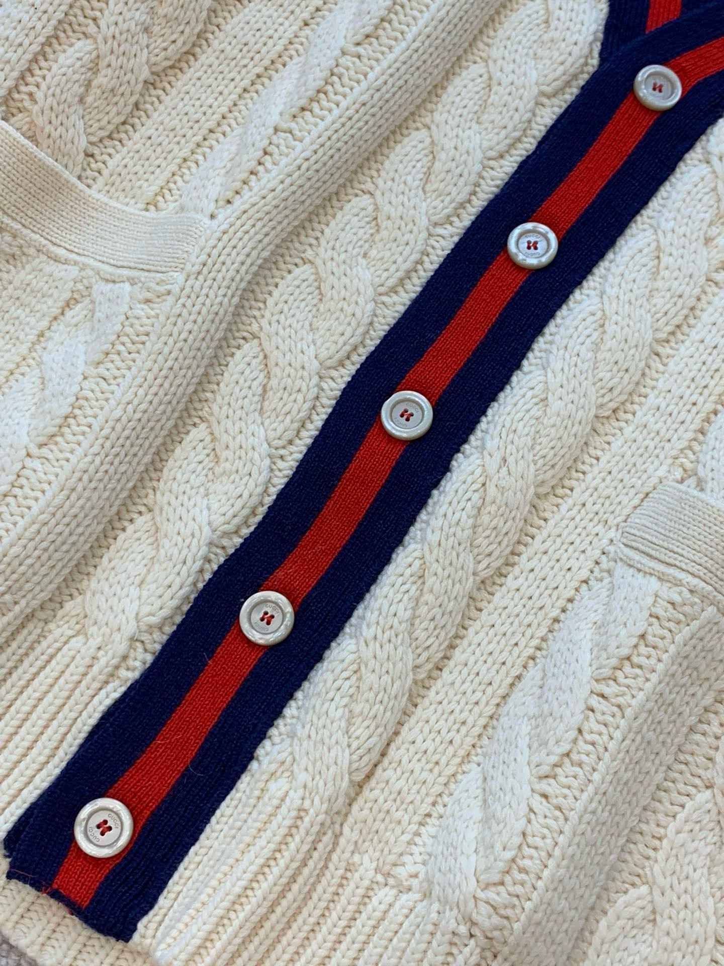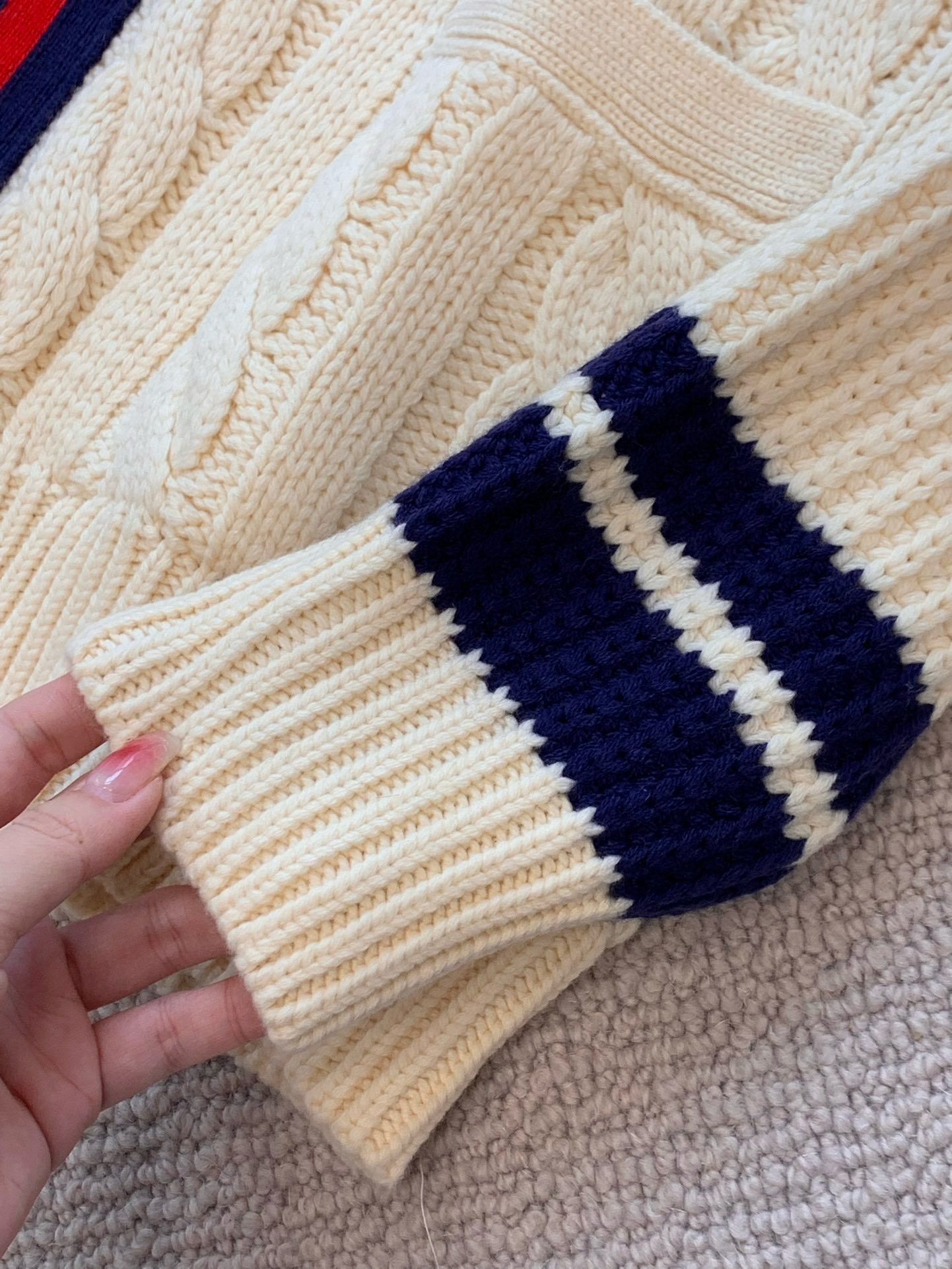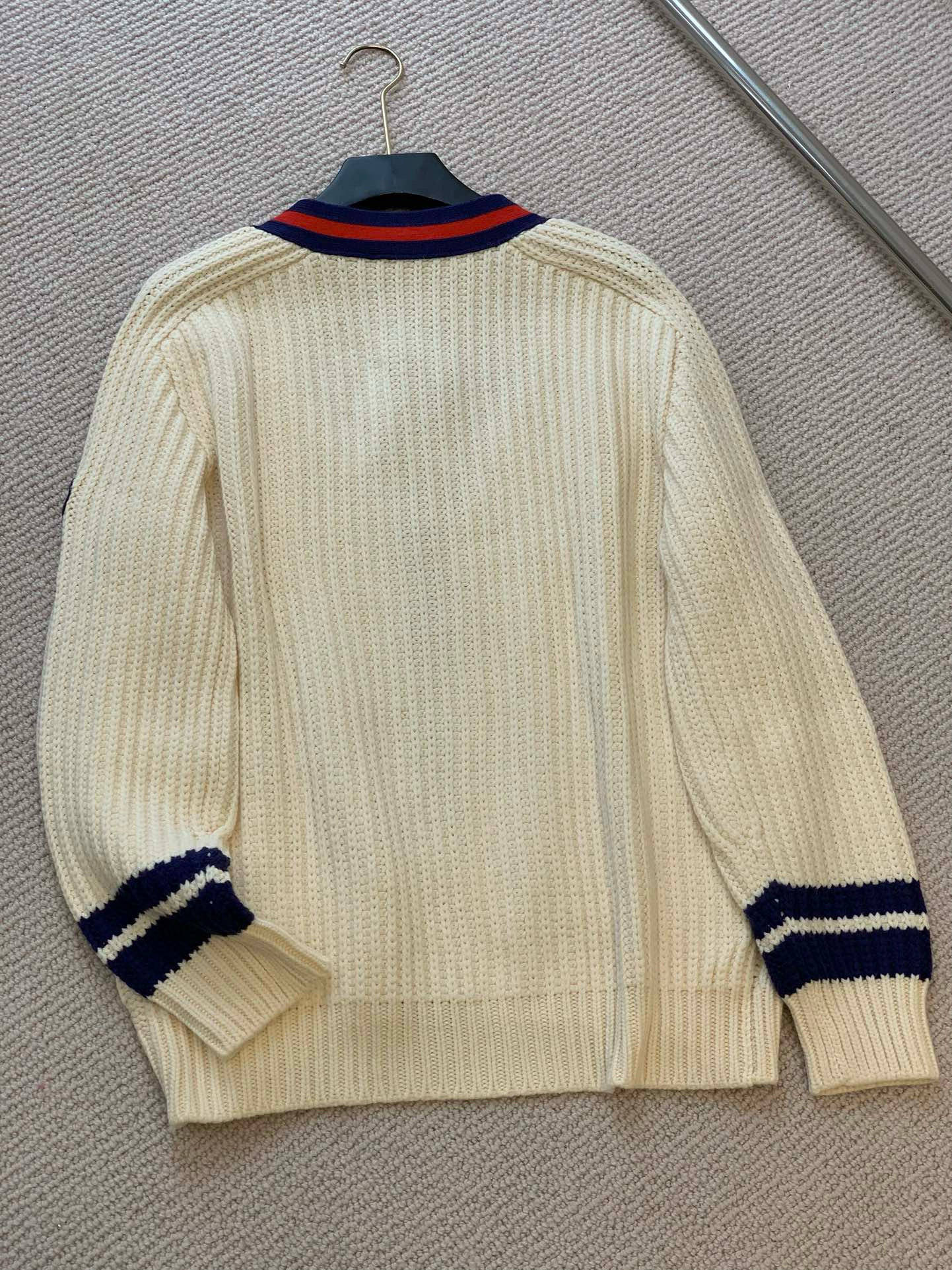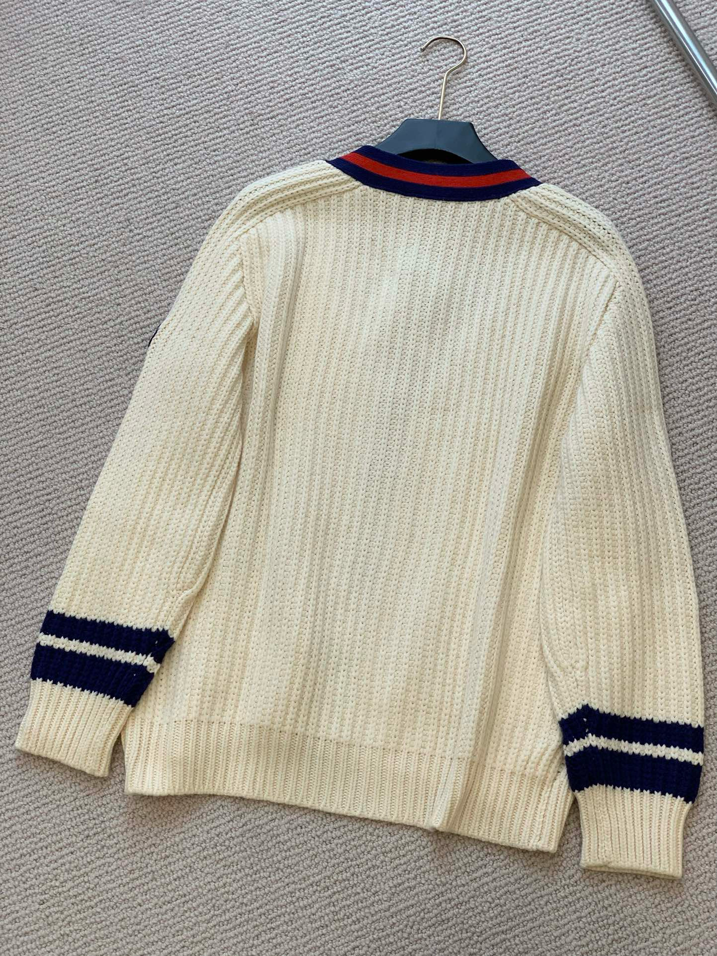 NIGO Gucci Men's Beige Colour Block Stripe V-Neck Single Breasted Long Sleeve Knitted Cardigan #nigo97871