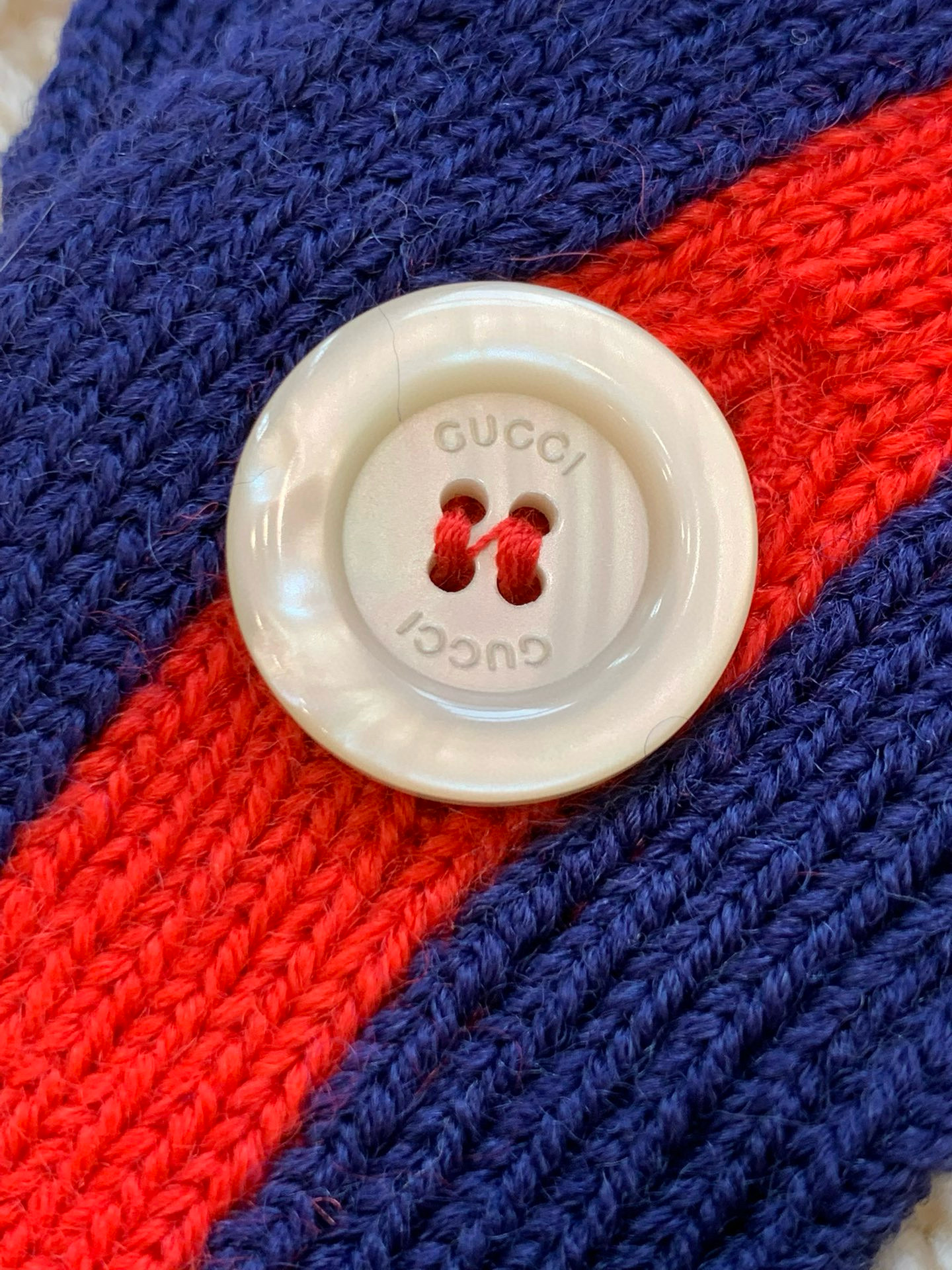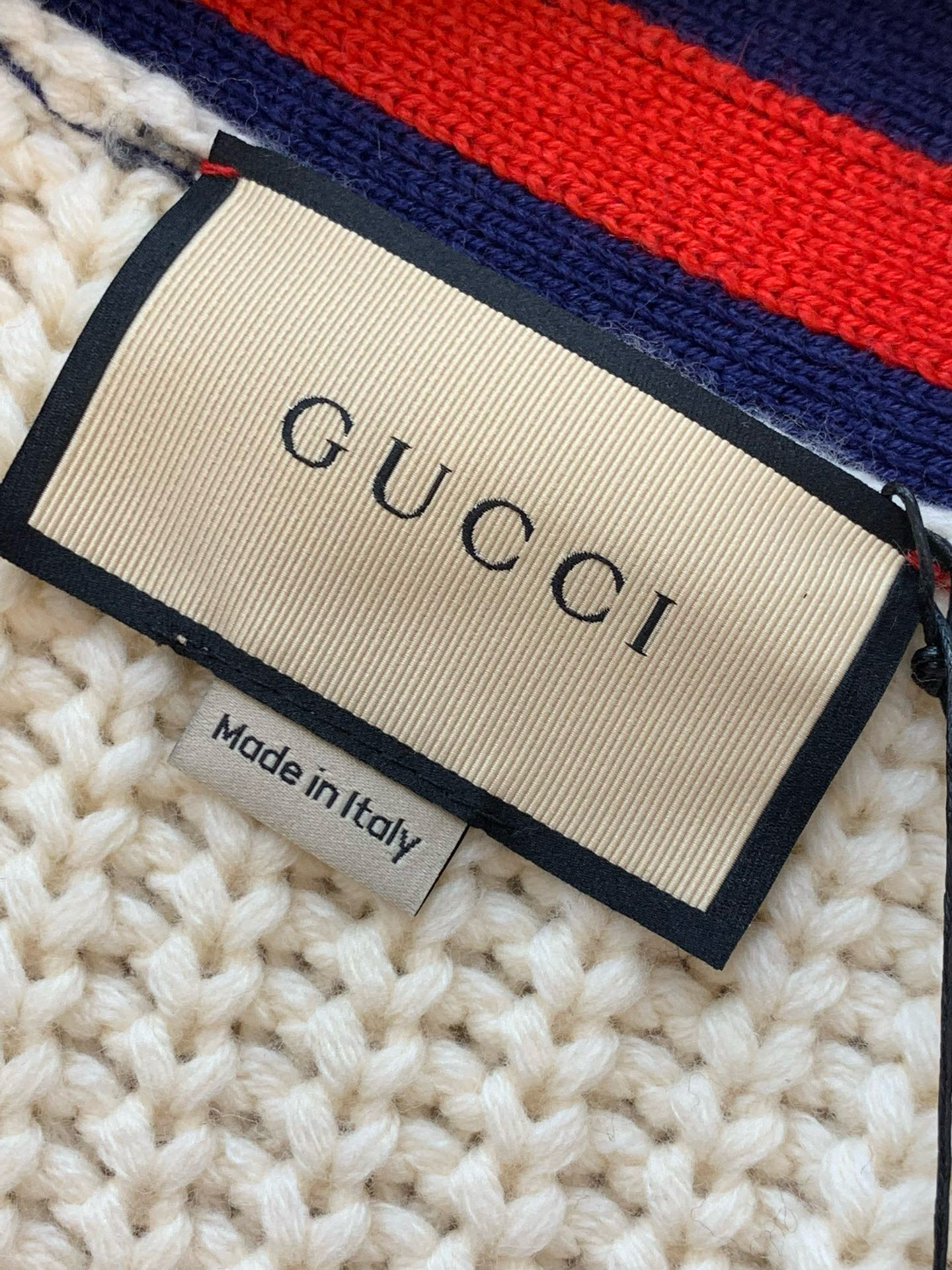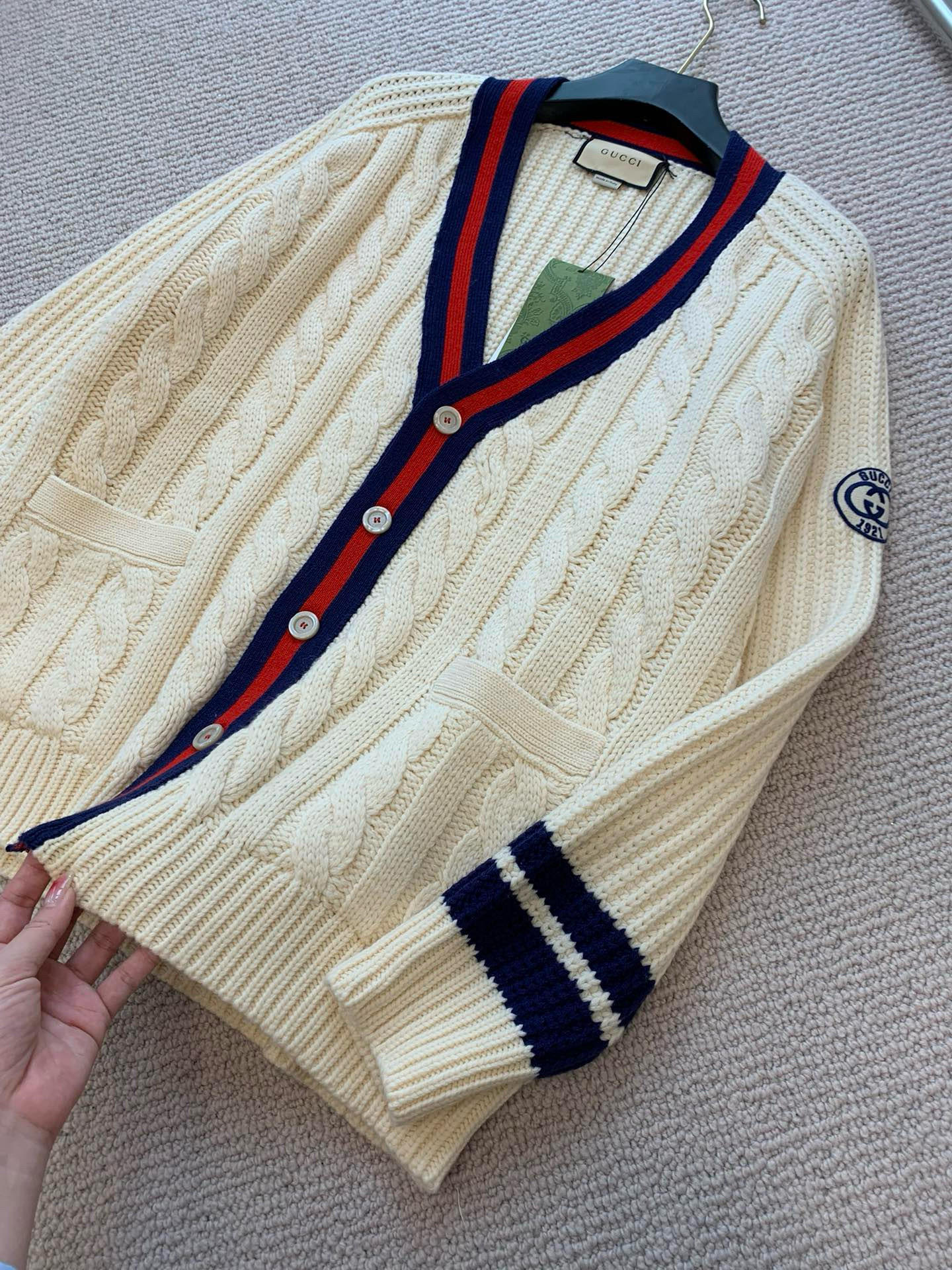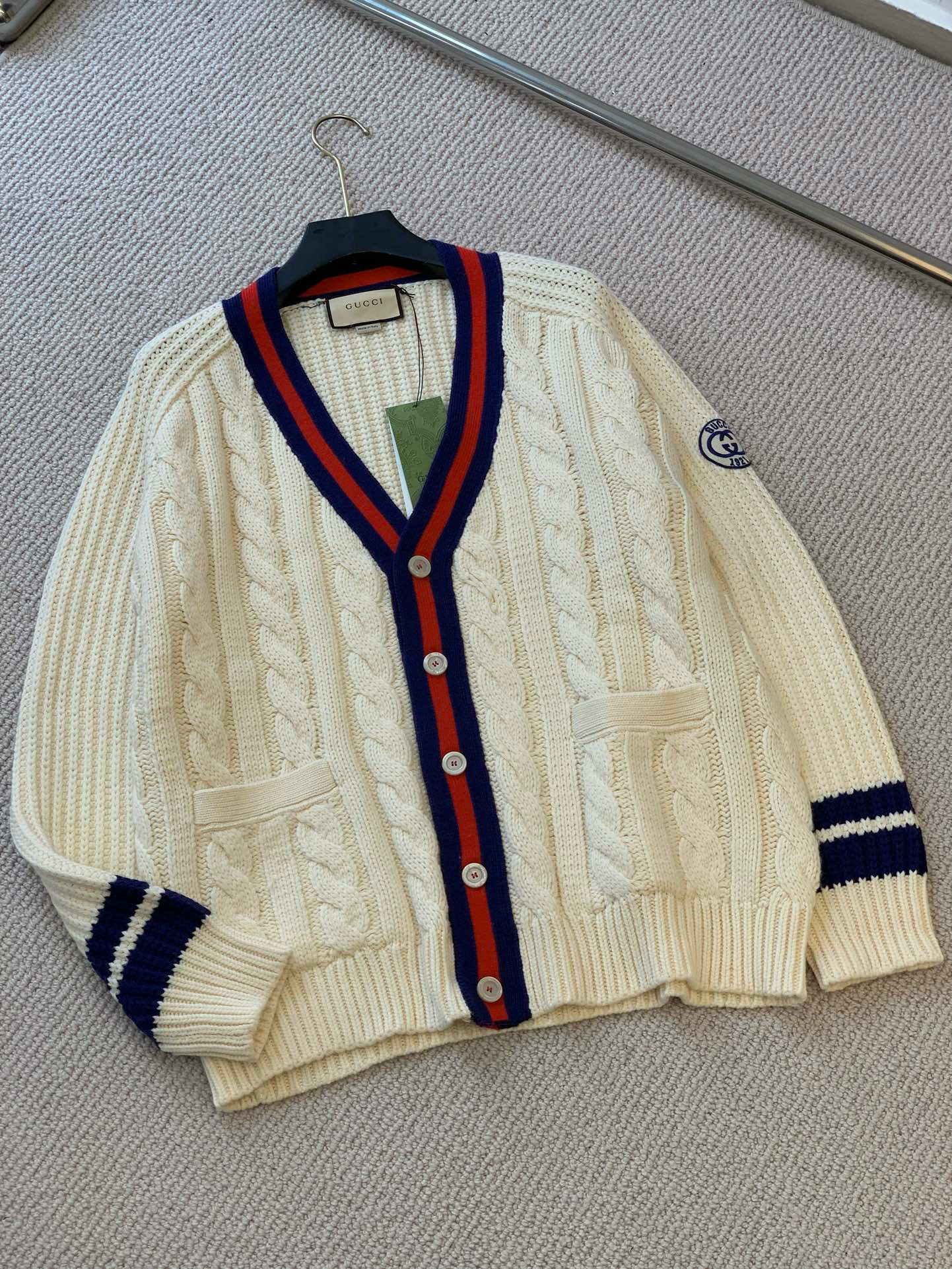 NIGO Gucci Men's Beige Colour Block Stripe V-Neck Single Breasted Long Sleeve Knitted Cardigan #nigo97871