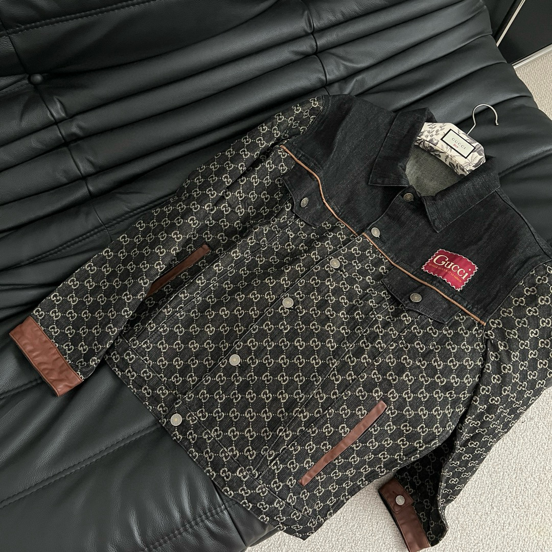 NIGO Gucci Men's Fall And Winter Brown Logo Applique Single Breasted Long Sleeved Denim Jacket #nigo75454