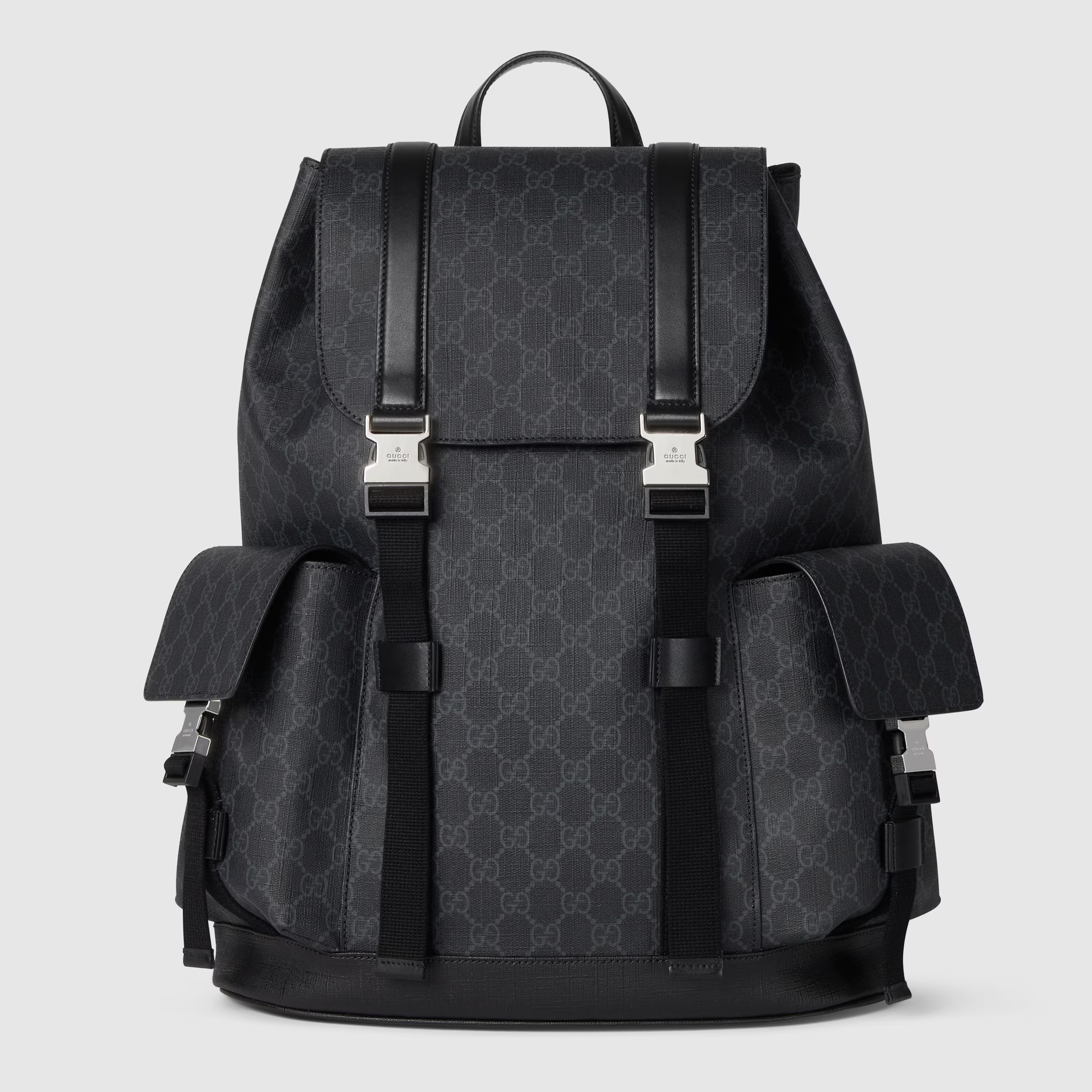 NIGO Gucci Men's GG Printed Canvas Splicing Leather Trim Red Webbing Adjustable Shoulder Strap Casual Bag Bag Black Backpack #nigo71676
