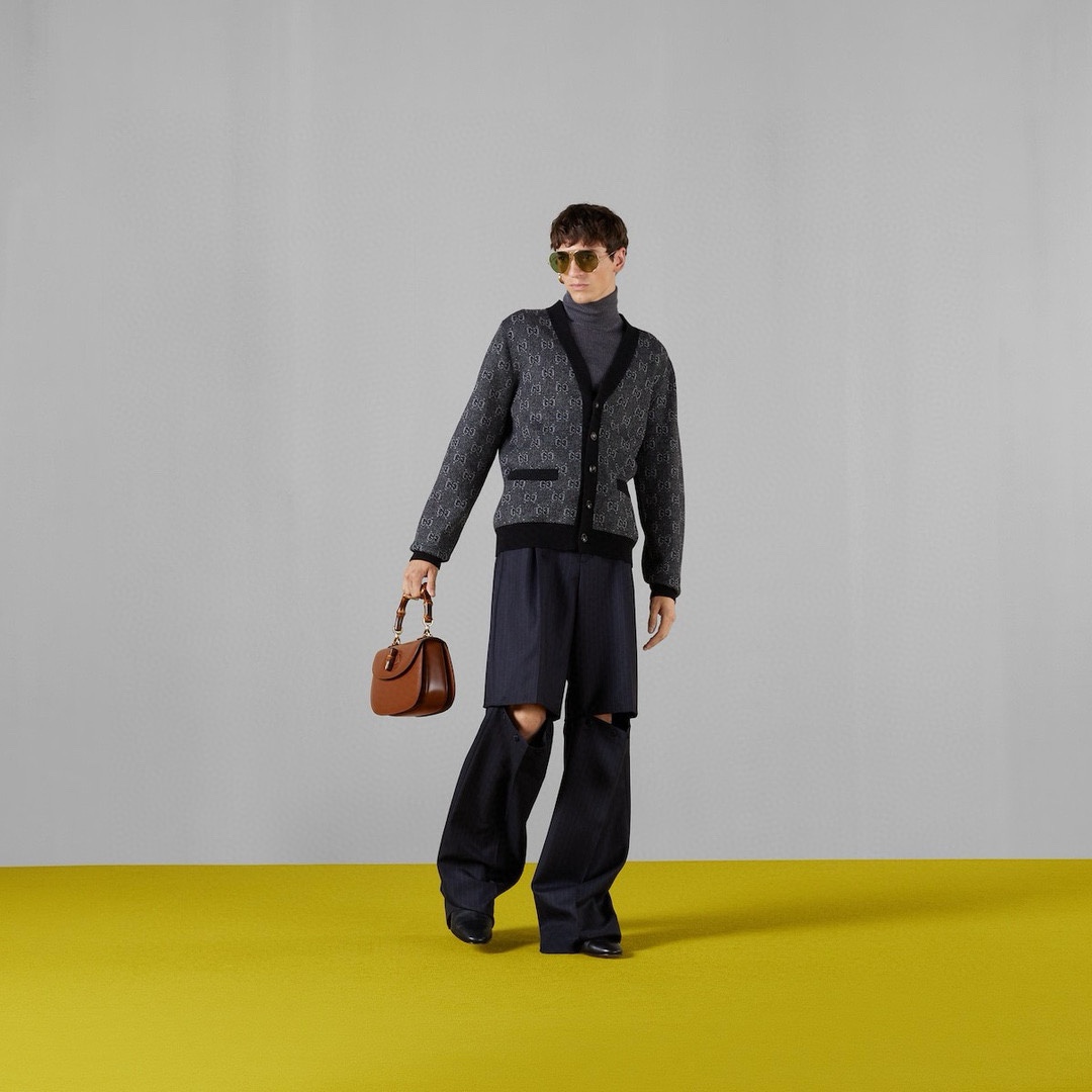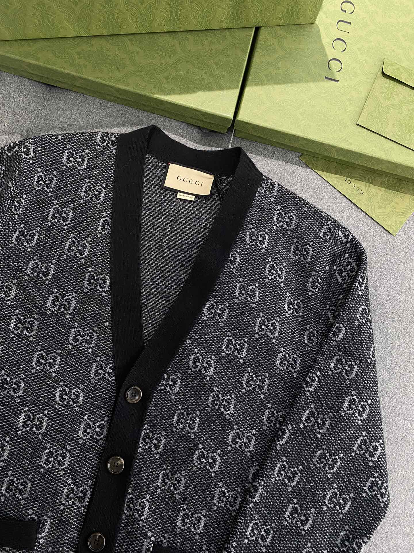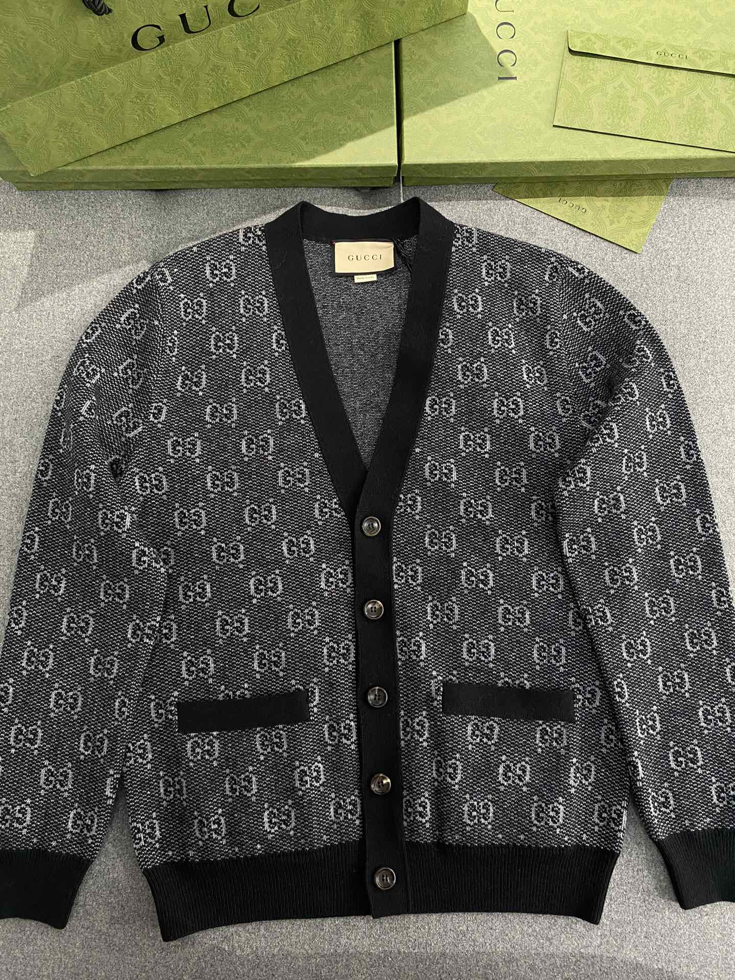 NIGO Gucci Men's Spring And Fall Letter Print Single Breasted V-neck Wool Long Sleeved Knit Sweater Jacket #nigo73613