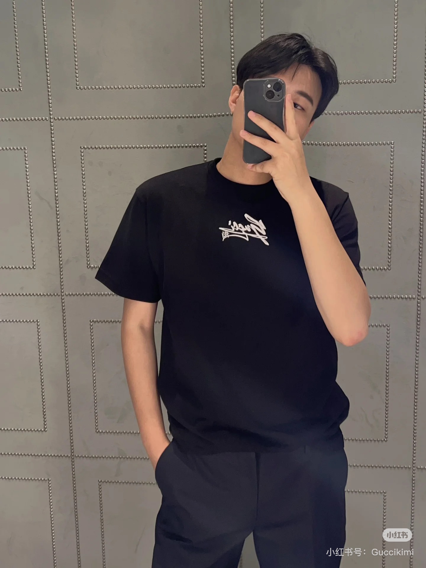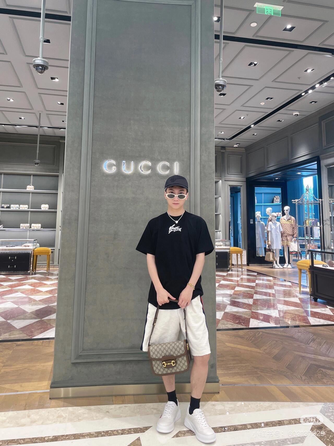 Home / GUCCI / NIGO Gucci Men's Spring And Summer All Black Letters Printed Knitted Cotton T-shirt Retro Fashion Loose Short-sleeved T-shirt #nigo71485